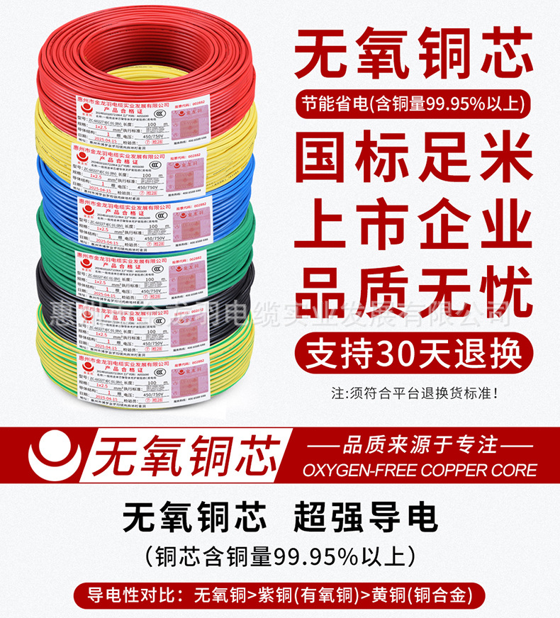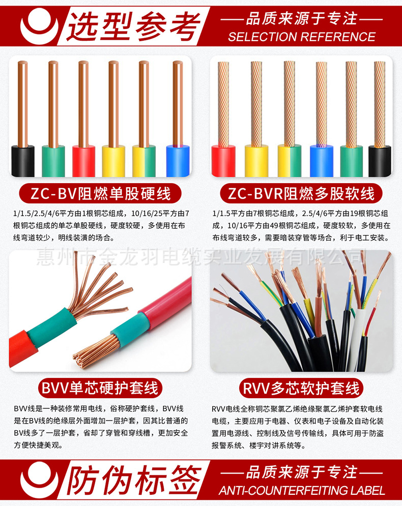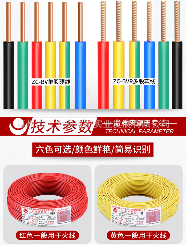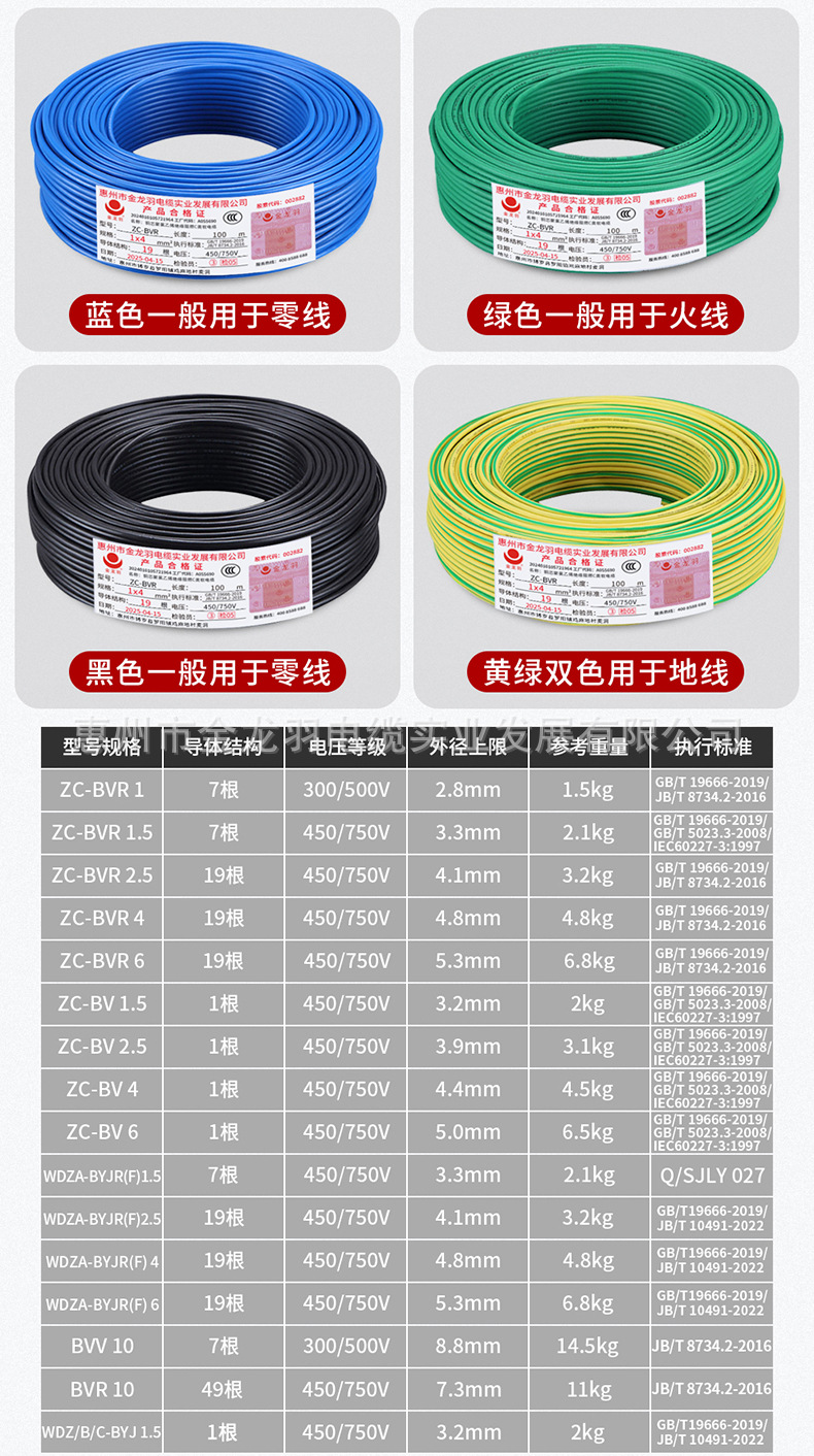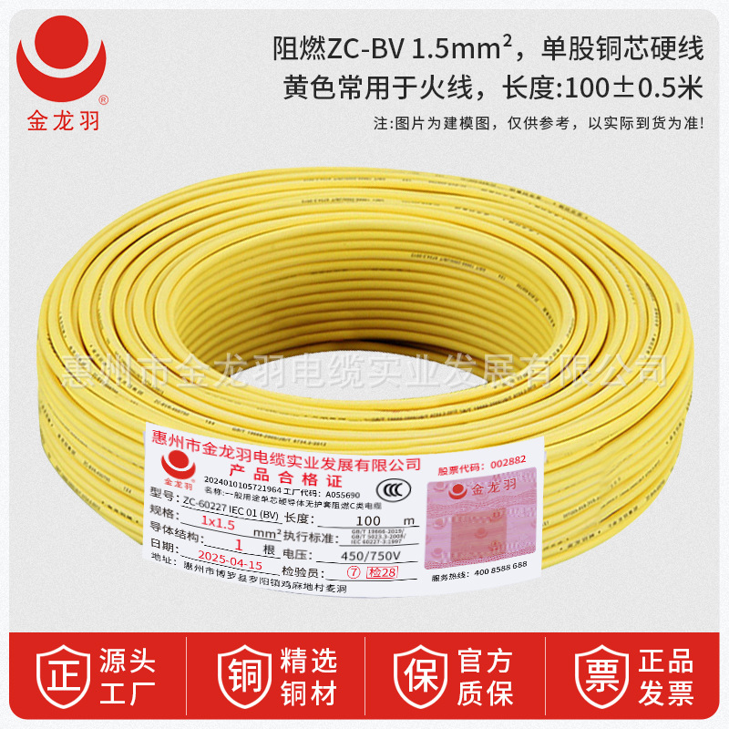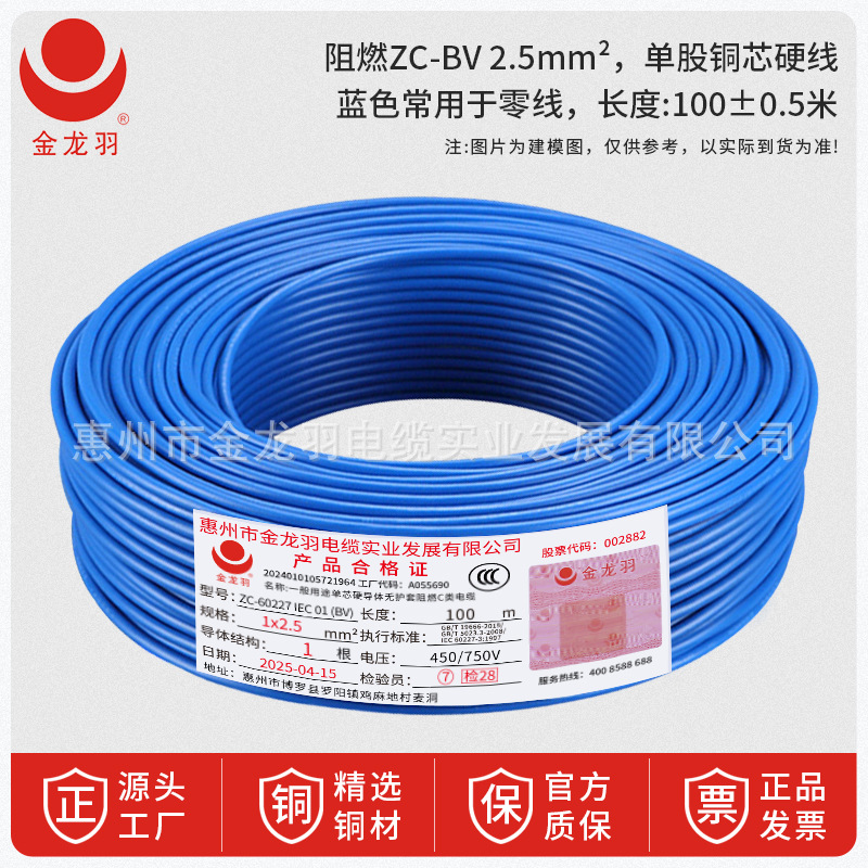진롱규 철사 및 케이블 ZC-BV 1.5/2.5/4/6 광장 국가 표준 난연 단일 코어 단일 구리 와이어