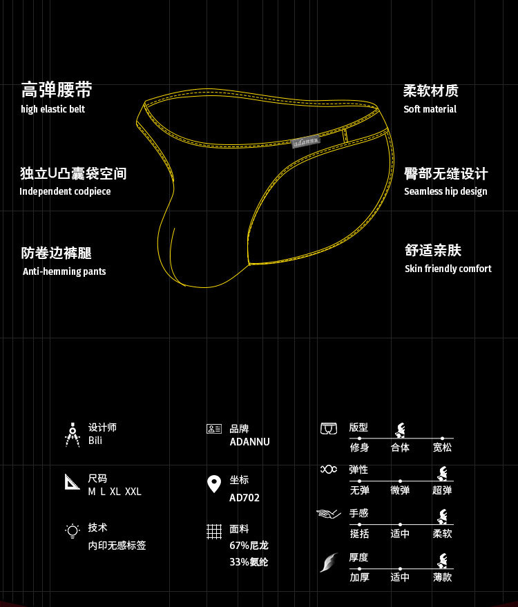 TEMU 인기 무봉제 남성용 팬티, 가볍고 투명하며 통기성이 뛰어난 로우 웨이스트 유럽 및 미국 비키니 남성 속옷 AD702