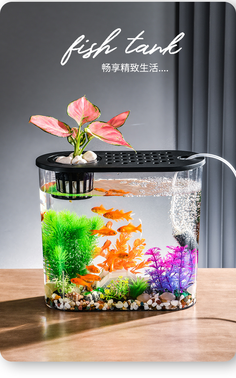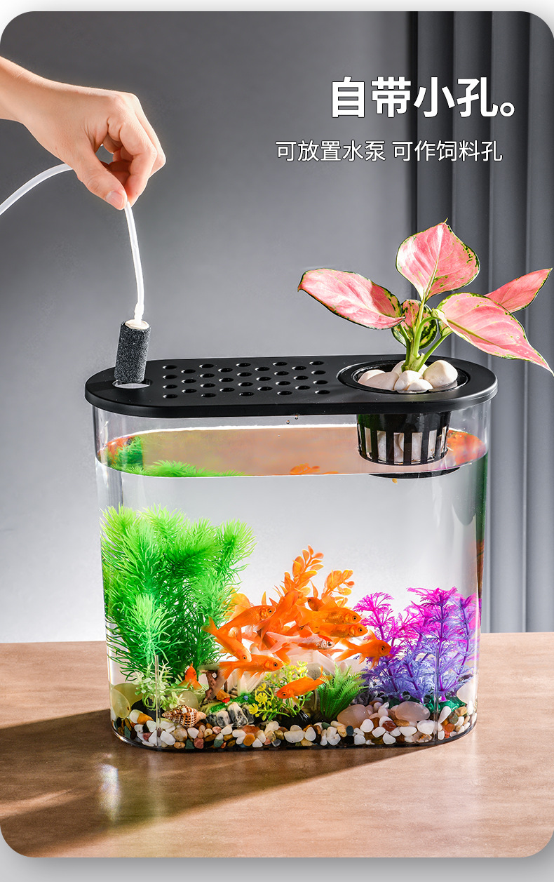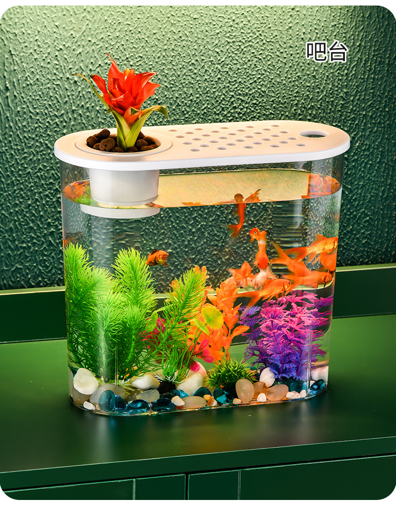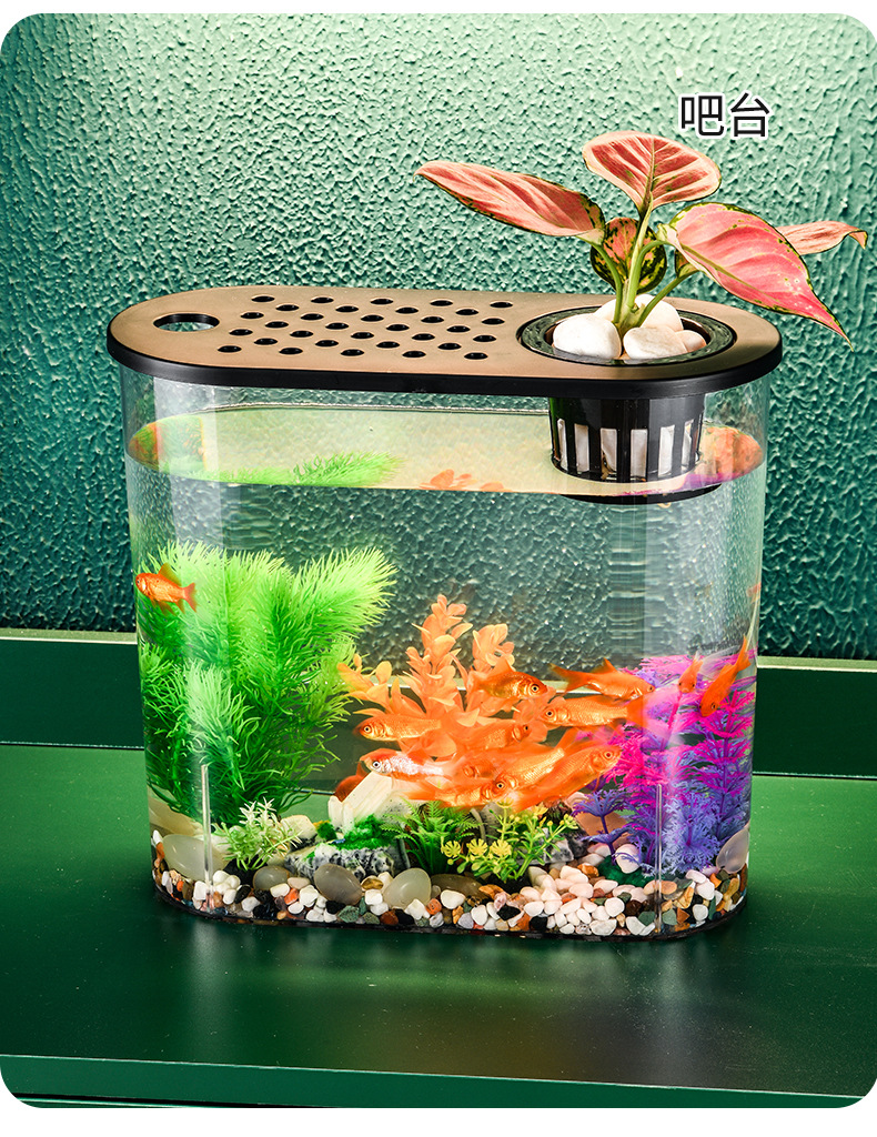 뚜껑이 있는 투명한 플라스틱 새 금붕어 탱크, 소형 가정용 거북이 탱크, 거실 데스크탑 조경 타원형 물고기 탱크