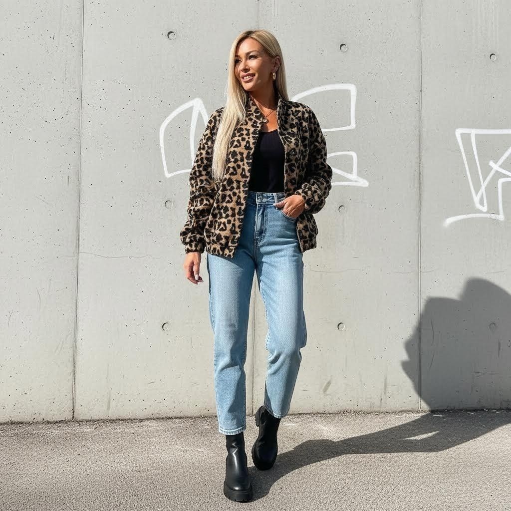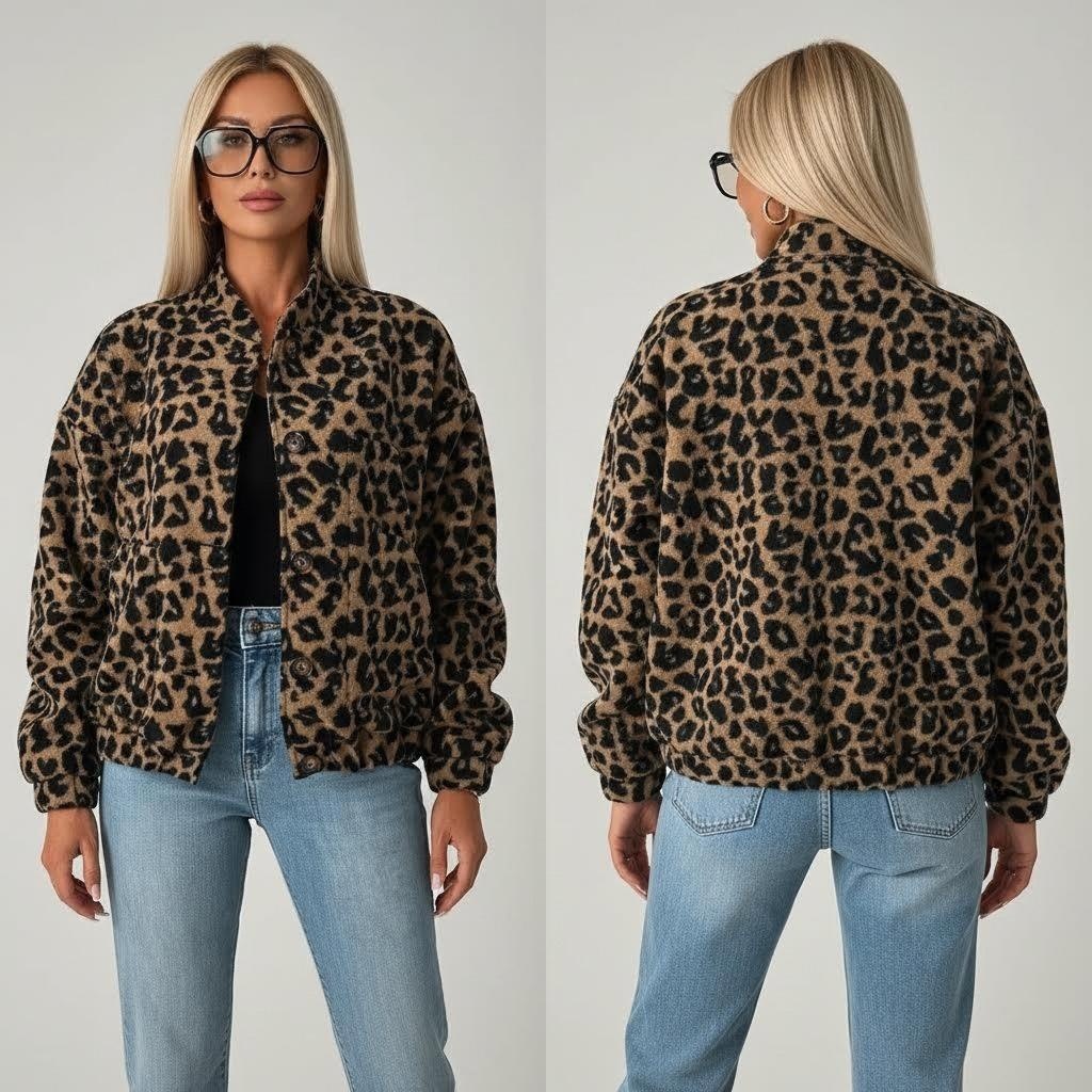 2025 봄, 가을 미국 복고풍 뜨거운 여자 레오파드 프린트 자켓 여성의 새로운 느슨한 캐주얼 자켓 디자인 틈새 탑스토어 가기