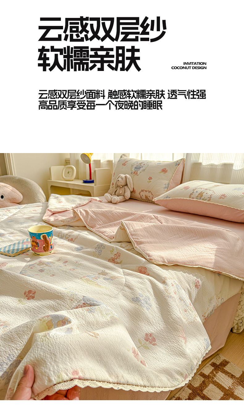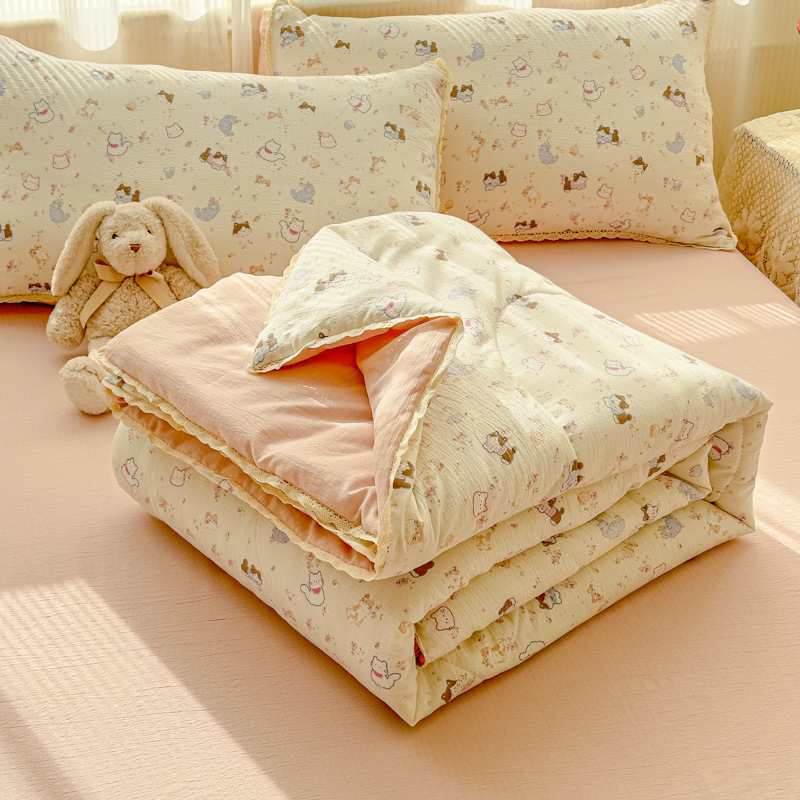 클래스 A 모성 및 유아 등급 더블 레이어 원사 섬유 여름 이불 에어컨 이불 어린이 여름 이불 싱글 및 더블 머신 세탁기 세탁기 퀼트 코어
