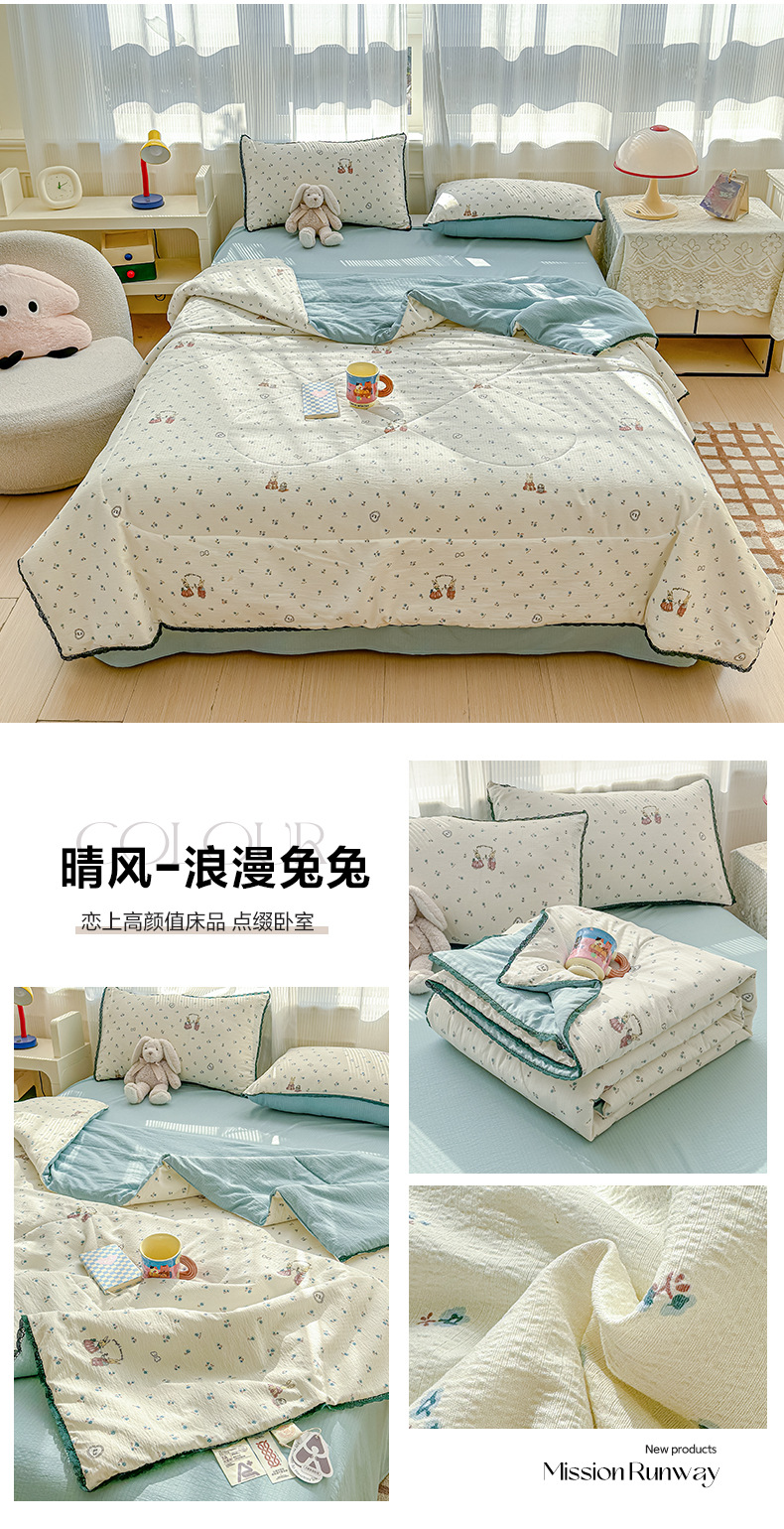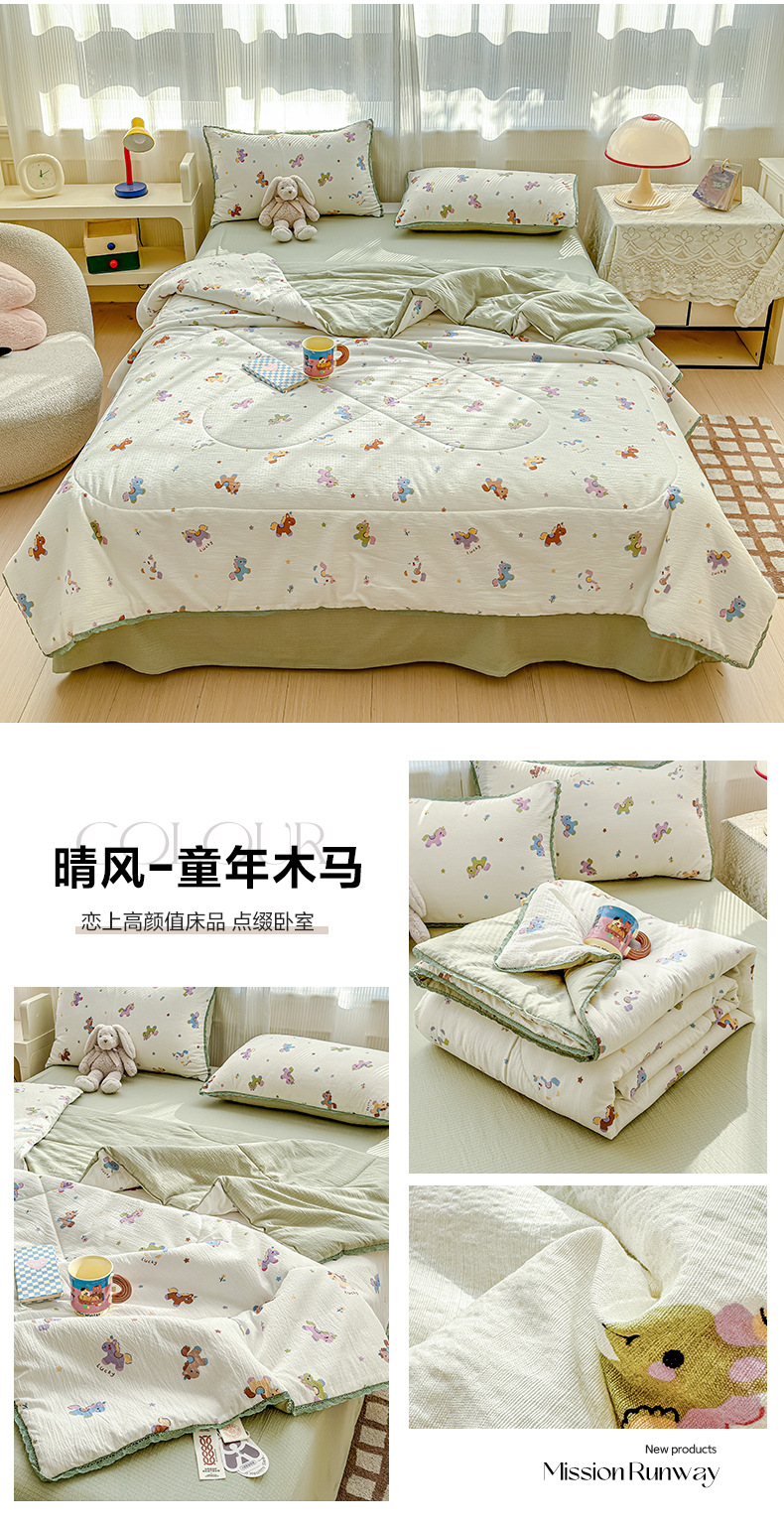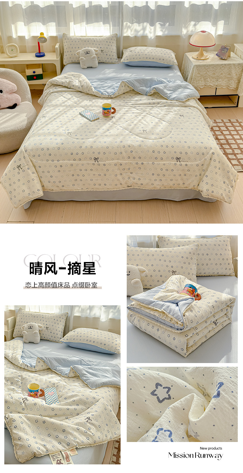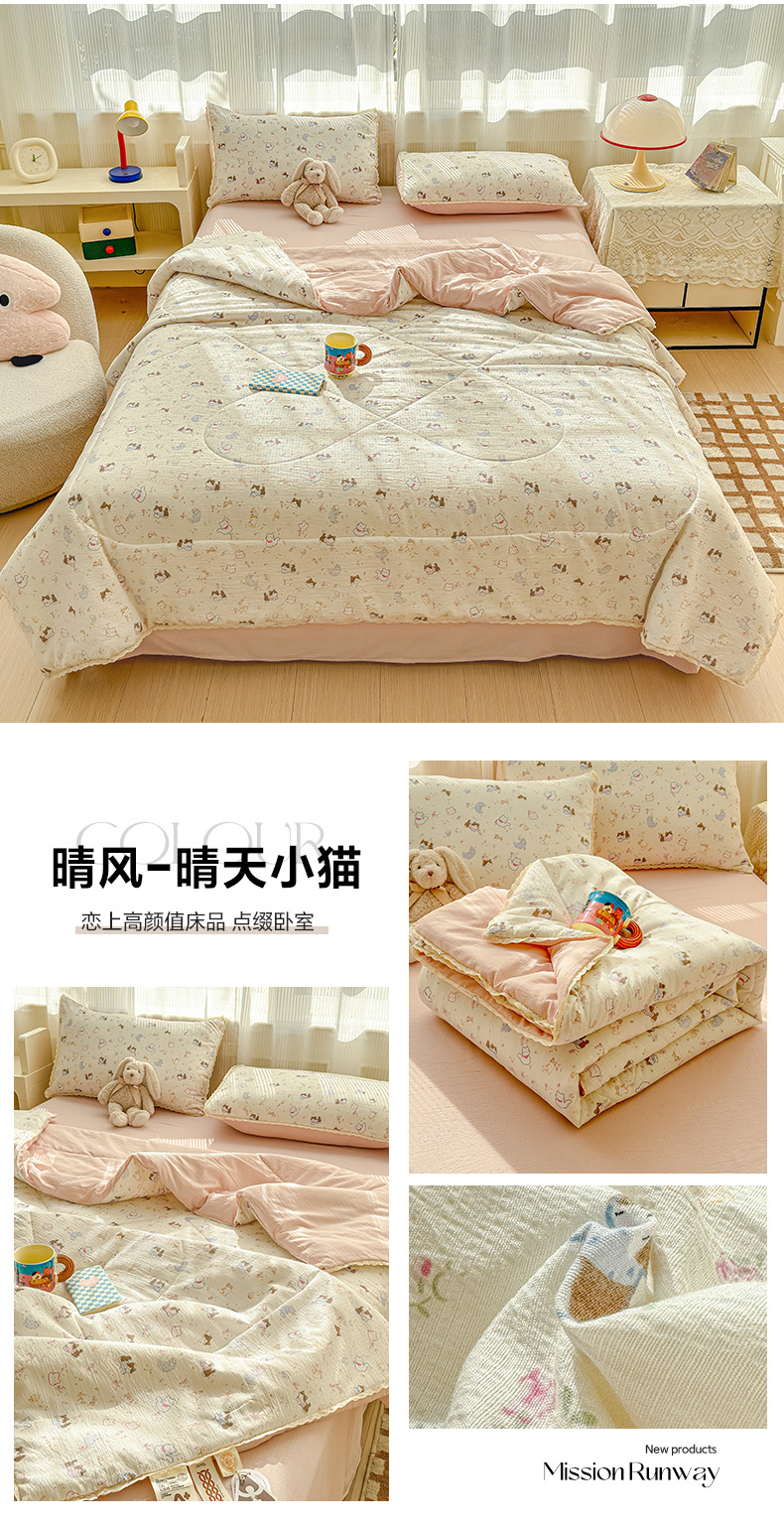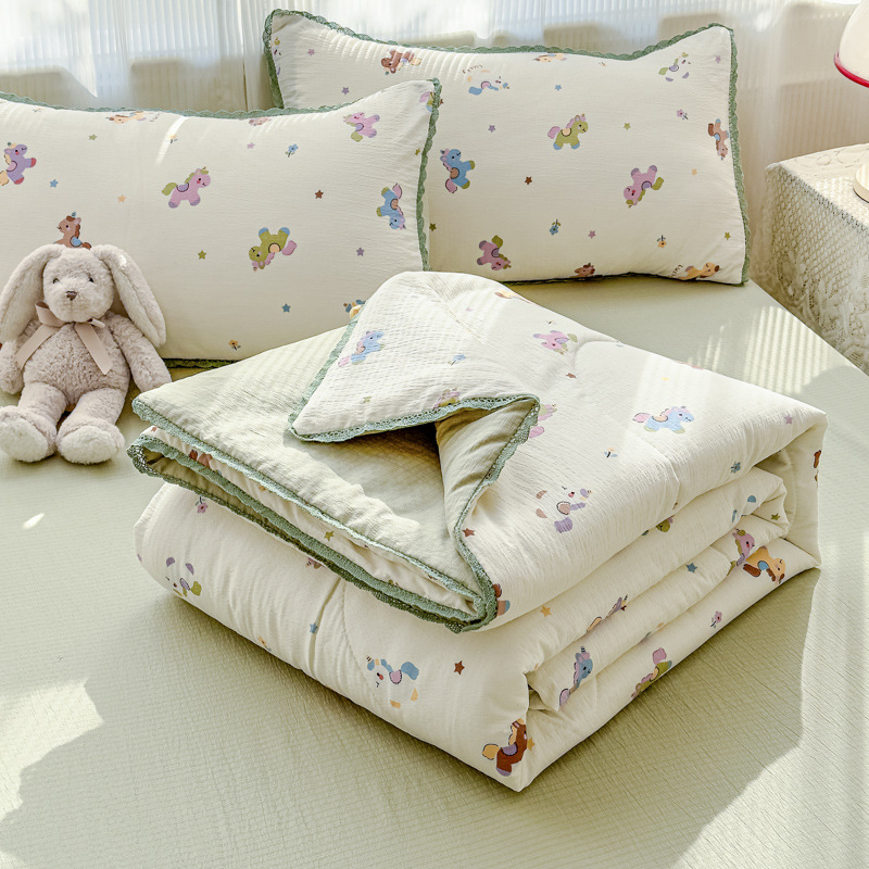 클래스 A 모성 및 유아 등급 더블 레이어 원사 섬유 여름 이불 에어컨 이불 어린이 여름 이불 싱글 및 더블 머신 세탁기 세탁기 퀼트 코어스토어 가기