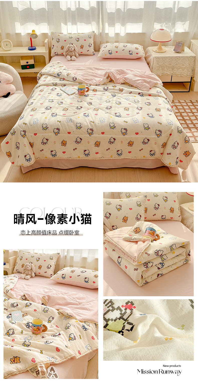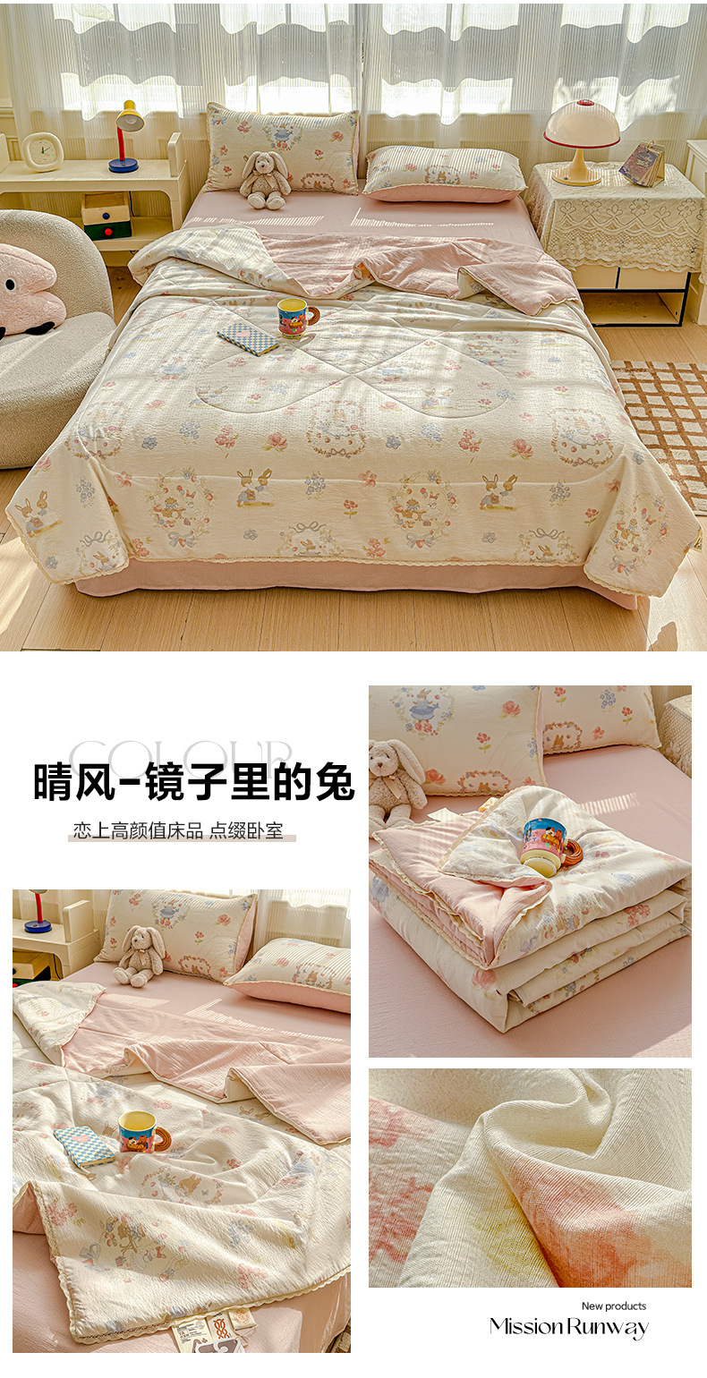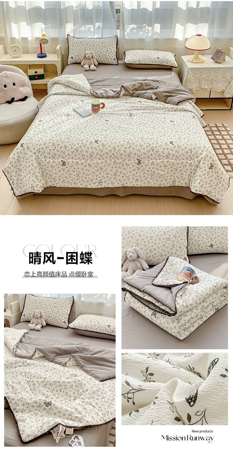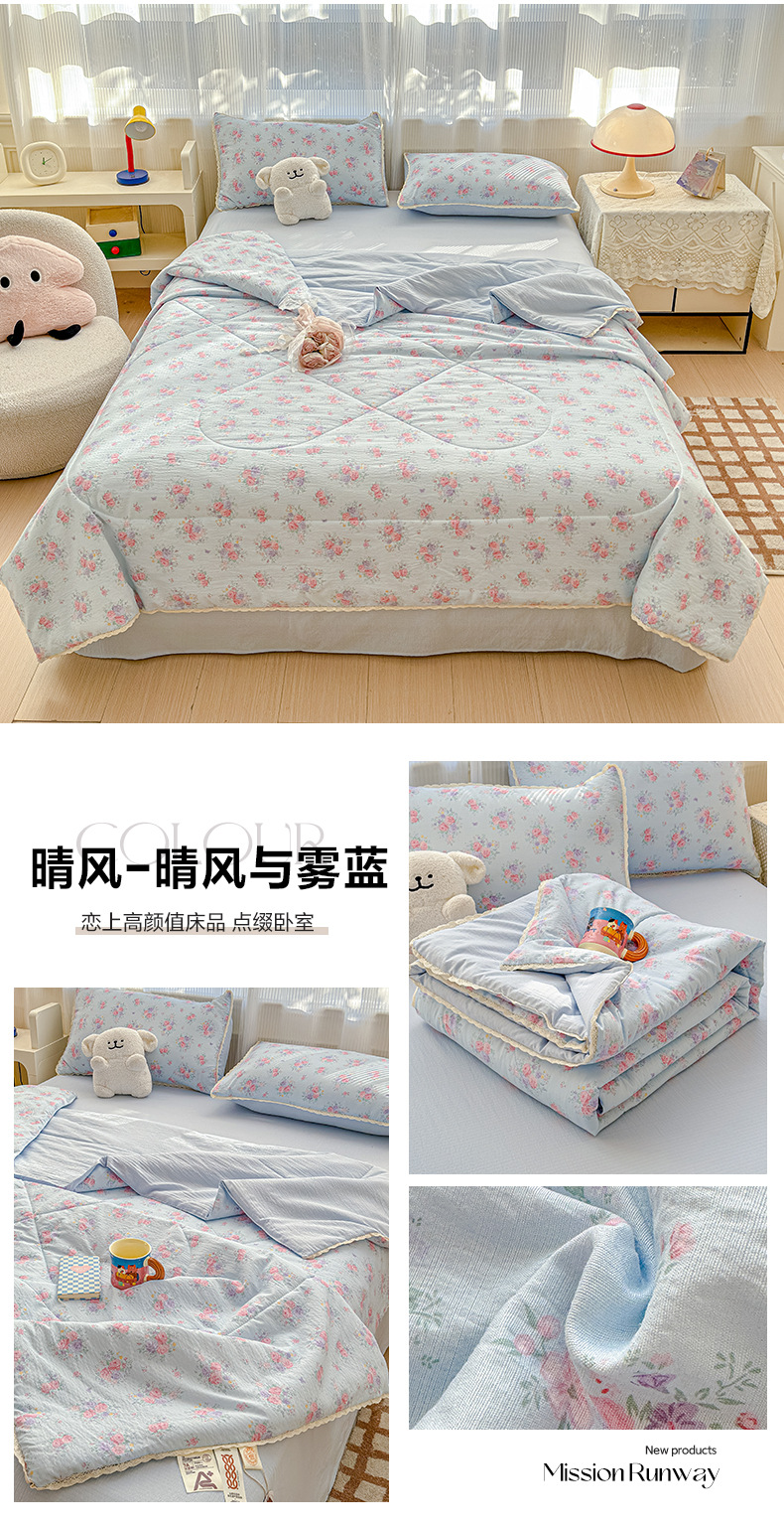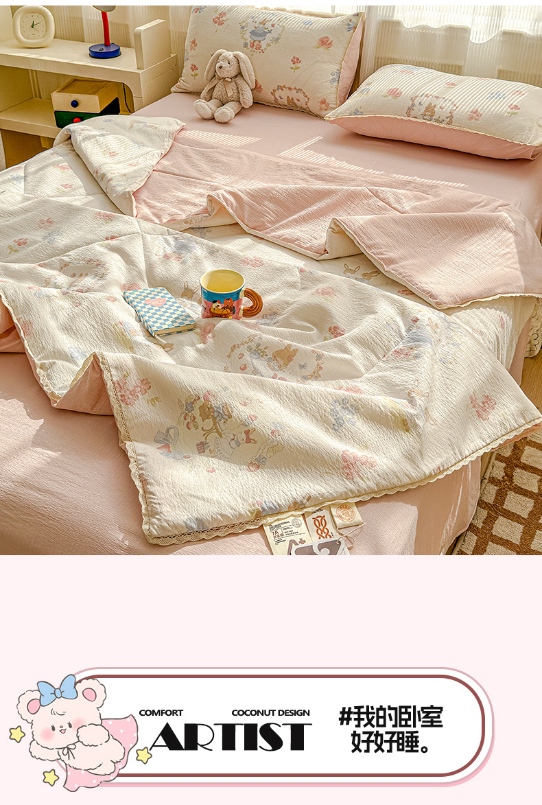 클래스 A 모성 및 유아 등급 더블 레이어 원사 섬유 여름 이불 에어컨 이불 어린이 여름 이불 싱글 및 더블 머신 세탁기 세탁기 퀼트 코어스토어 가기