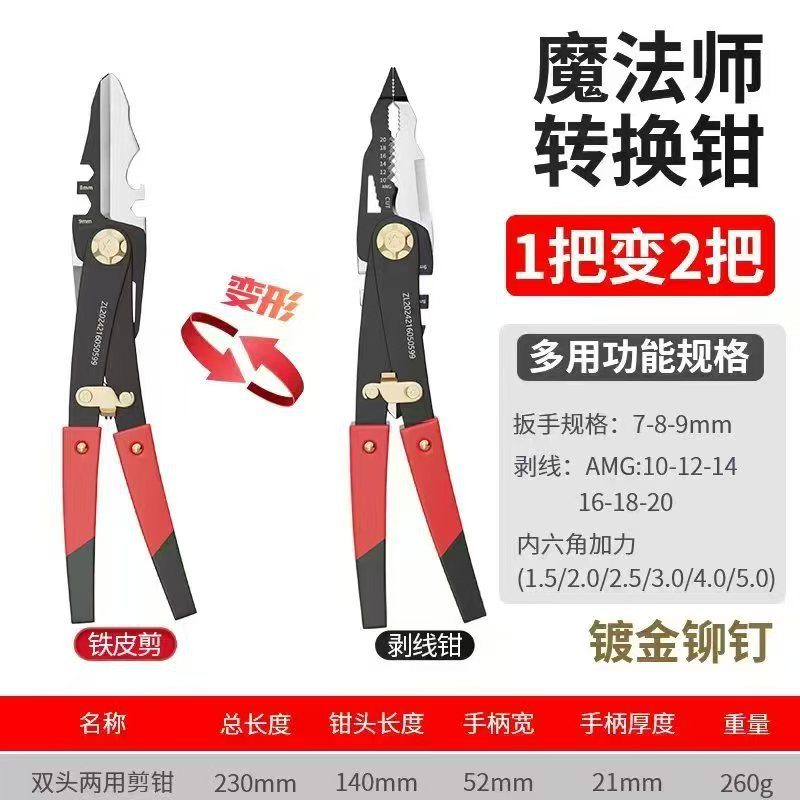 다기능 전기 기술자 특수 양방향 와이어 스트리핑 펜치 8인치 접이식 펜치 철제 가위 병 따개 빠른 클램핑 렌치