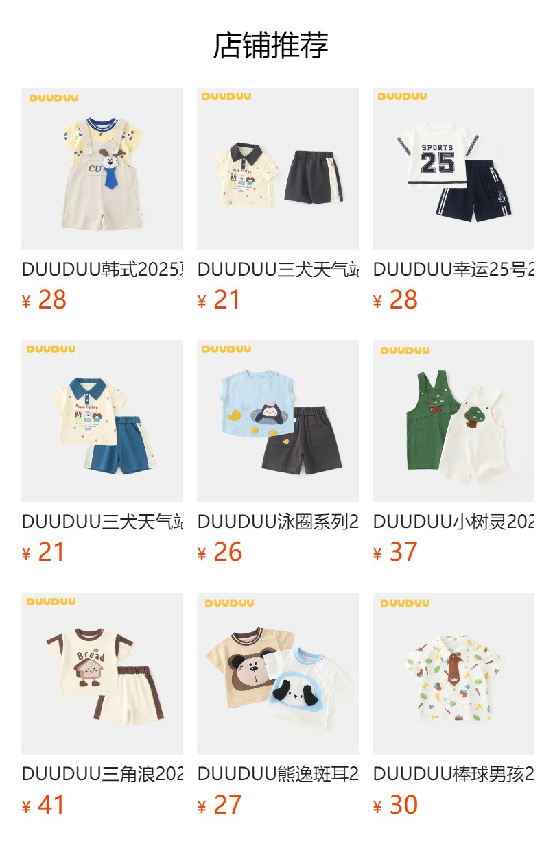 DUUDUU 공룡 2025 여름 반팔 운동복 아기 옷 아동상의 반바지 카테고리 a 소년 정장스토어 가기