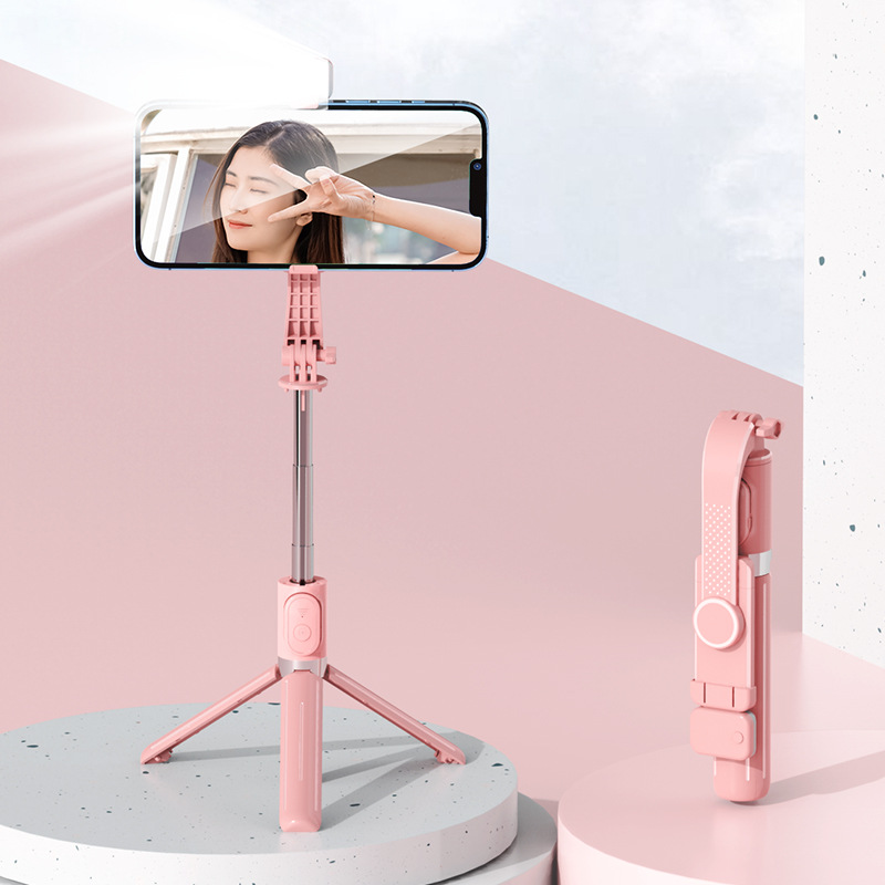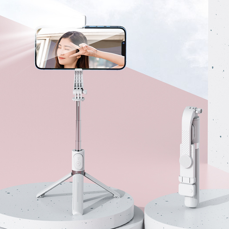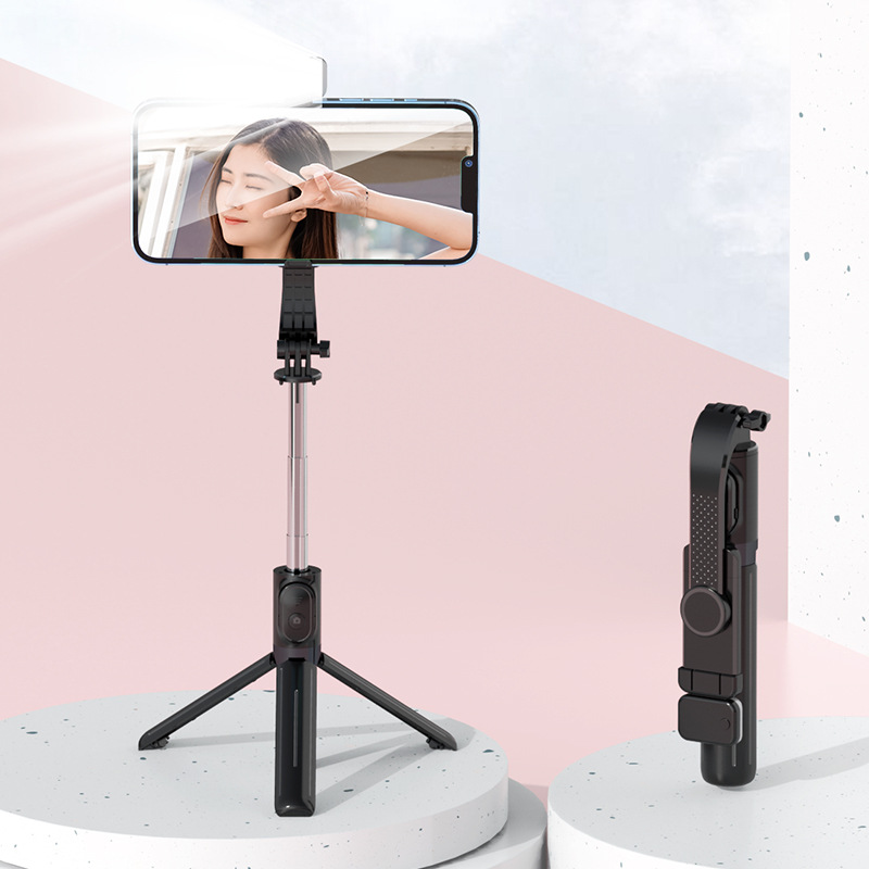 새로운 휴대폰 셀카봉 충전식 블루투스 원격 제어 휴대폰 라이브 방송 스탠드에는 삼각대가 함께 제공됩니다. 확장형 길이 1m