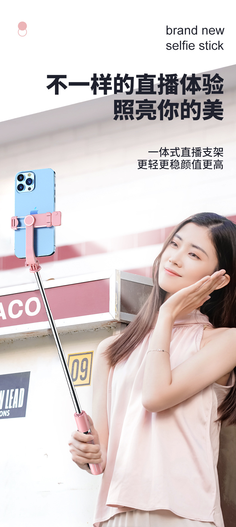 새로운 휴대폰 셀카봉 충전식 블루투스 원격 제어 휴대폰 라이브 방송 스탠드에는 삼각대가 함께 제공됩니다. 확장형 길이 1m스토어 가기