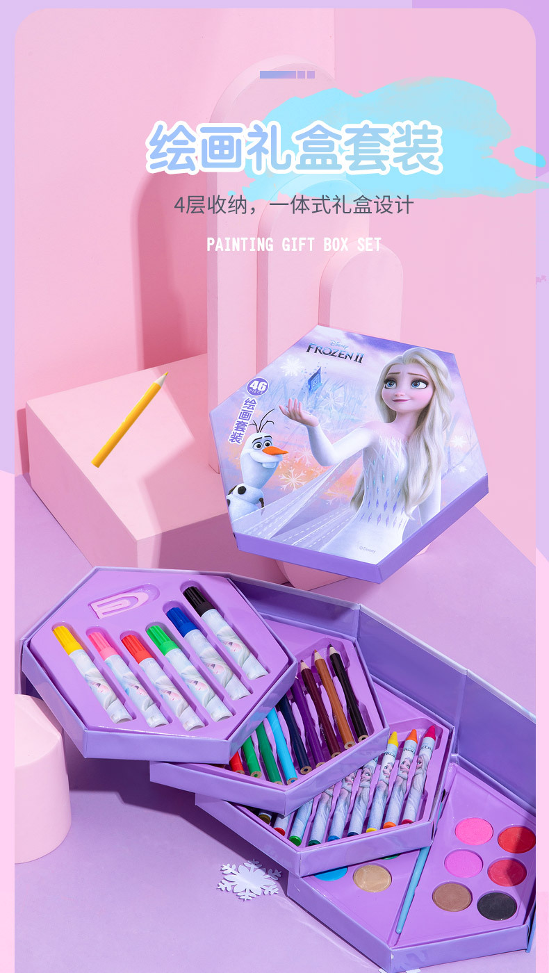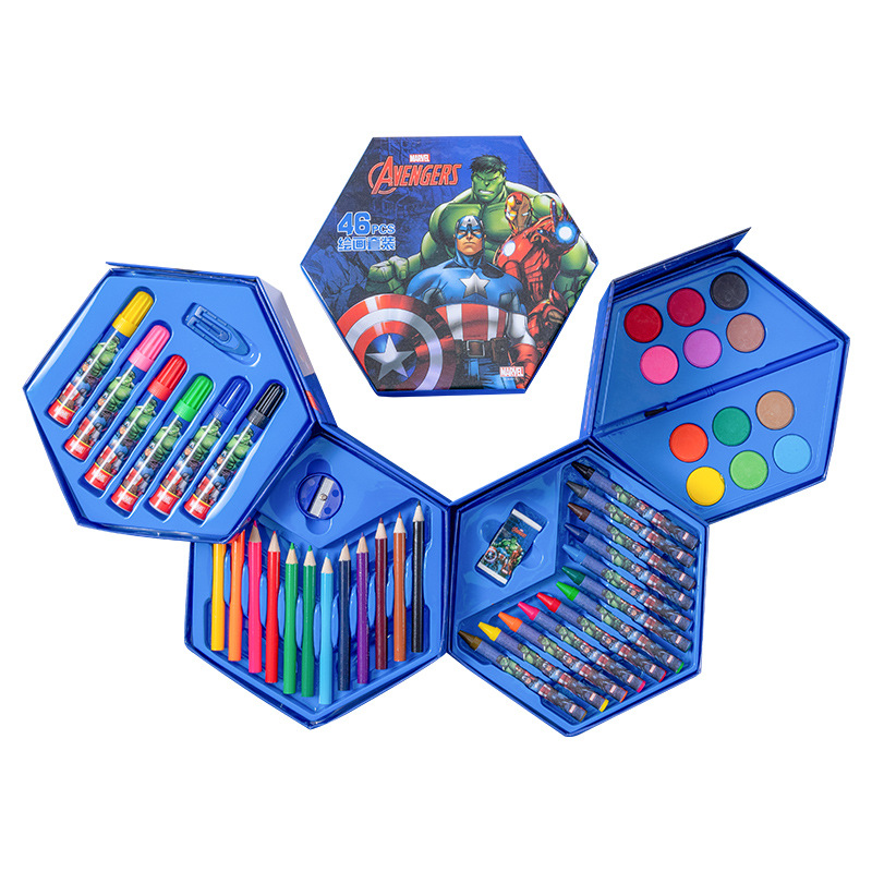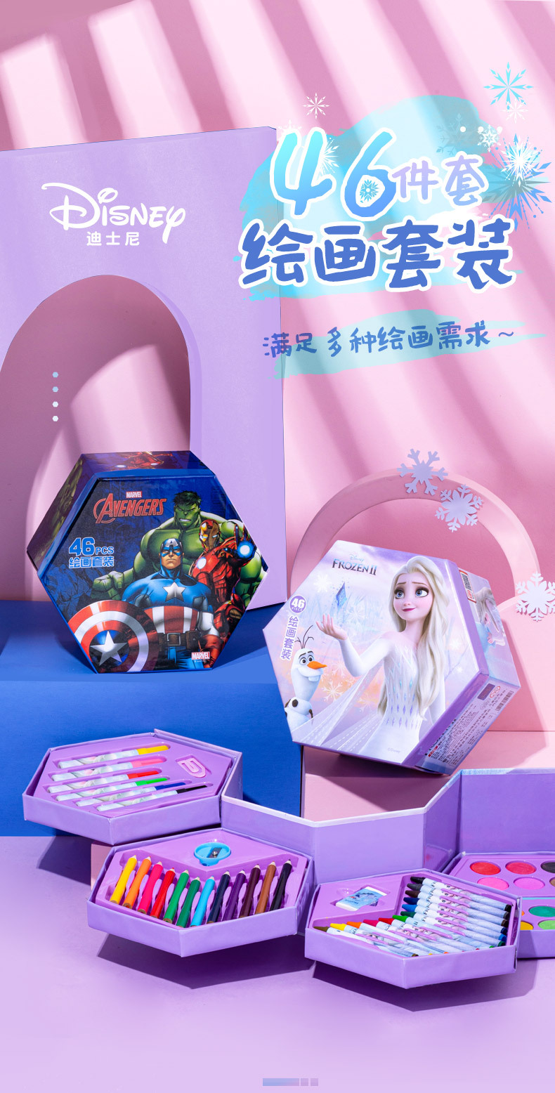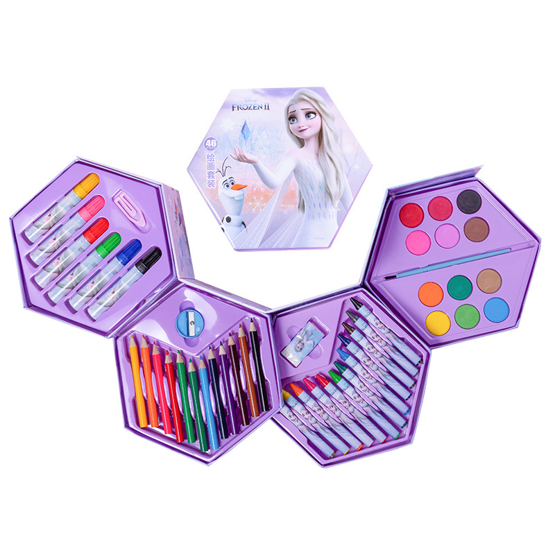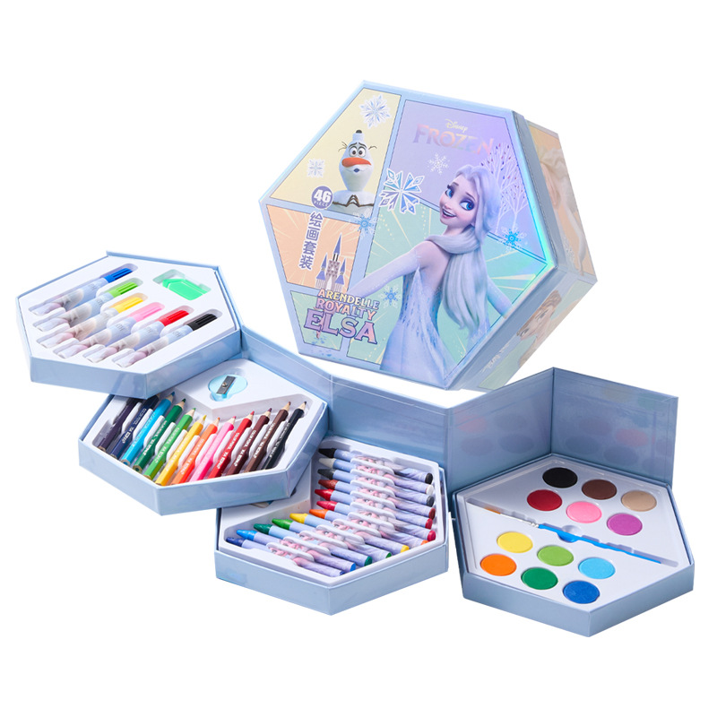 디즈니 문구 세트 46개 어린이 교육용 브러쉬 페인팅 문구 컬러 리드 구아슈 크레용 수채화 펜