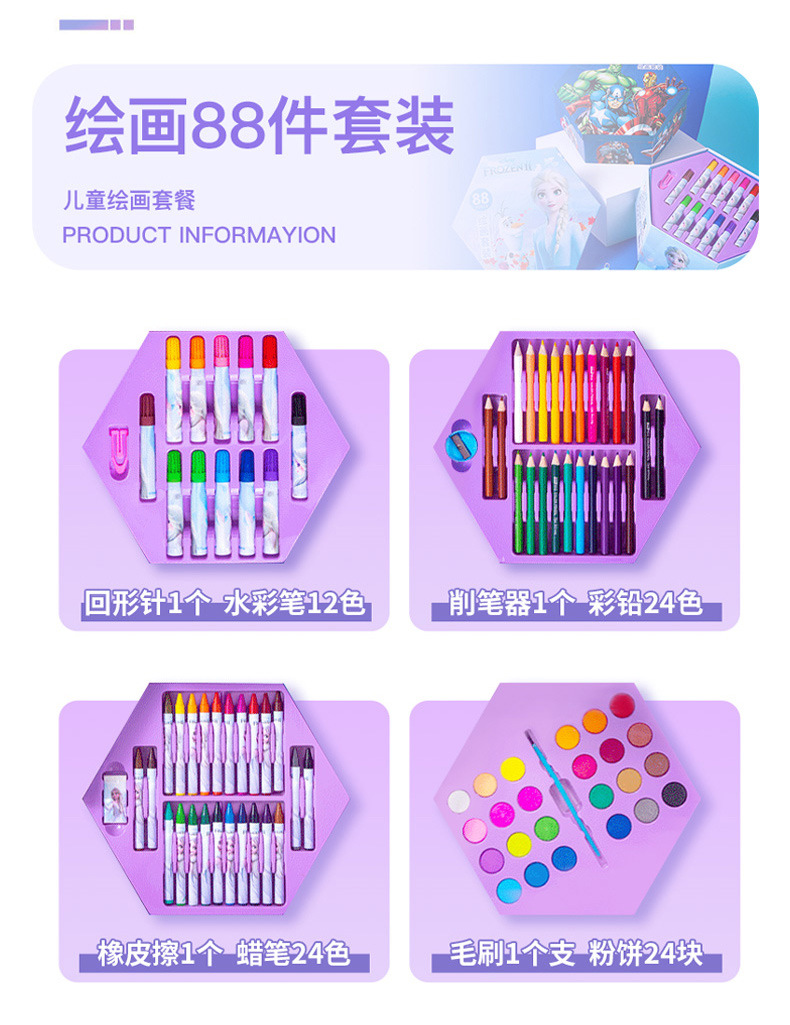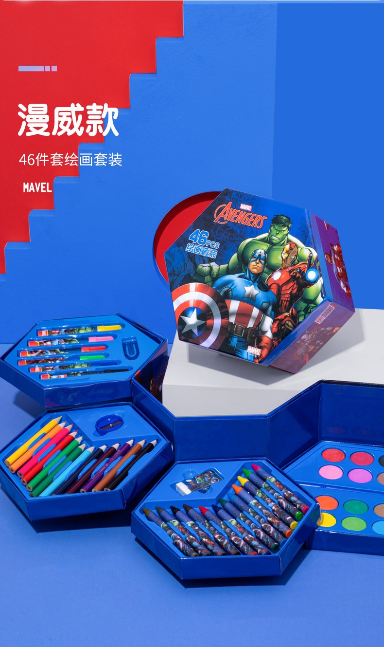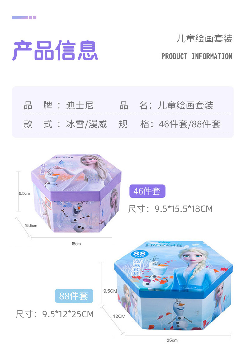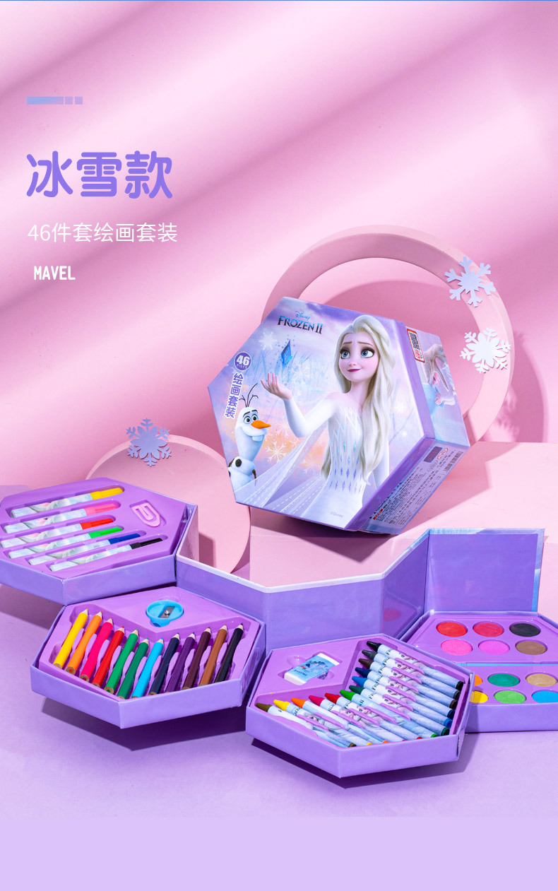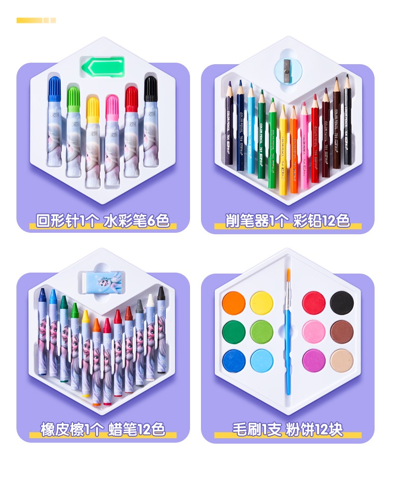 디즈니 문구 세트 46개 어린이 교육용 브러쉬 페인팅 문구 컬러 리드 구아슈 크레용 수채화 펜