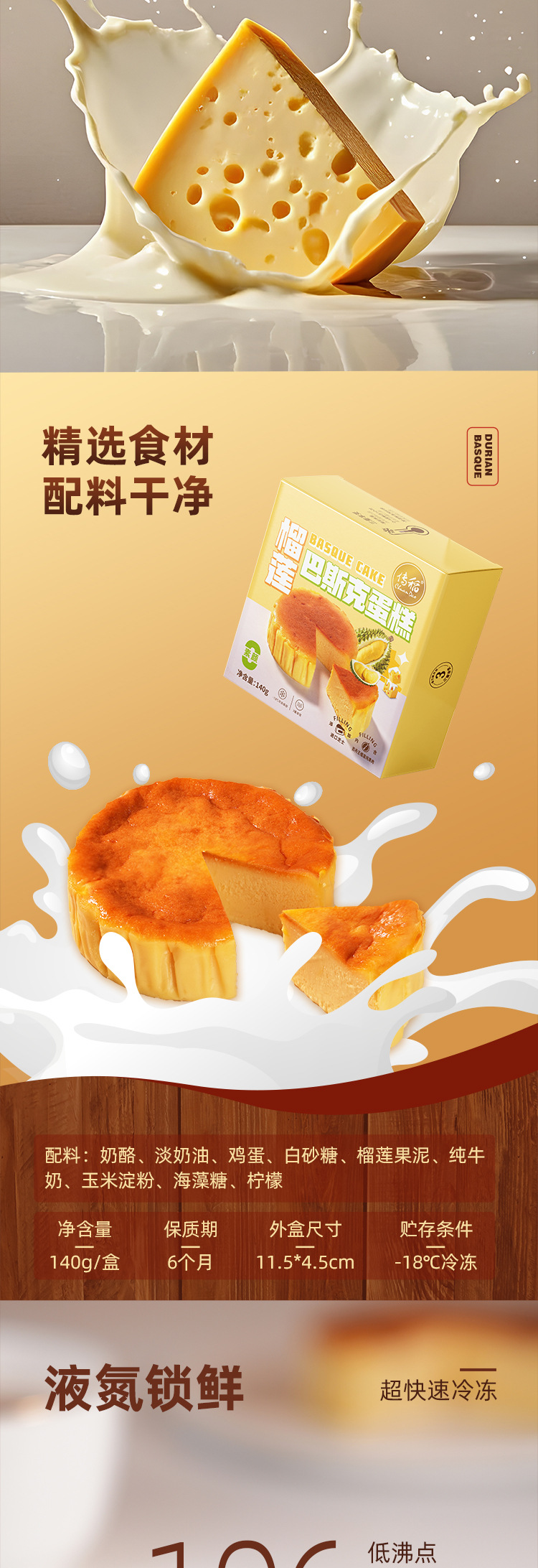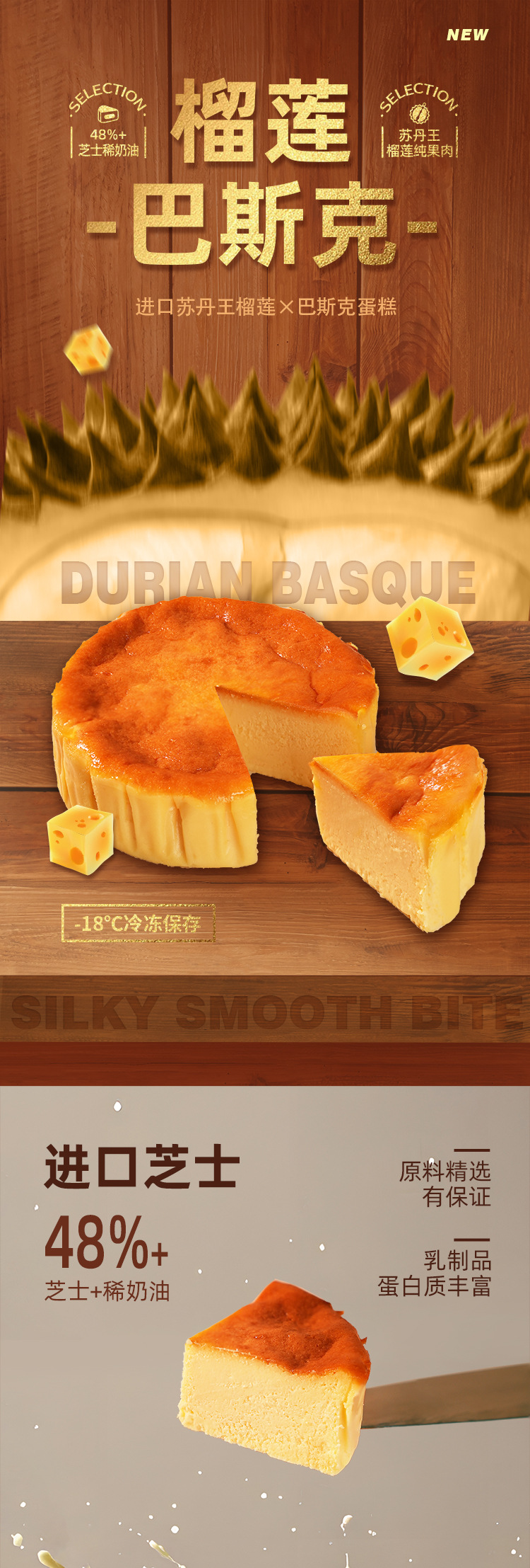 두리안 바스크 치즈 치즈 케이크 음식 스낵 케이크 치즈 디저트 애프터눈 티 웨스턴 재고
