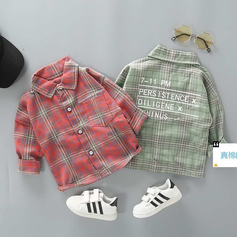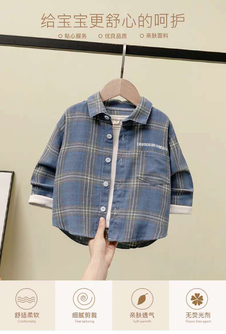 남아용 셔츠, 봄, 가을 스타일, 중소형 아동용 체크무늬 셔츠, 아동복, 패셔너블한 베이비 긴팔 면 상의, 얇은 코트, 트렌디스토어 가기