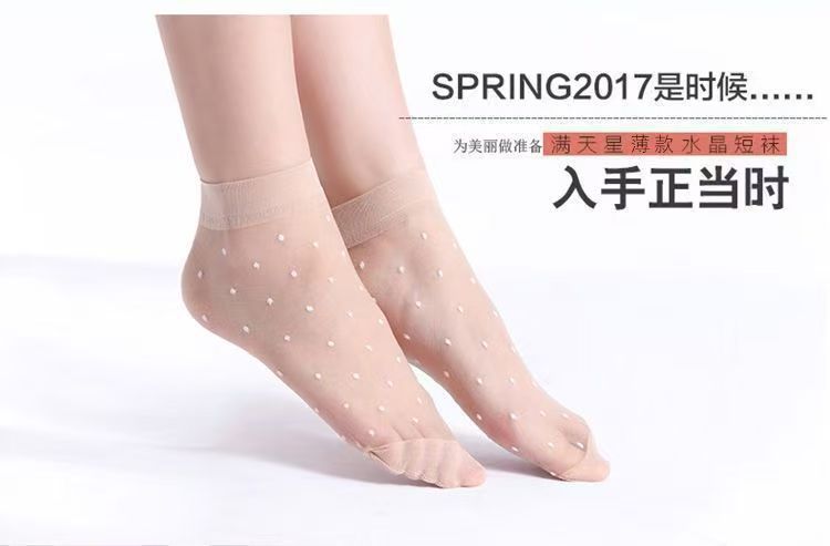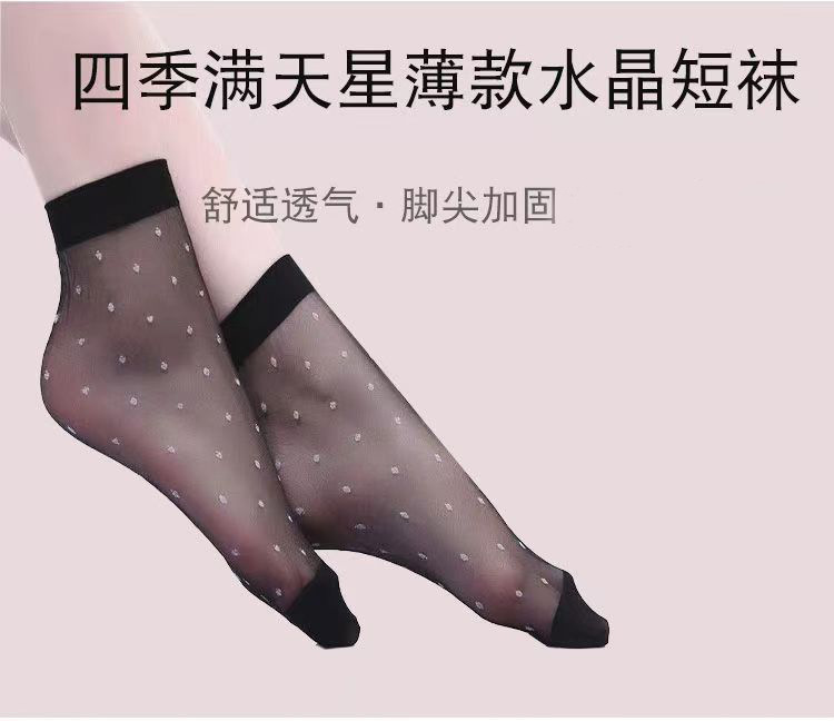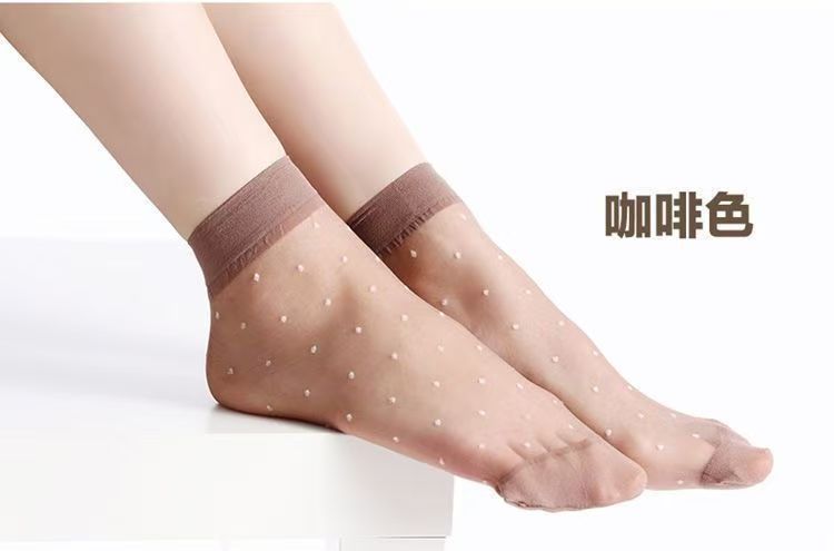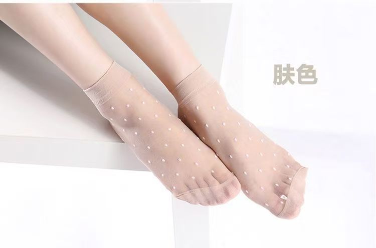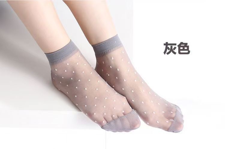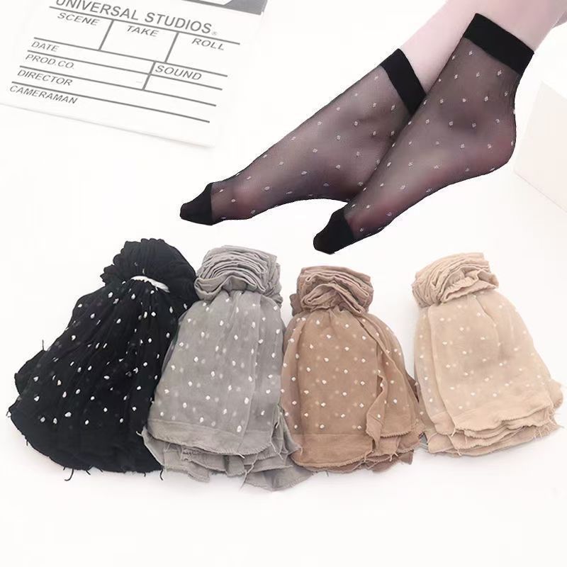 여성용 도트 양말, 초박형 투명 흑백 도트 모양의 걸림 방지 실크 내마모성 양말, 여름 안개꽃 크리스탈 양말스토어 가기