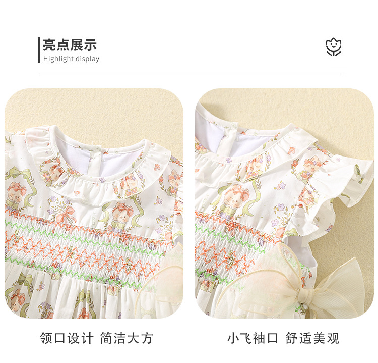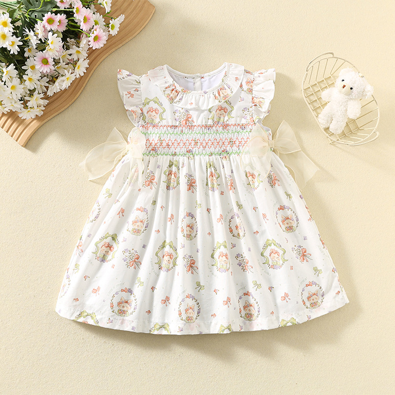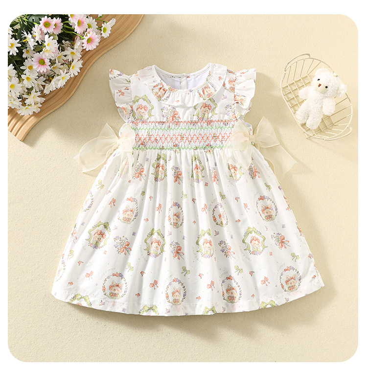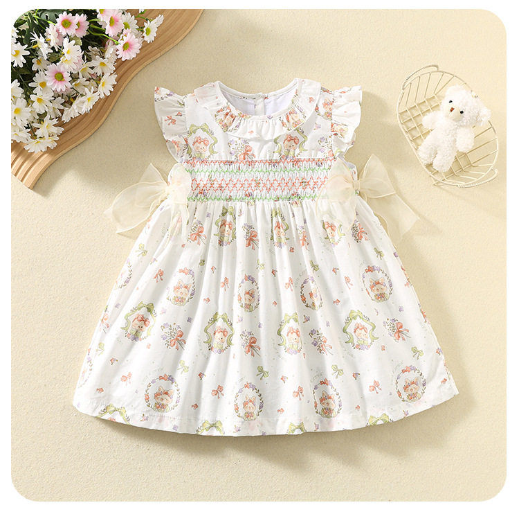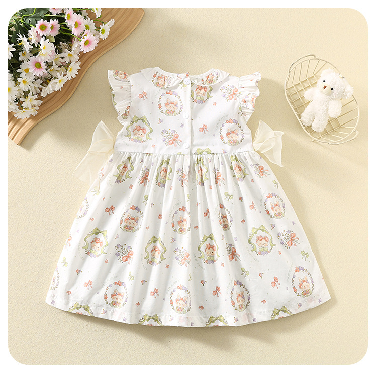 한국 스타일 여름 아기 소녀 프린트 드레스, 귀여운 아동 스커트, 면 얇은 아동 스커트, 중소형 어린이 공주 스커트