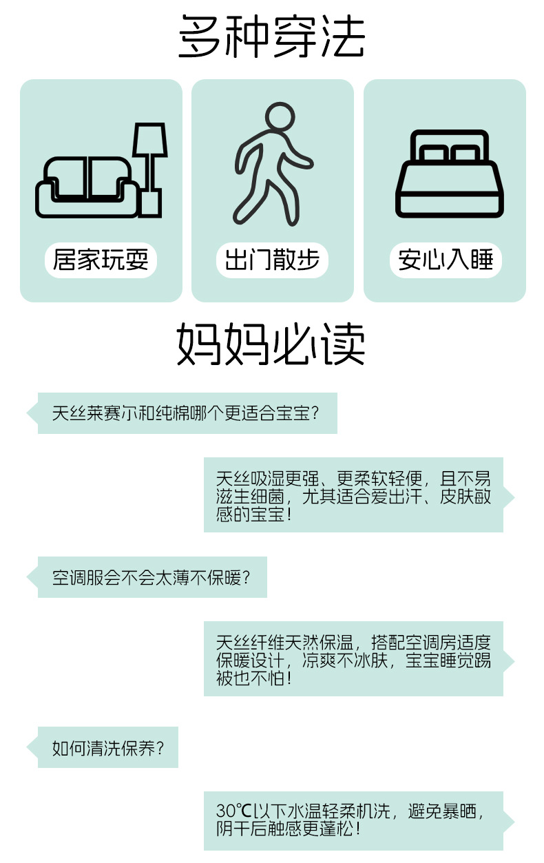 여름 얇은 민트 텐셀 잠옷 클래스 A 여아 홈웨어 세트 모달 베이비 오픈 에어컨 의류스토어 가기