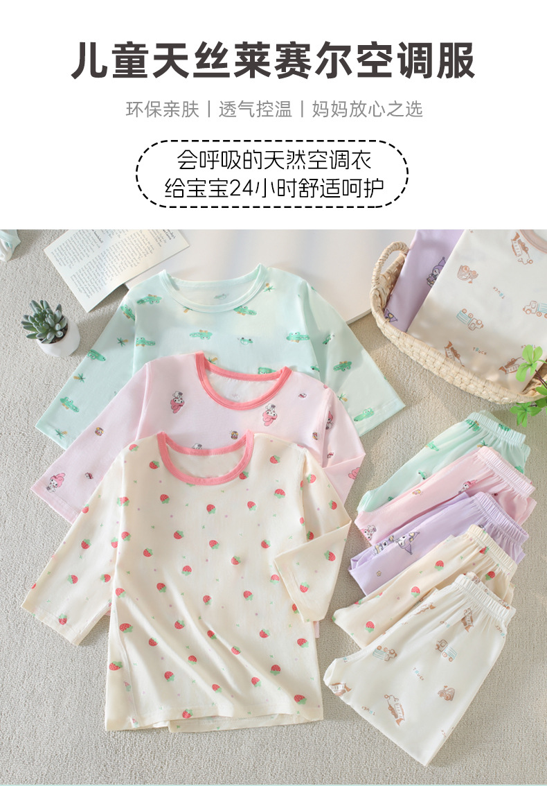 여름 얇은 민트 텐셀 잠옷 클래스 A 여아 홈웨어 세트 모달 베이비 오픈 에어컨 의류