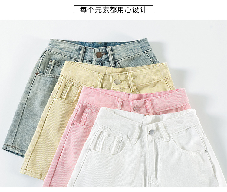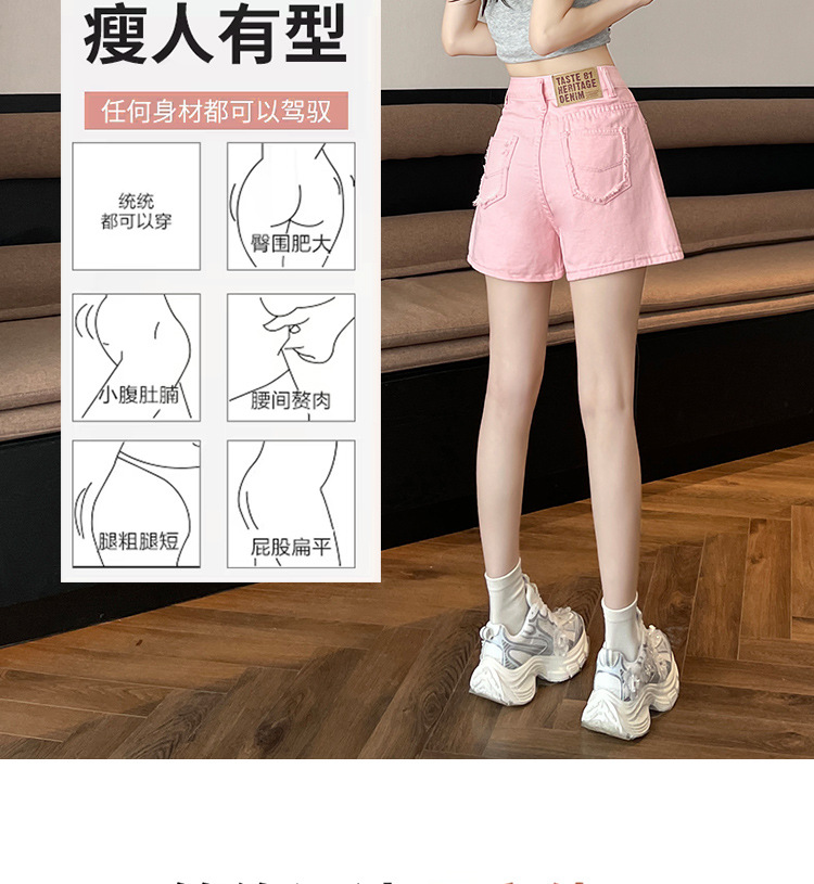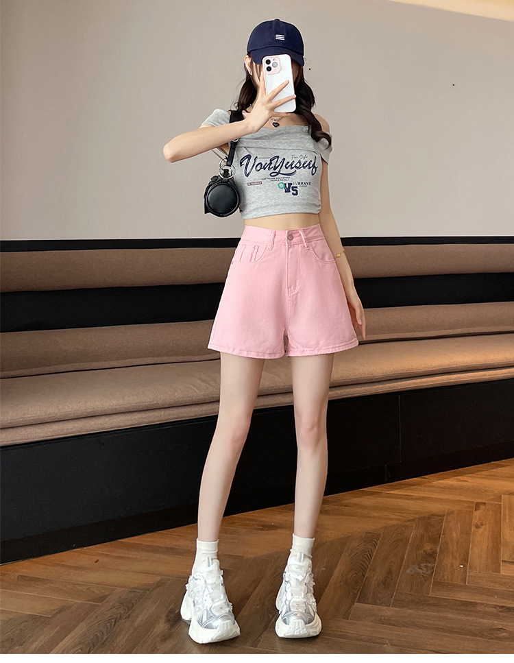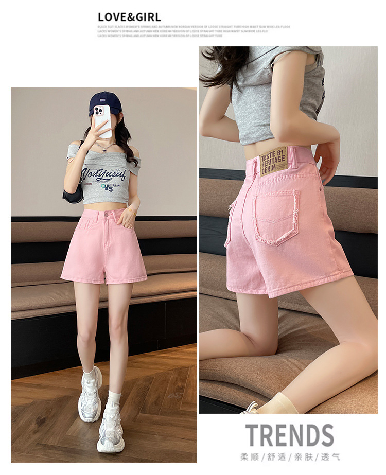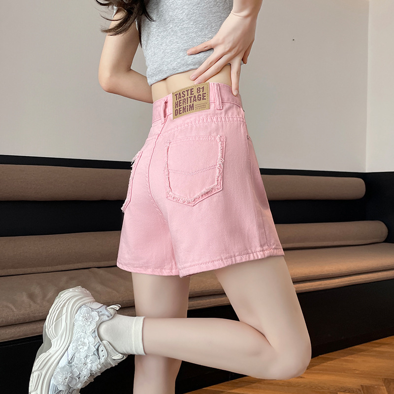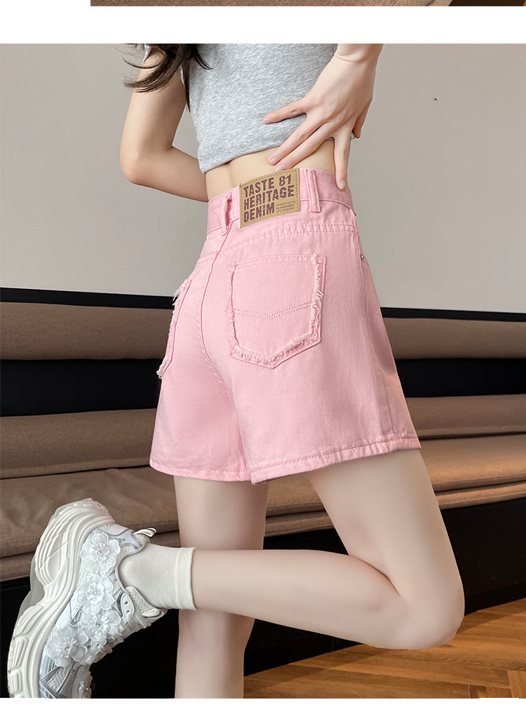 핑크 데님 반바지 여성의 2025 여름 얇은 높은 허리 넓은 다리 A 모양의 도파민 색 뜨거운 바지스토어 가기