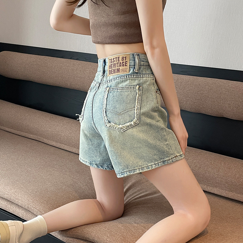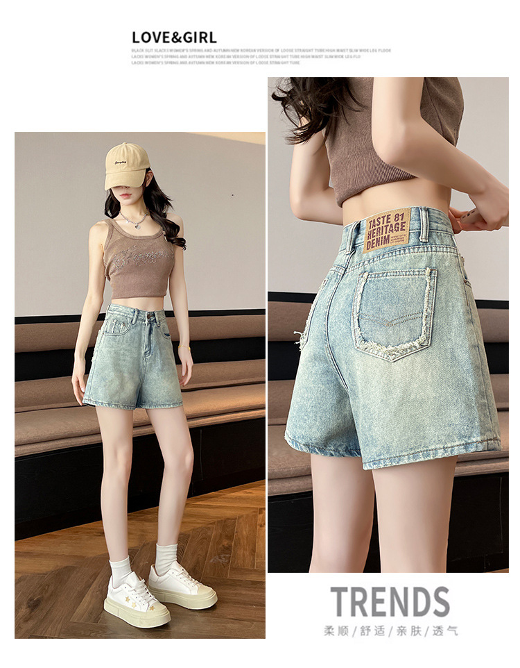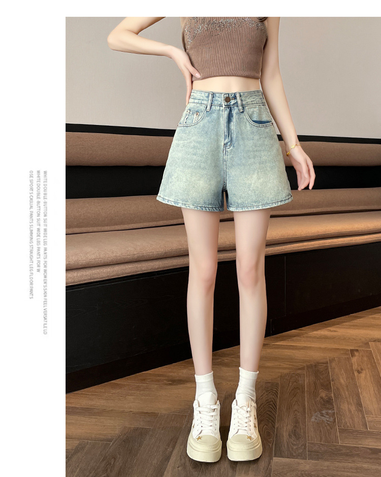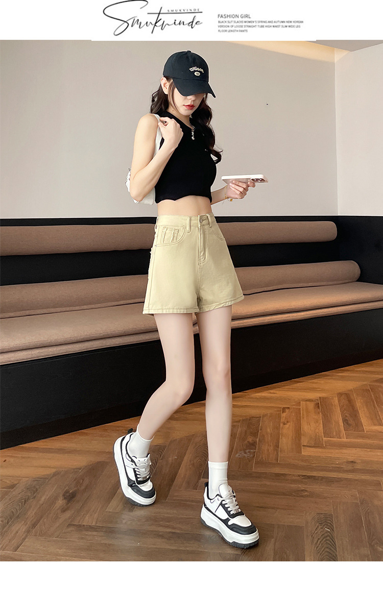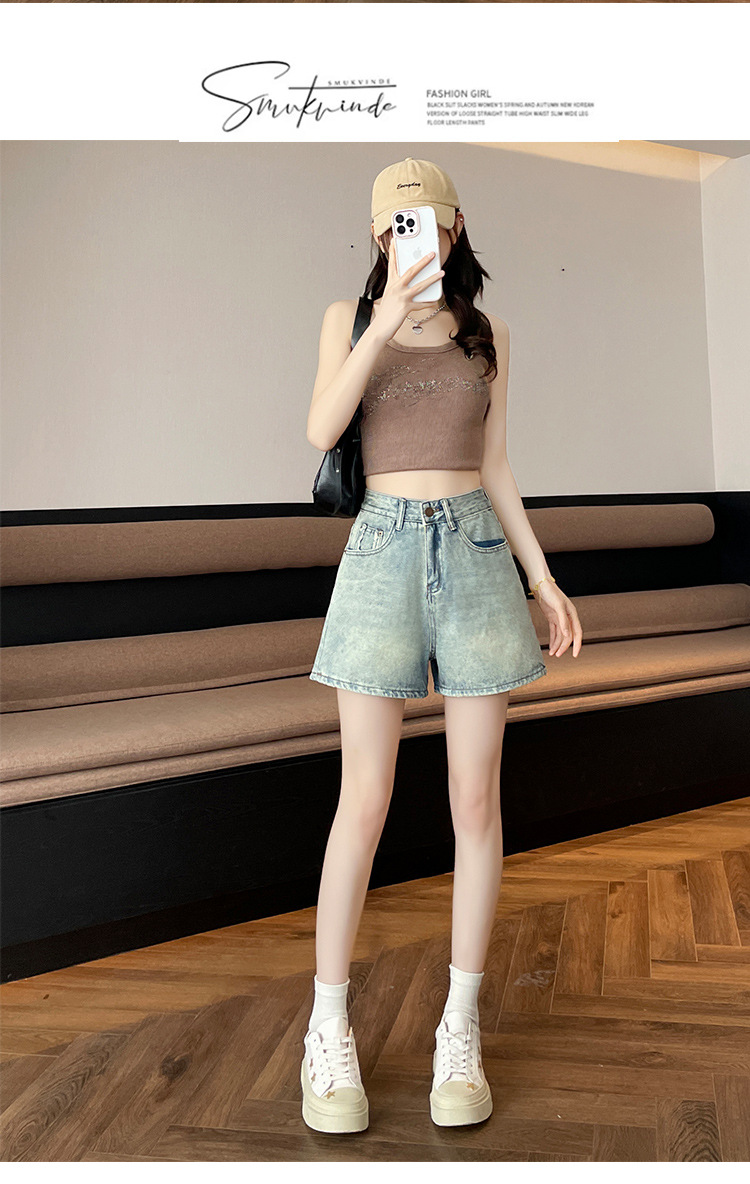 핑크 데님 반바지 여성의 2025 여름 얇은 높은 허리 넓은 다리 A 모양의 도파민 색 뜨거운 바지스토어 가기
