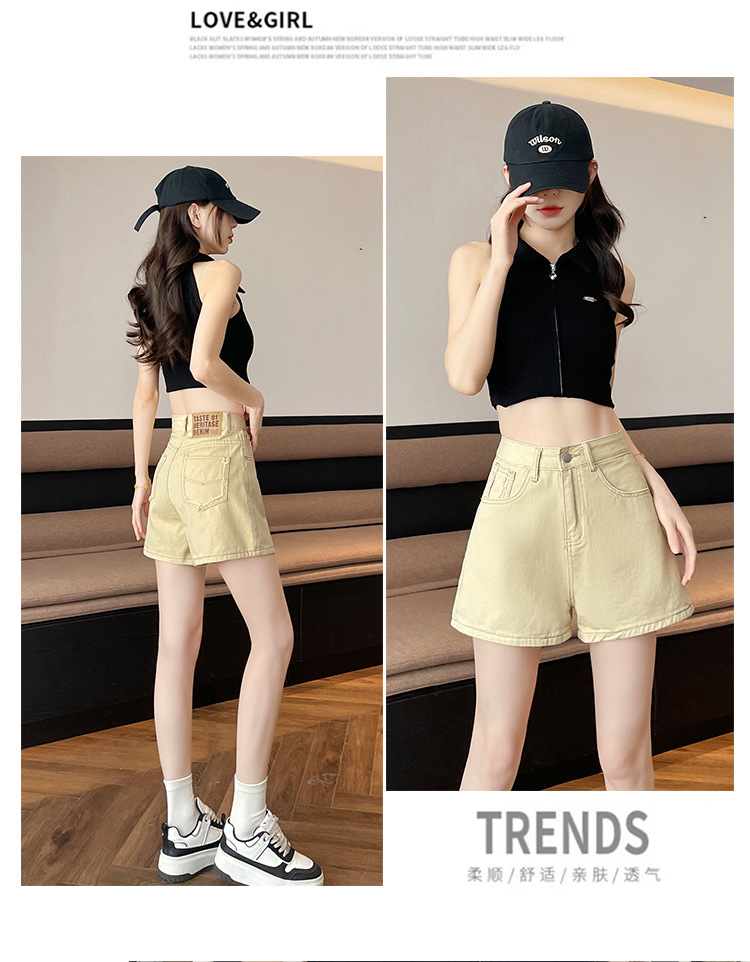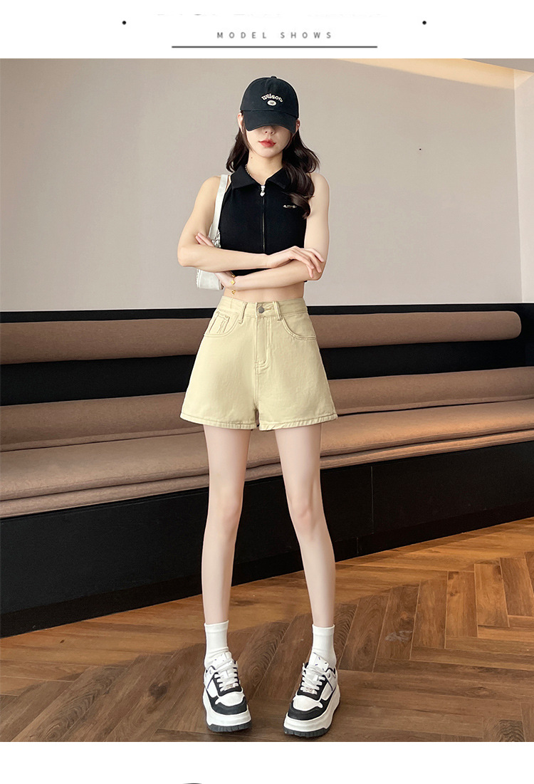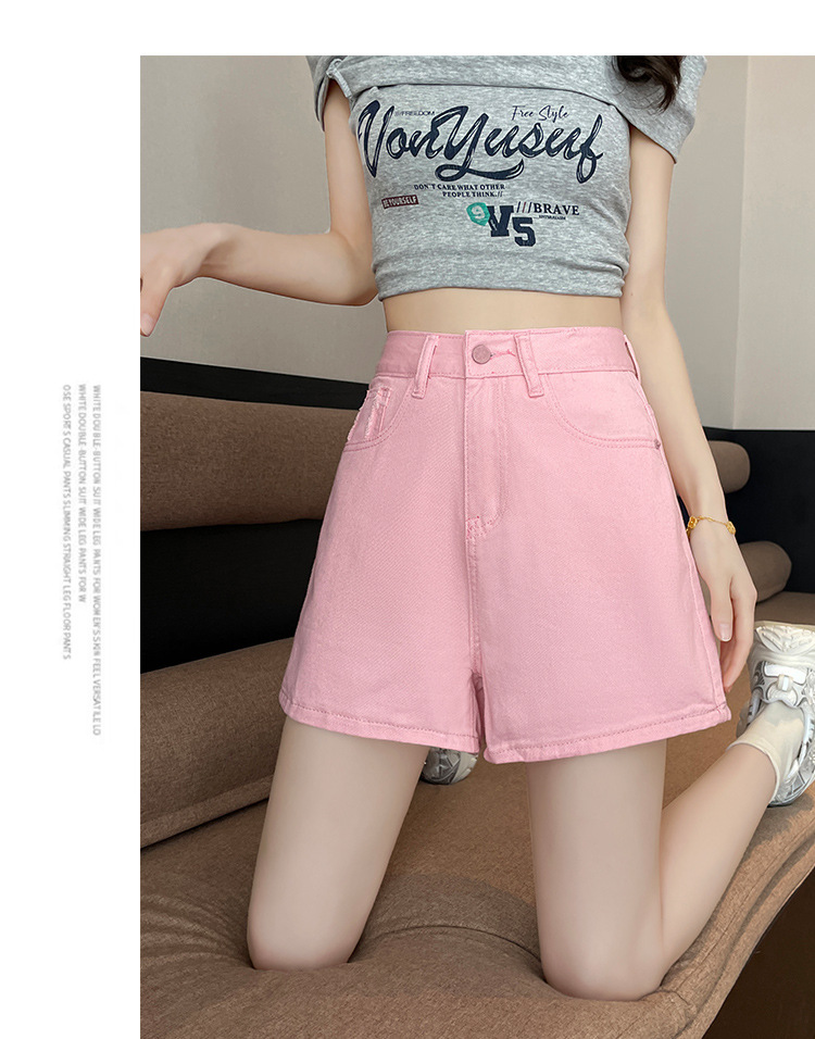 핑크 데님 반바지 여성의 2025 여름 얇은 높은 허리 넓은 다리 A 모양의 도파민 색 뜨거운 바지