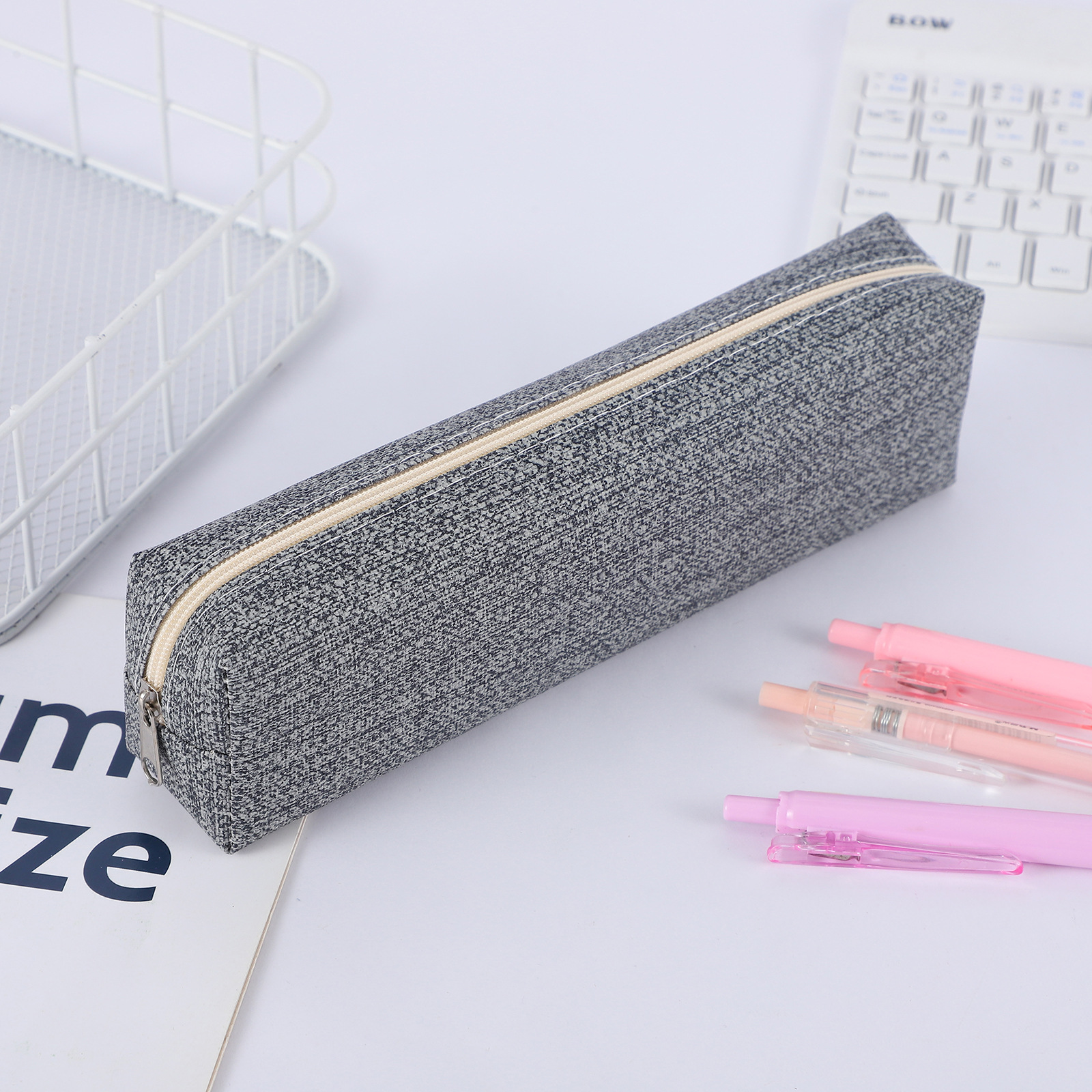 간단한 기능 스타일 연필 가방 크로스 보더 솔리드 컬러 얼룩 방지 문구 보관 가방 틈새 소형 휴대용 시험 문구 가방스토어 가기