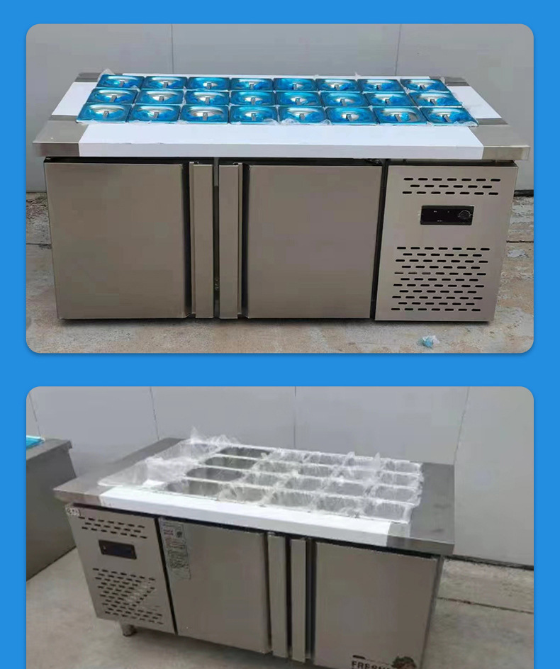 슬롯형 샐러드 테이블, 상업용 신선보관 냉장 작업대, 피자 및 반찬 냉장고, 과일 디스플레이 캐비닛, 보온 스프레이스토어 가기