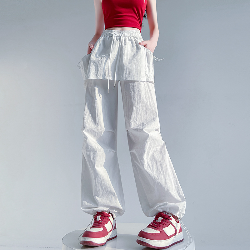 아메리칸 스타일 핫 걸 아이스 실크 빠른 건조 크록 바지 여성용 여름 얇은 투웨어 캐주얼 바지 등산 선 스크린 와이드 레그 바지스토어 가기
