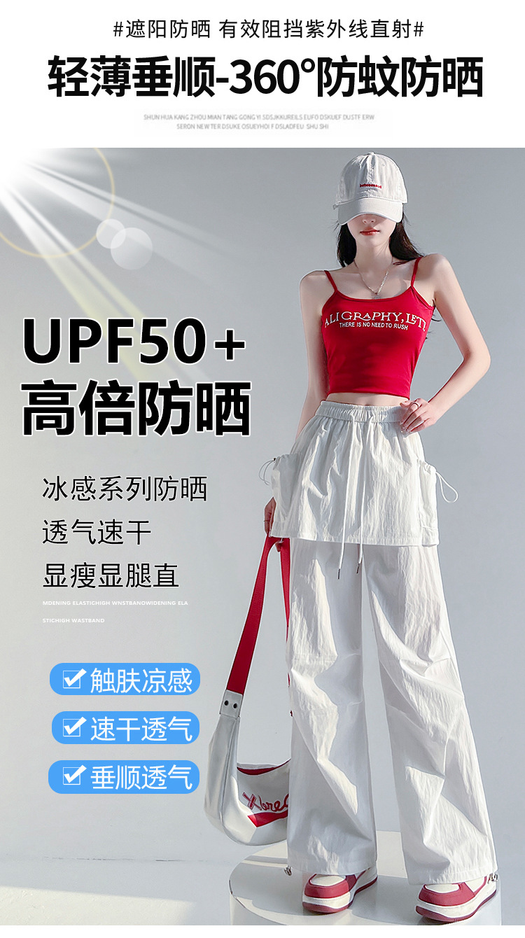 아메리칸 스타일 핫 걸 아이스 실크 빠른 건조 크록 바지 여성용 여름 얇은 투웨어 캐주얼 바지 등산 선 스크린 와이드 레그 바지