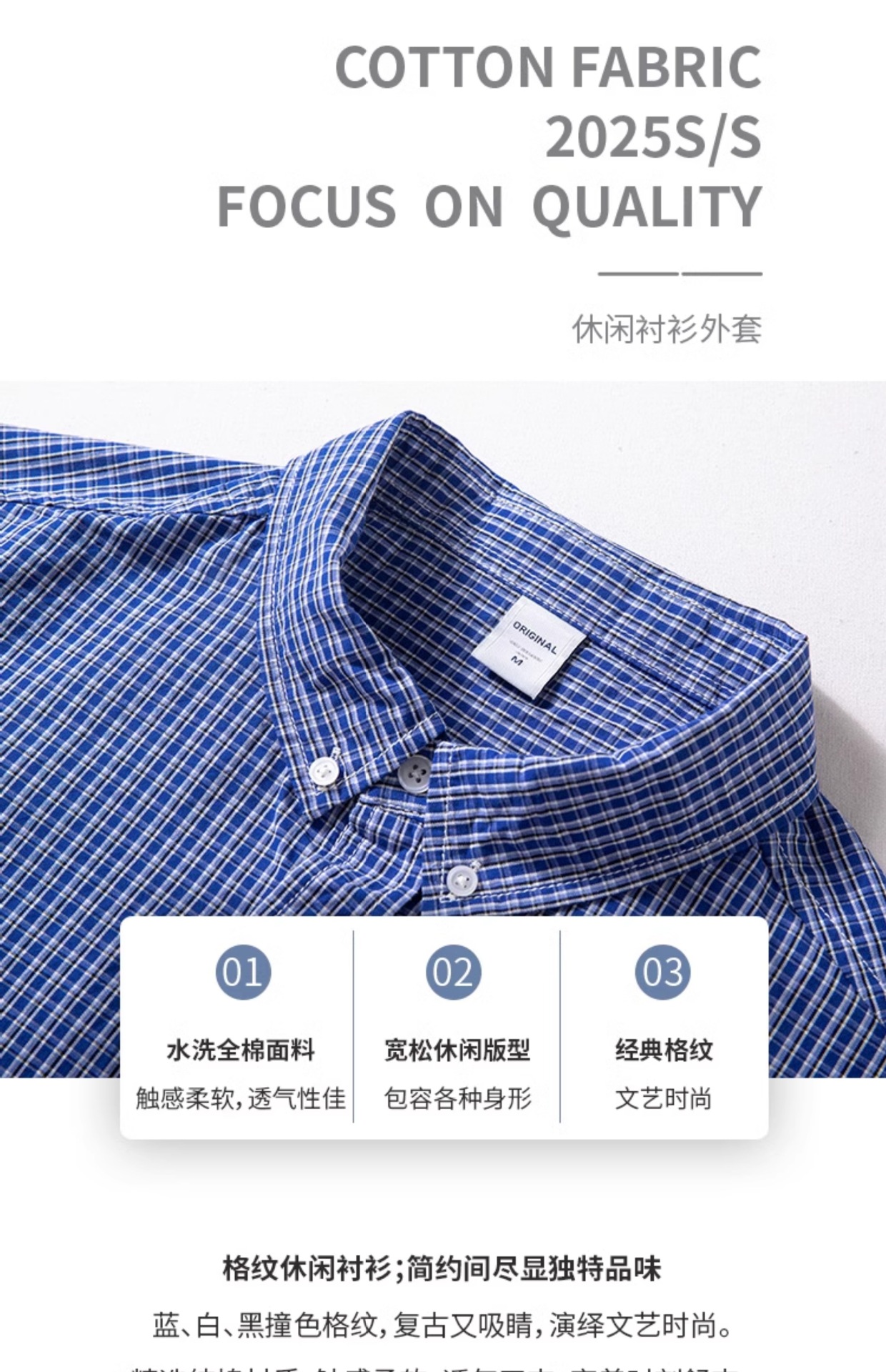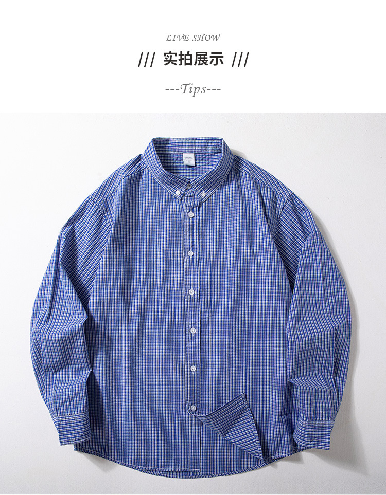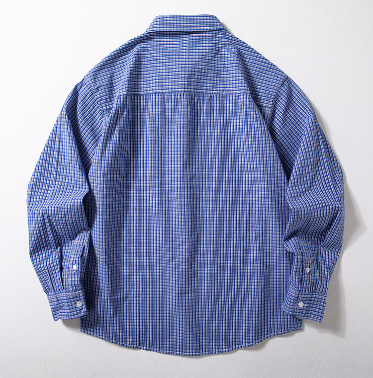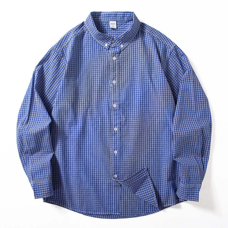 아메리칸 스타일 레트로 블루 플레이드 셔츠 남성 클렌핏 봄과 가을 코튼 긴 소매 셔츠 청소년 트렌디 재킷스토어 가기