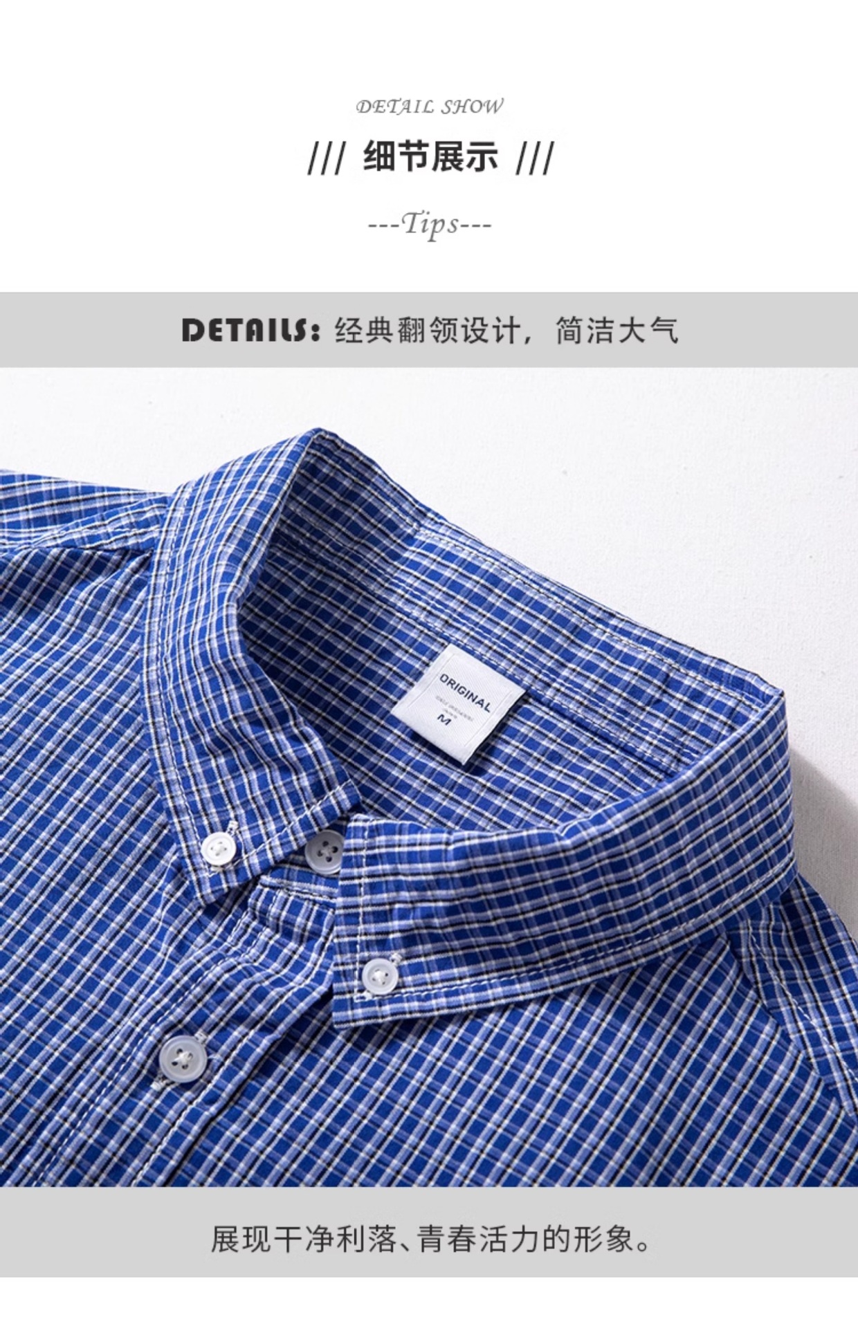 아메리칸 스타일 레트로 블루 플레이드 셔츠 남성 클렌핏 봄과 가을 코튼 긴 소매 셔츠 청소년 트렌디 재킷