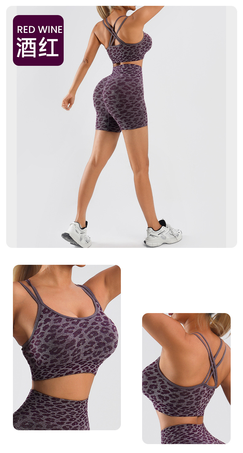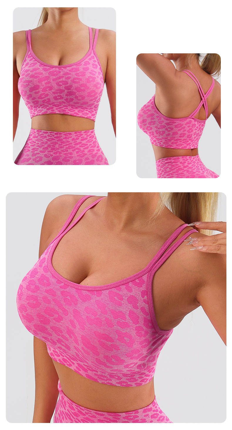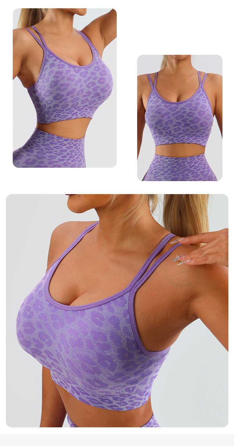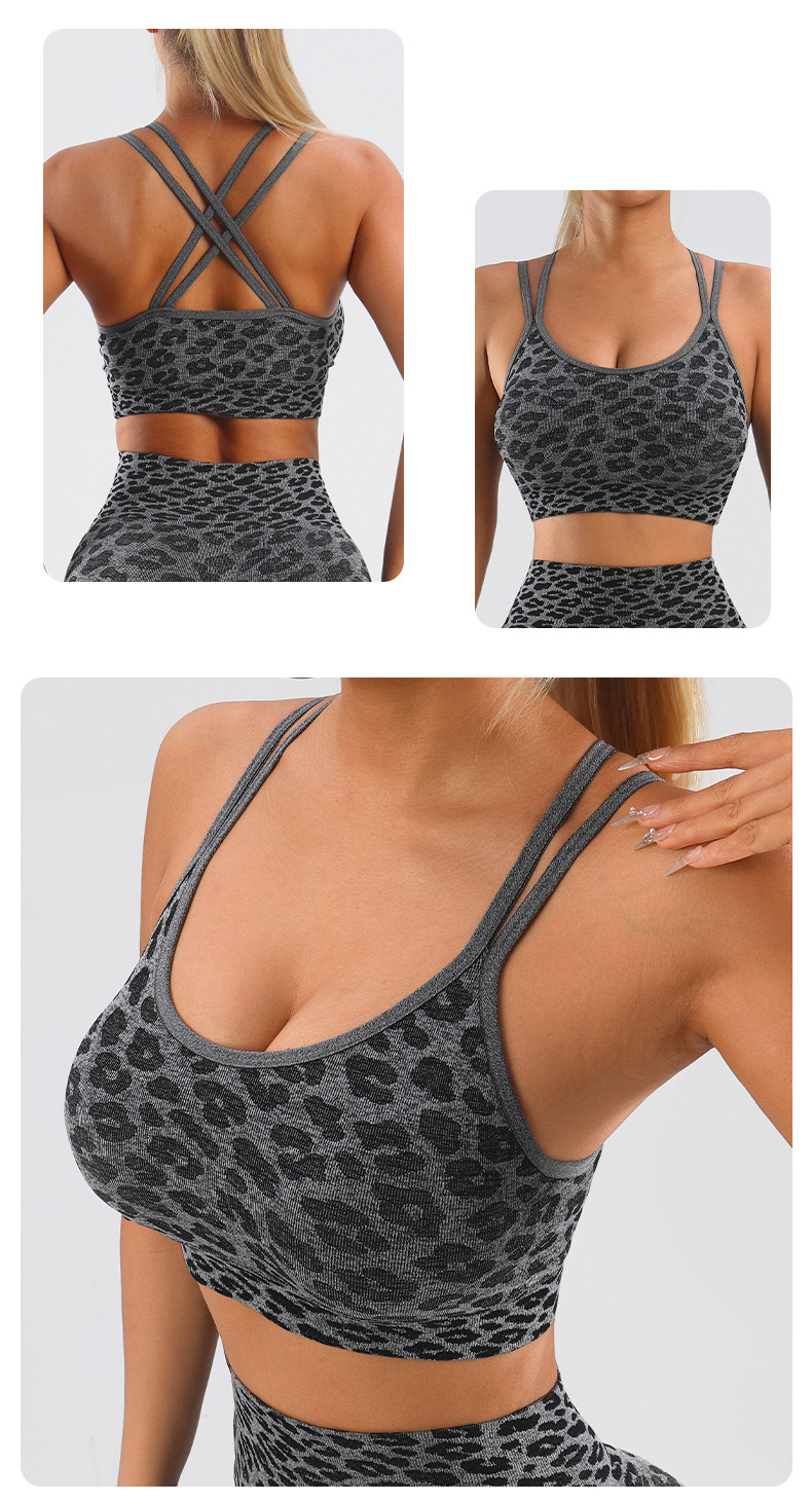 아마존 원활한 스트레치 레오파드 무늬 푸시 업 요가 조끼 크로스 섹시한 스포츠 브래지어 가슴 패드 피트니스 속옷