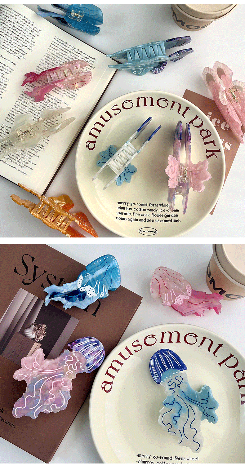 새로운 바다 시리즈 해파리 아세트산 클립 도파민 색상 일치 우아한 머리핀 상어 클립 머리 머리 액세서리