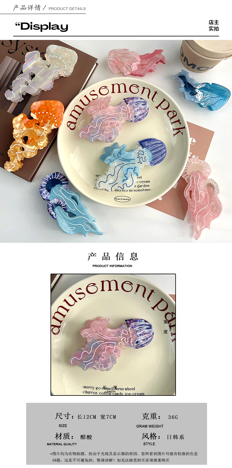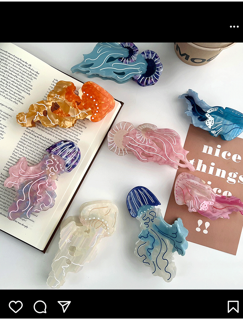 새로운 바다 시리즈 해파리 아세트산 클립 도파민 색상 일치 우아한 머리핀 상어 클립 머리 머리 액세서리스토어 가기