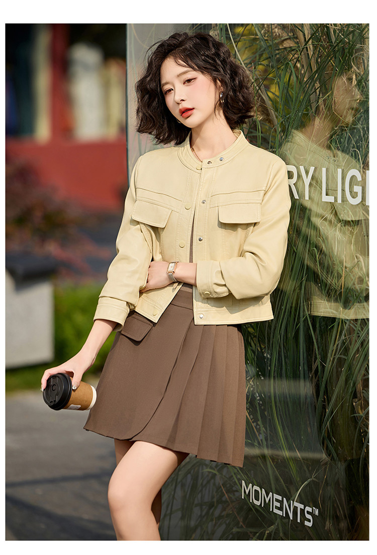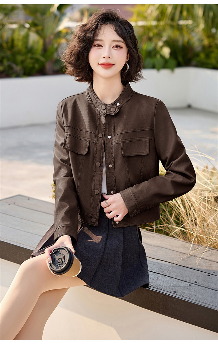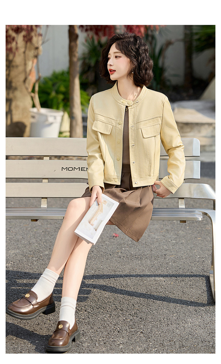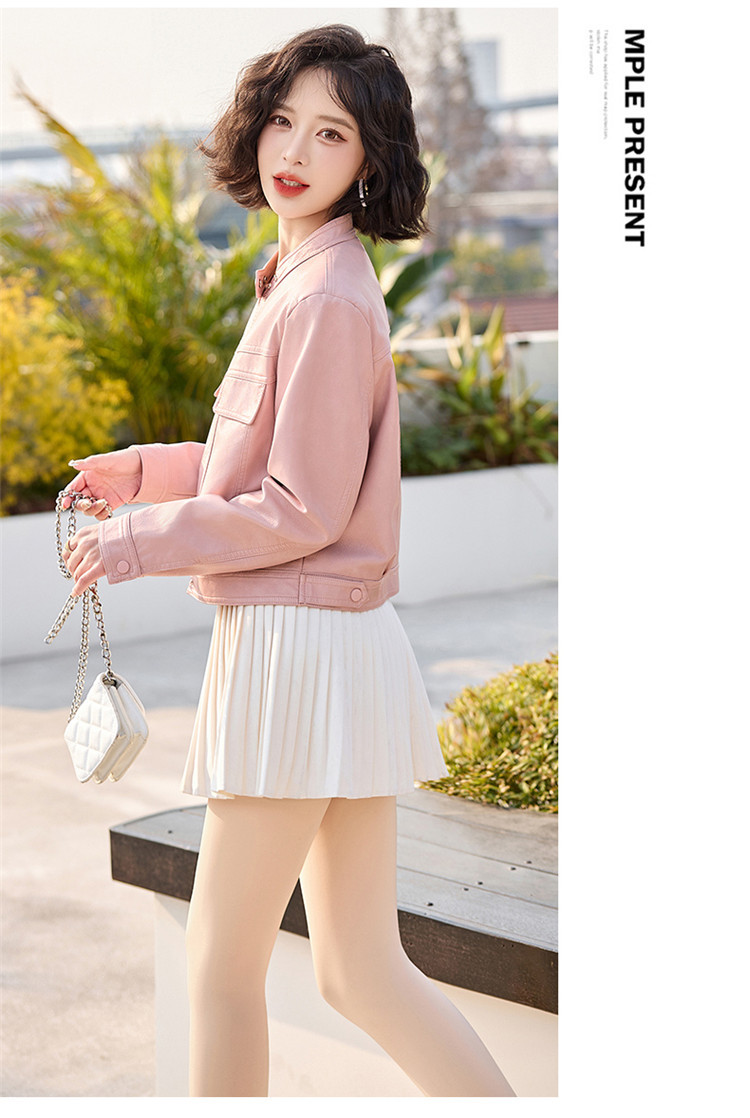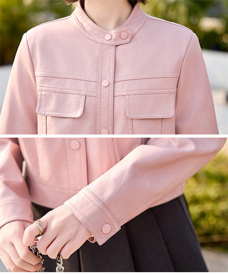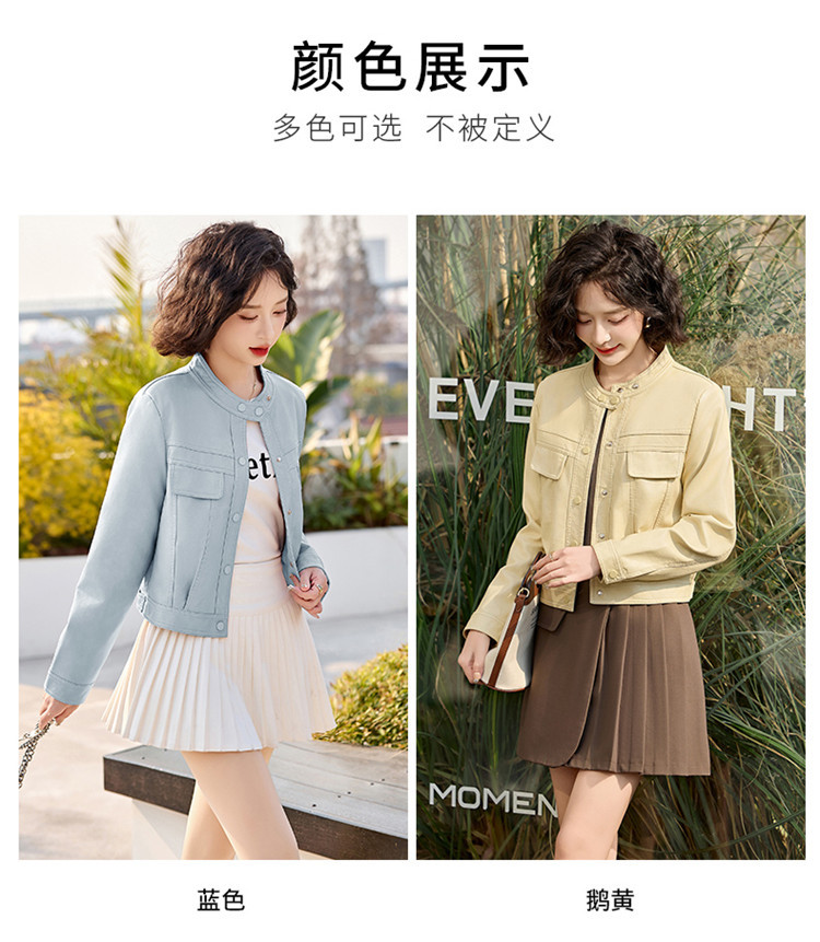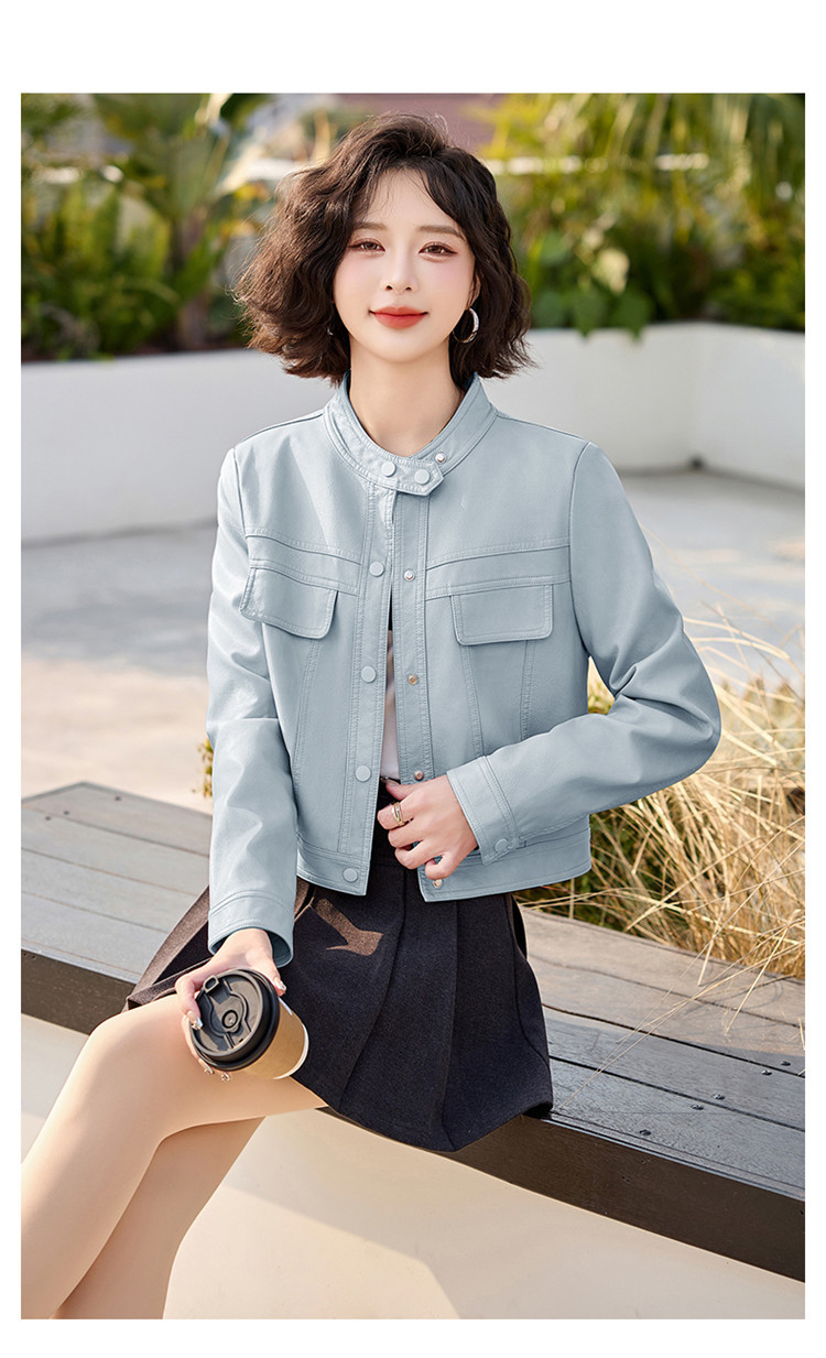 여성용 소형 가죽 자켓 2025 새로운 봄, 가을 작은 짧은 스탠드 칼라 하이 엔드 오토바이 가죽 자켓스토어 가기