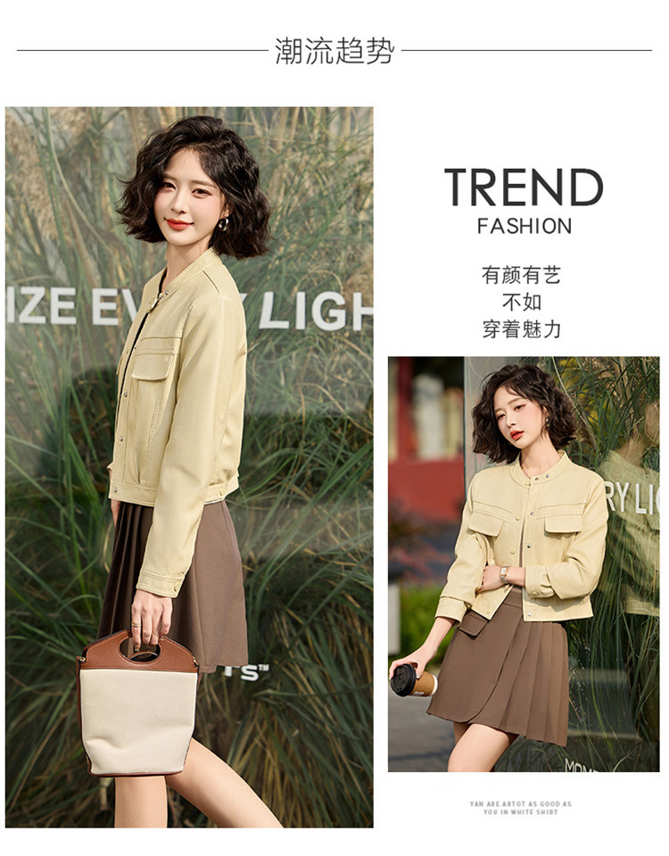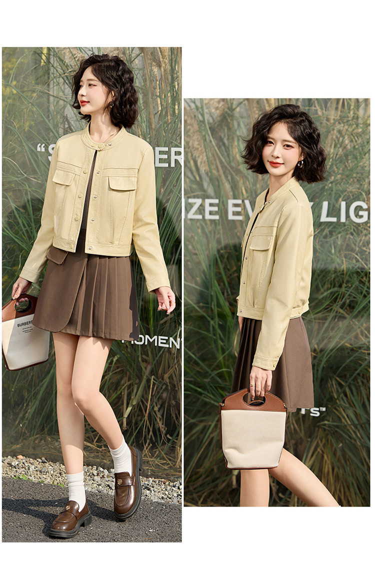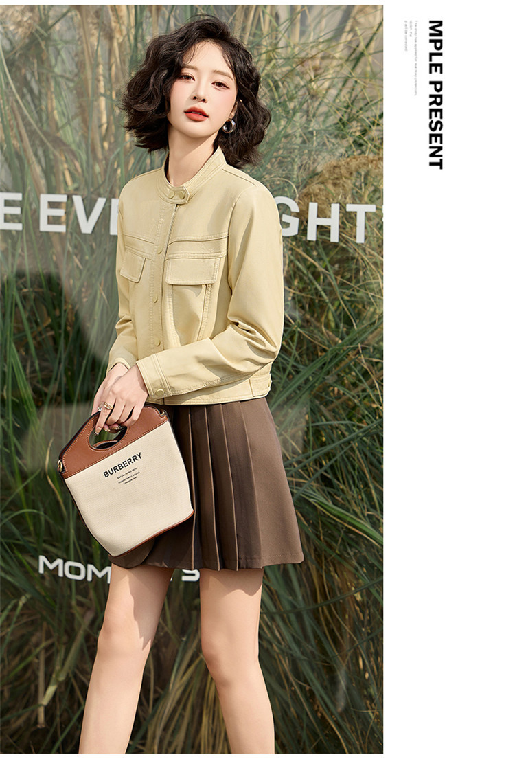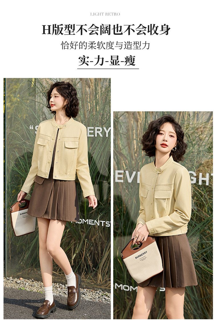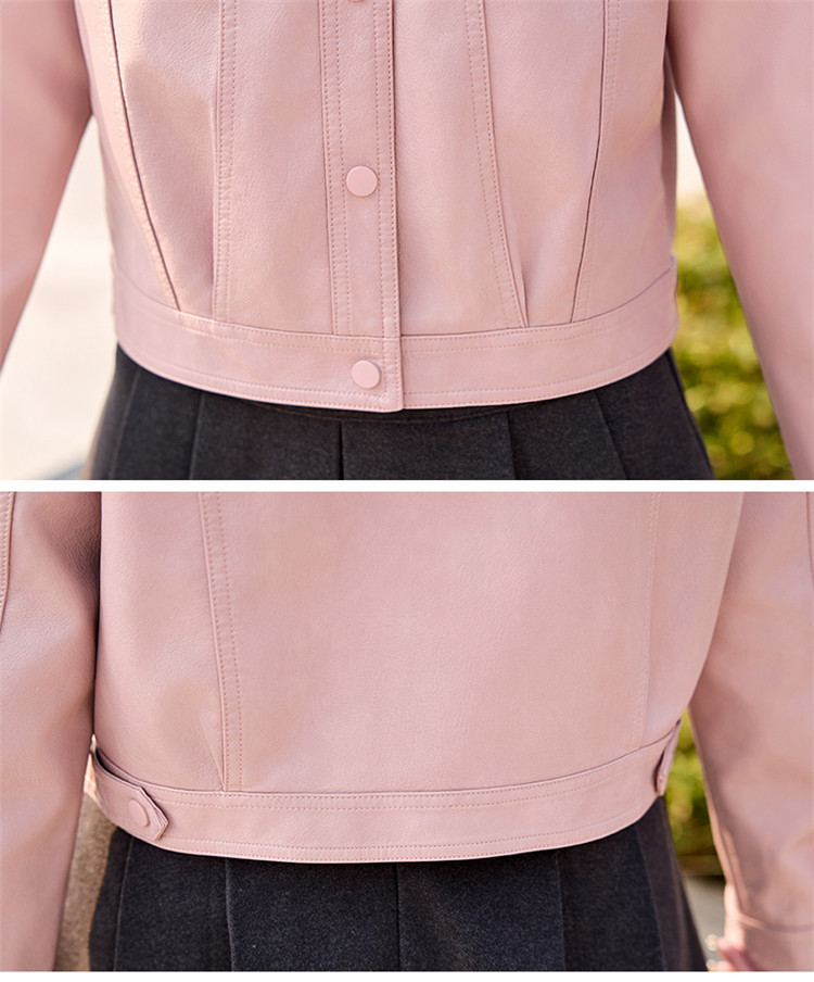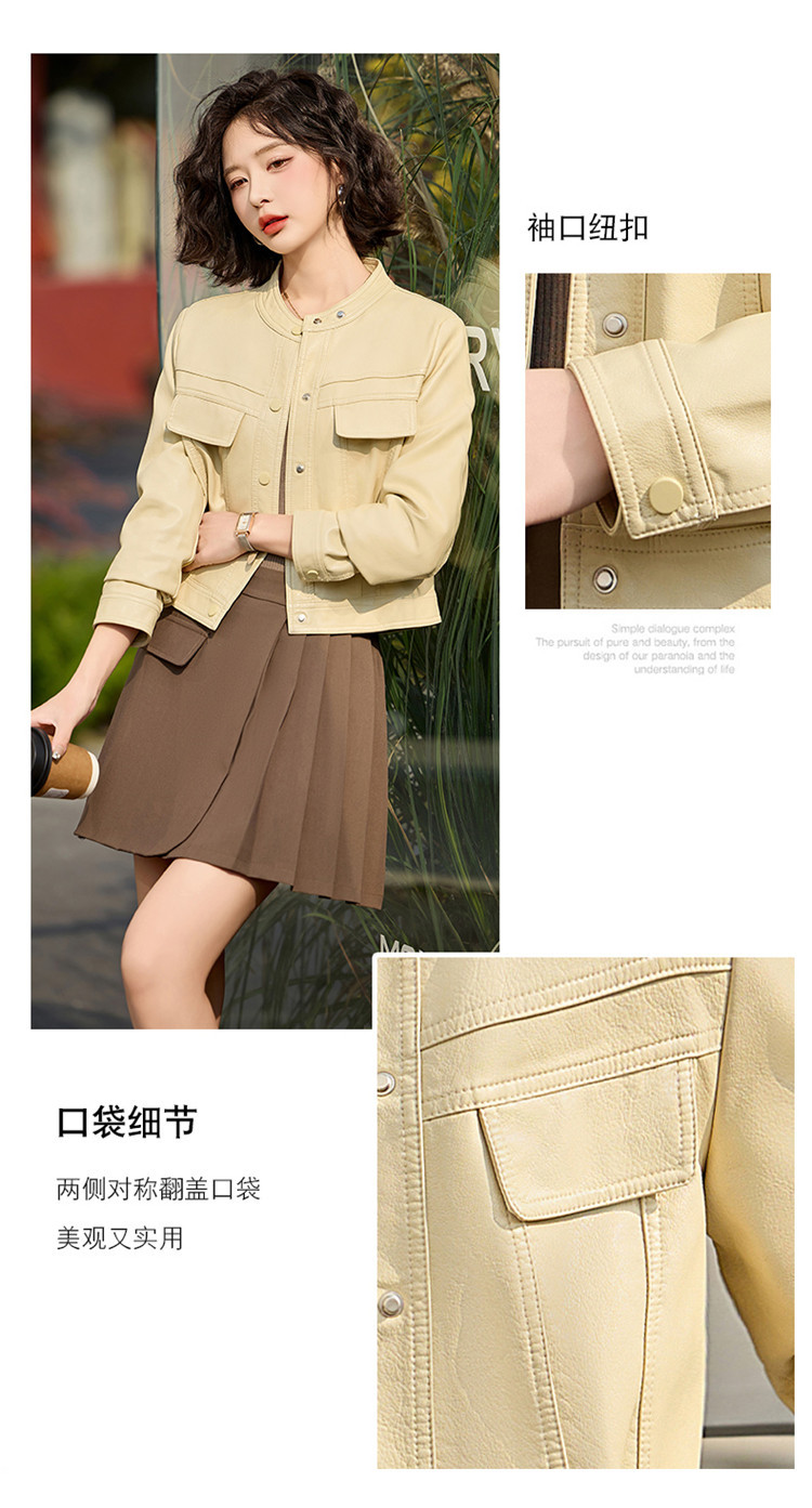 여성용 소형 가죽 자켓 2025 새로운 봄, 가을 작은 짧은 스탠드 칼라 하이 엔드 오토바이 가죽 자켓스토어 가기
