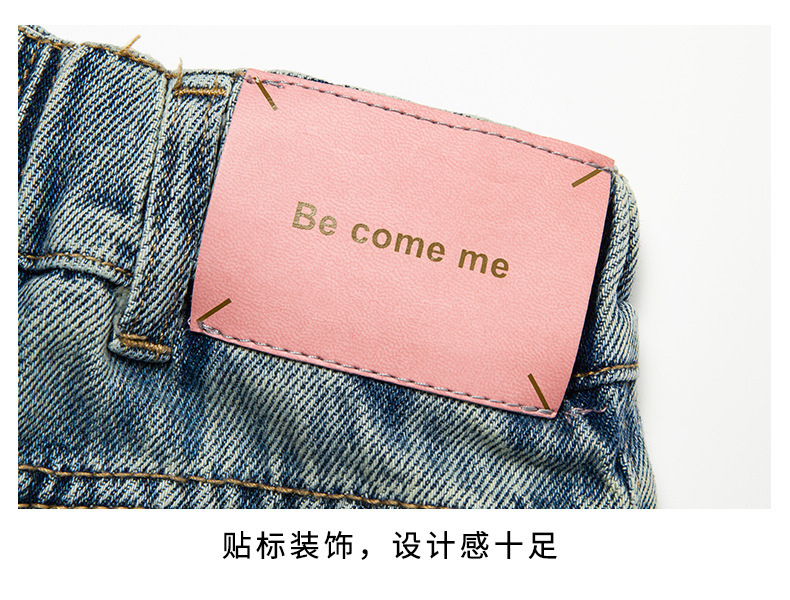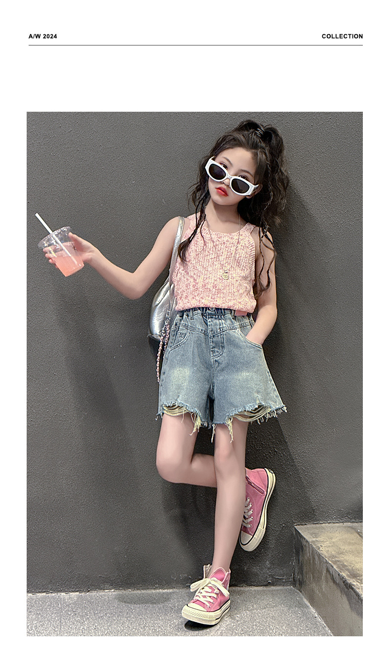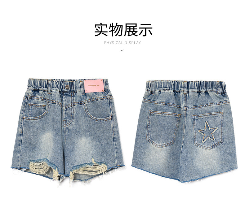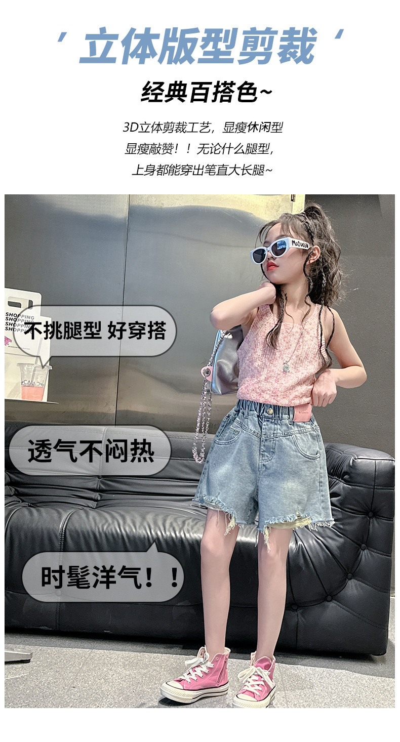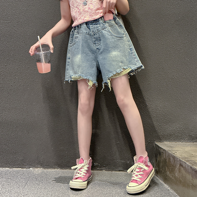 대외 무역 도매 여자 여름 데님 반바지 2025 새로운 패션 중대형 어린이 스타일 핑크 라벨 기모 핫팬츠 트렌드스토어 가기