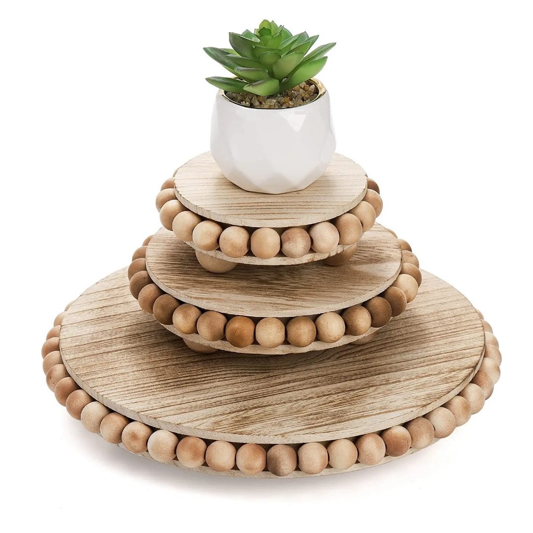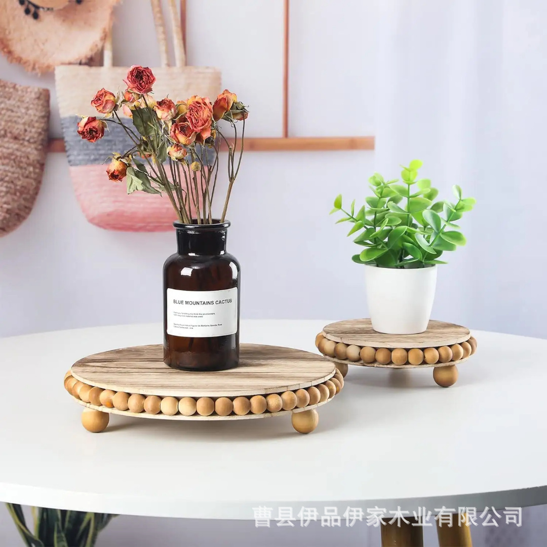북유럽 라운드 나무 구슬 높은 트레이 케이크 디저트 장식 트레이 미국 컨트리 스타일 단단한 나무 구슬 트레이 나무 트레이