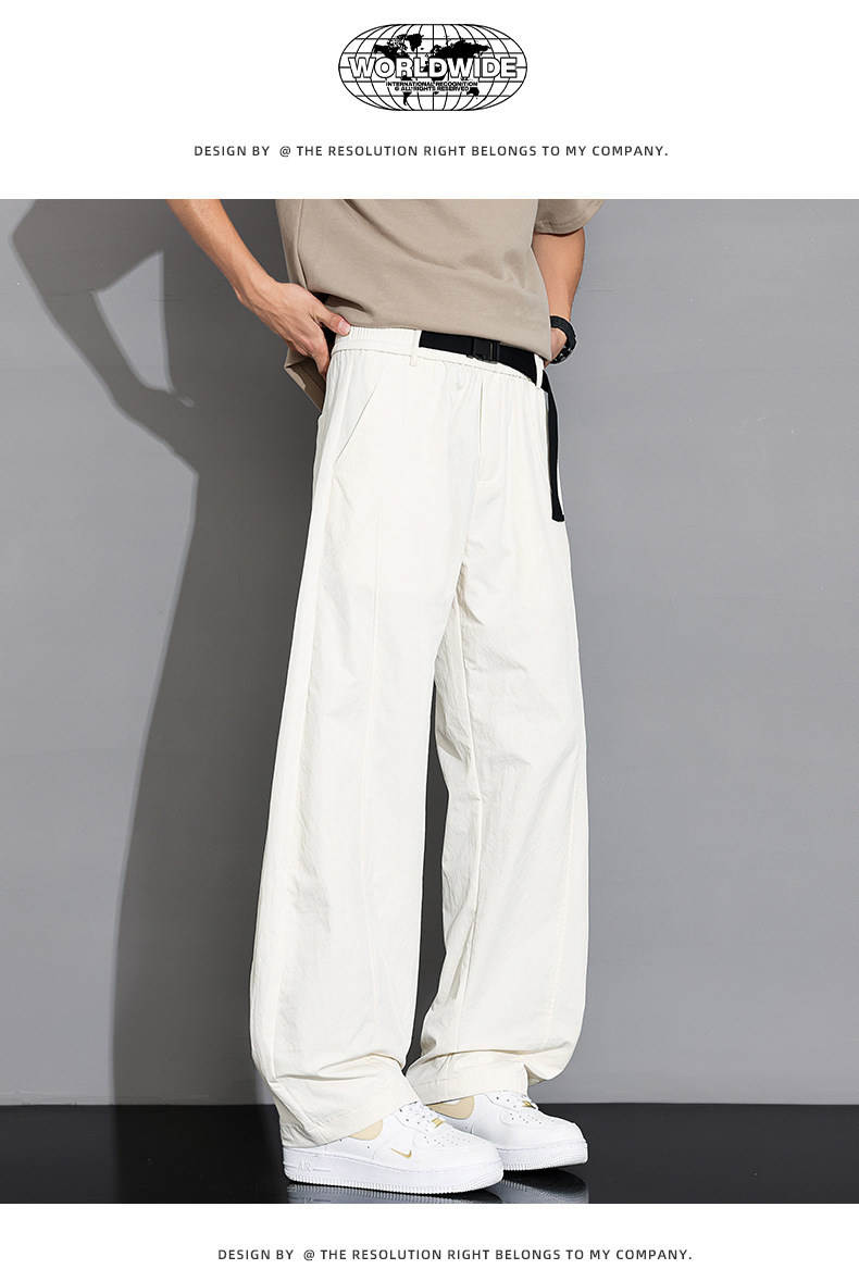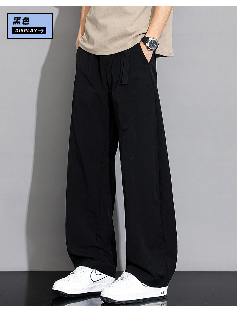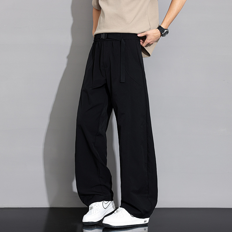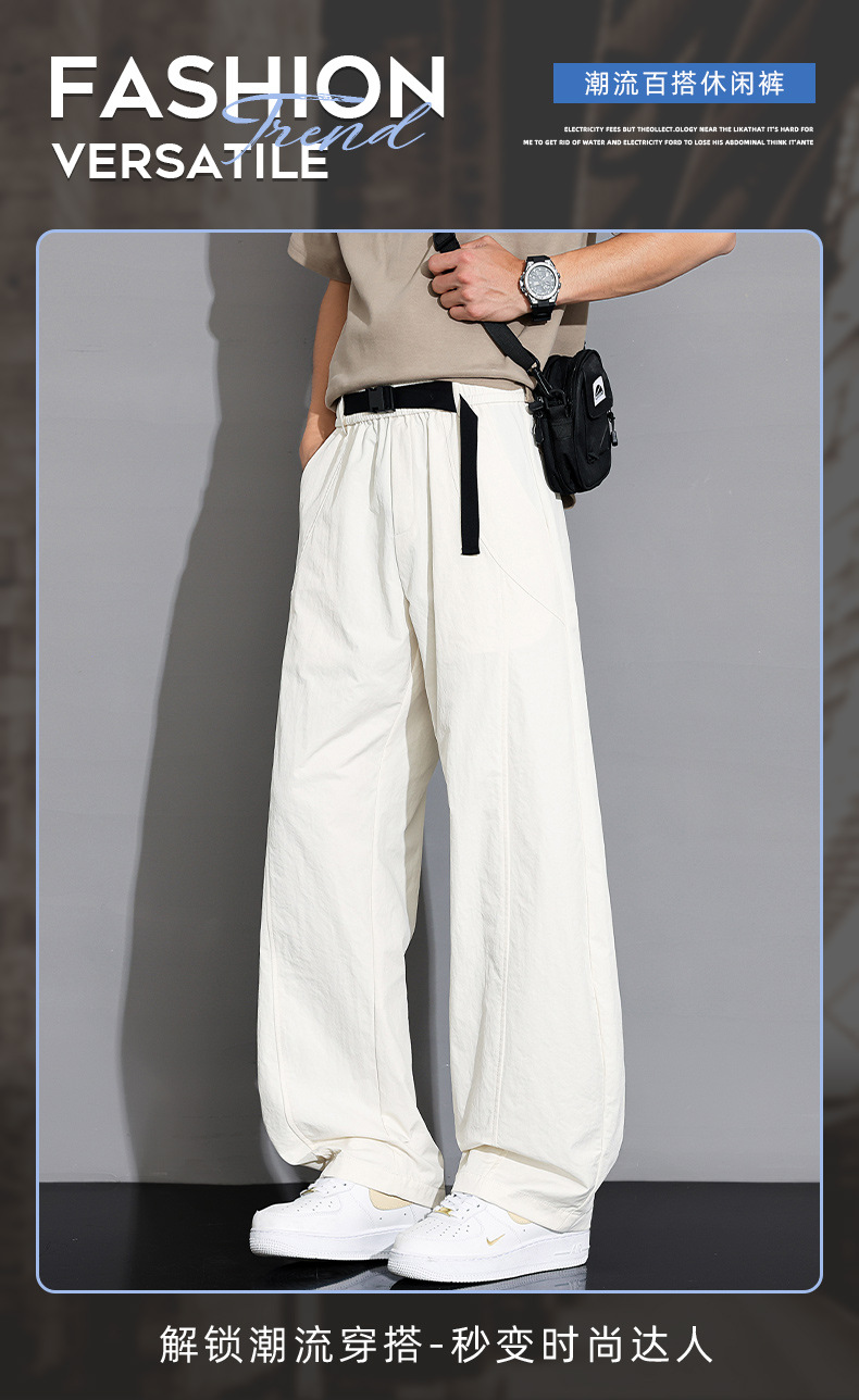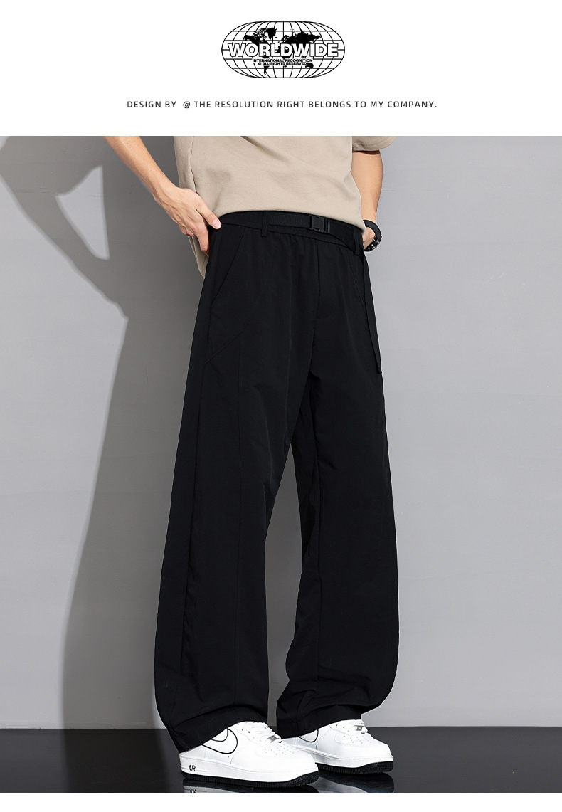 남성용 봄 여름 신상 스트레이트 컬리지 팬츠, 패셔너블하고 고급스럽고 심플하고 기질이 있고 패셔너블하고 다재다능하며 버클이 내장된 캐주얼 팬츠