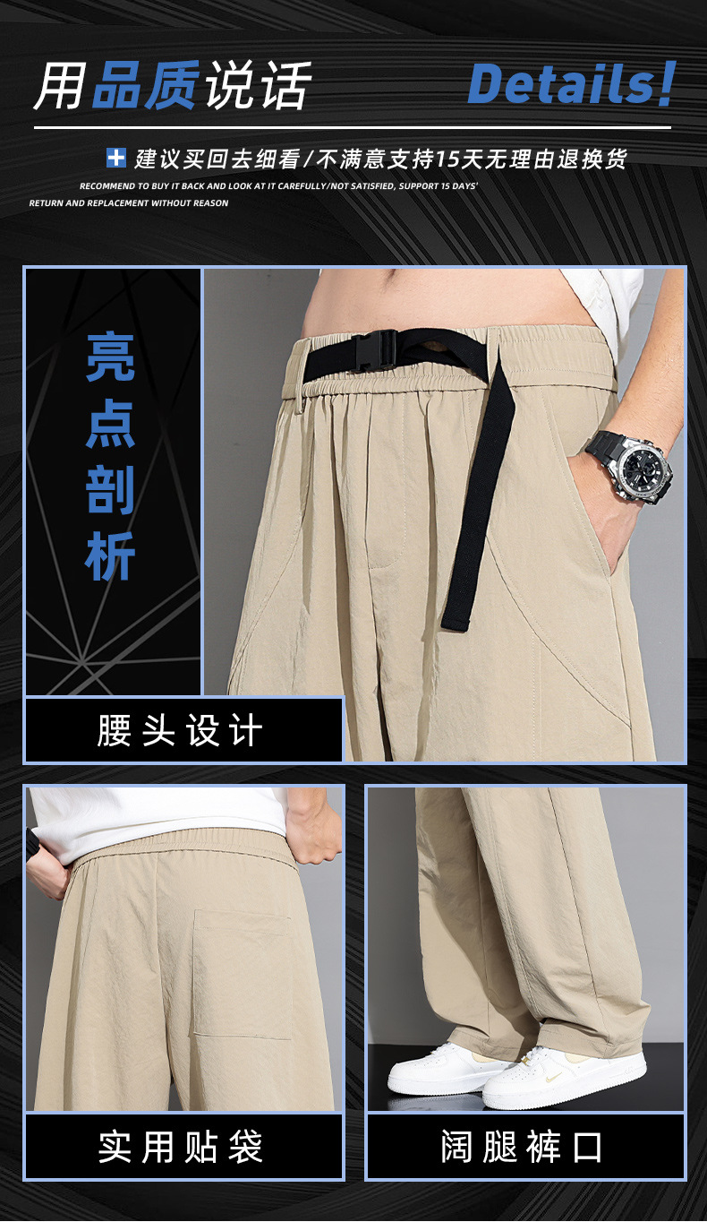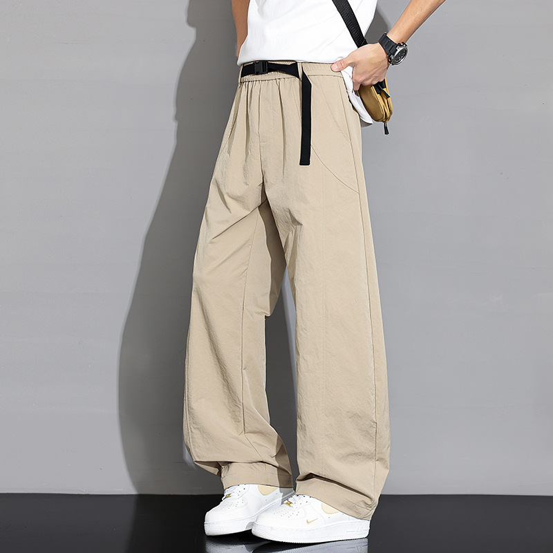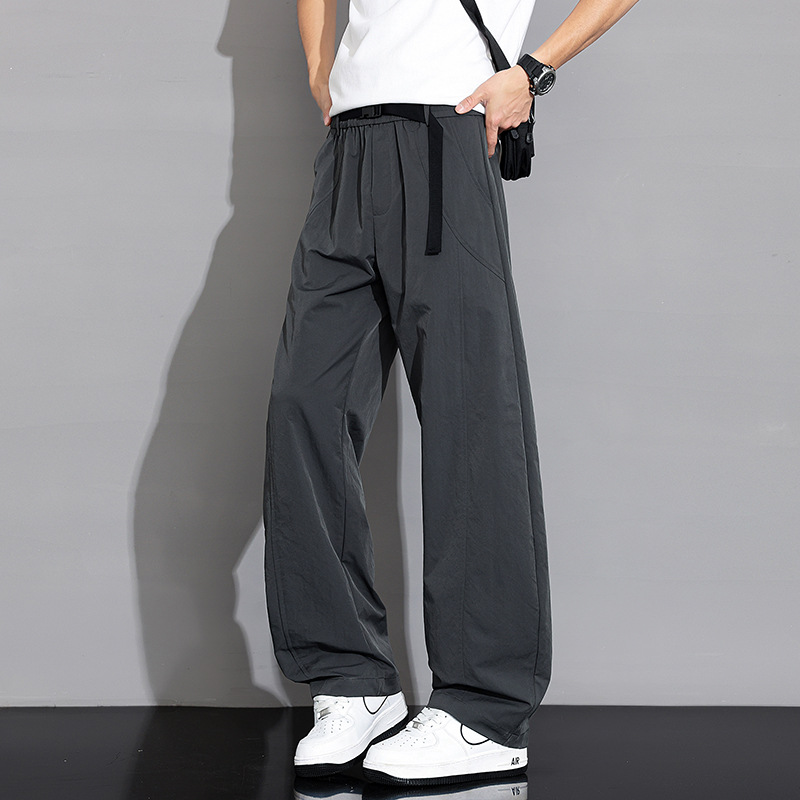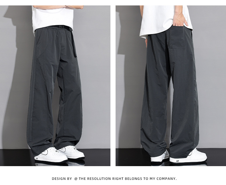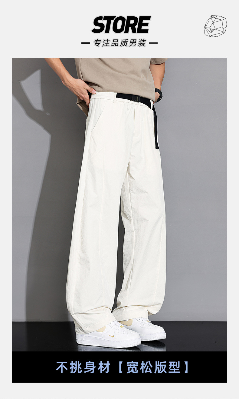 남성용 봄 여름 신상 스트레이트 컬리지 팬츠, 패셔너블하고 고급스럽고 심플하고 기질이 있고 패셔너블하고 다재다능하며 버클이 내장된 캐주얼 팬츠