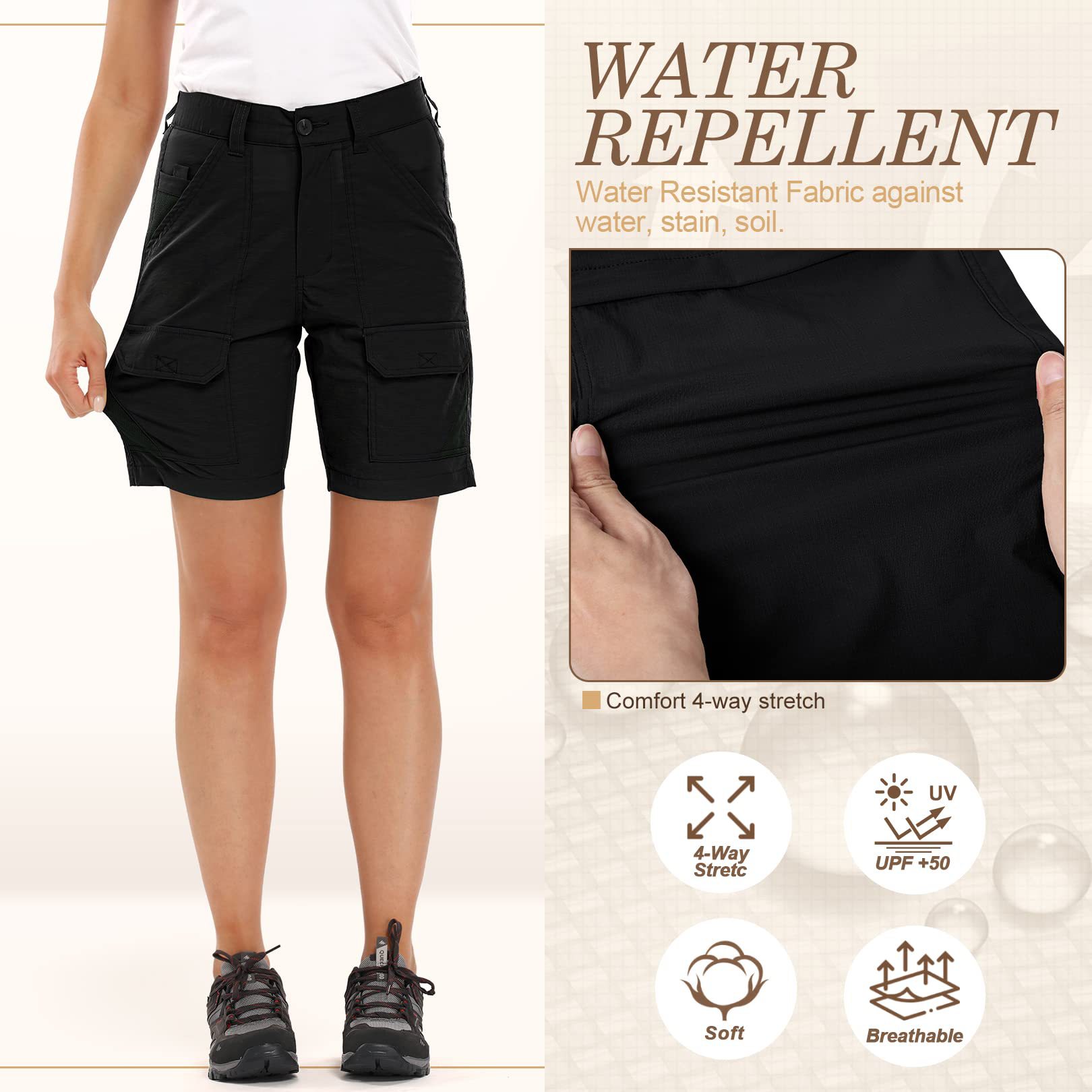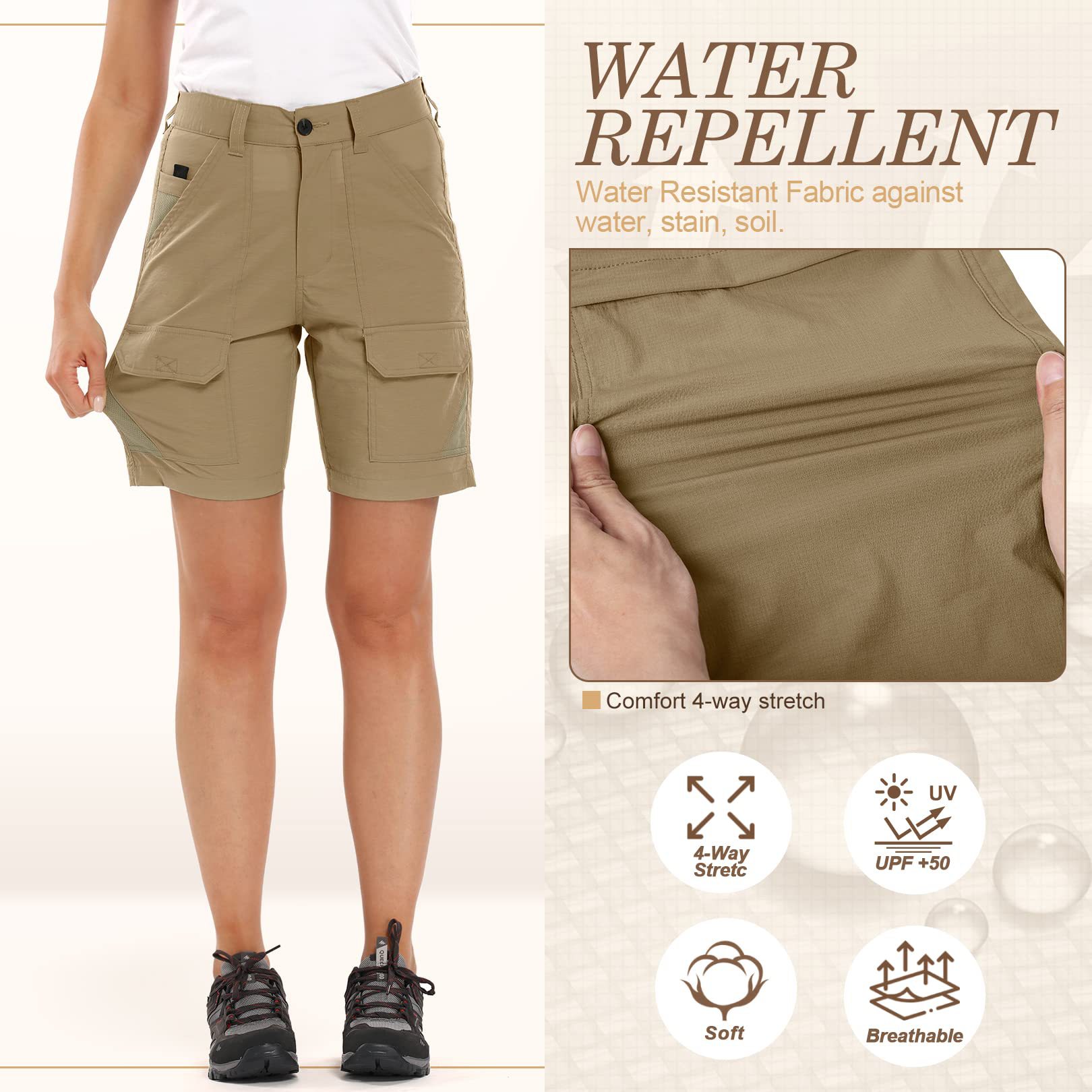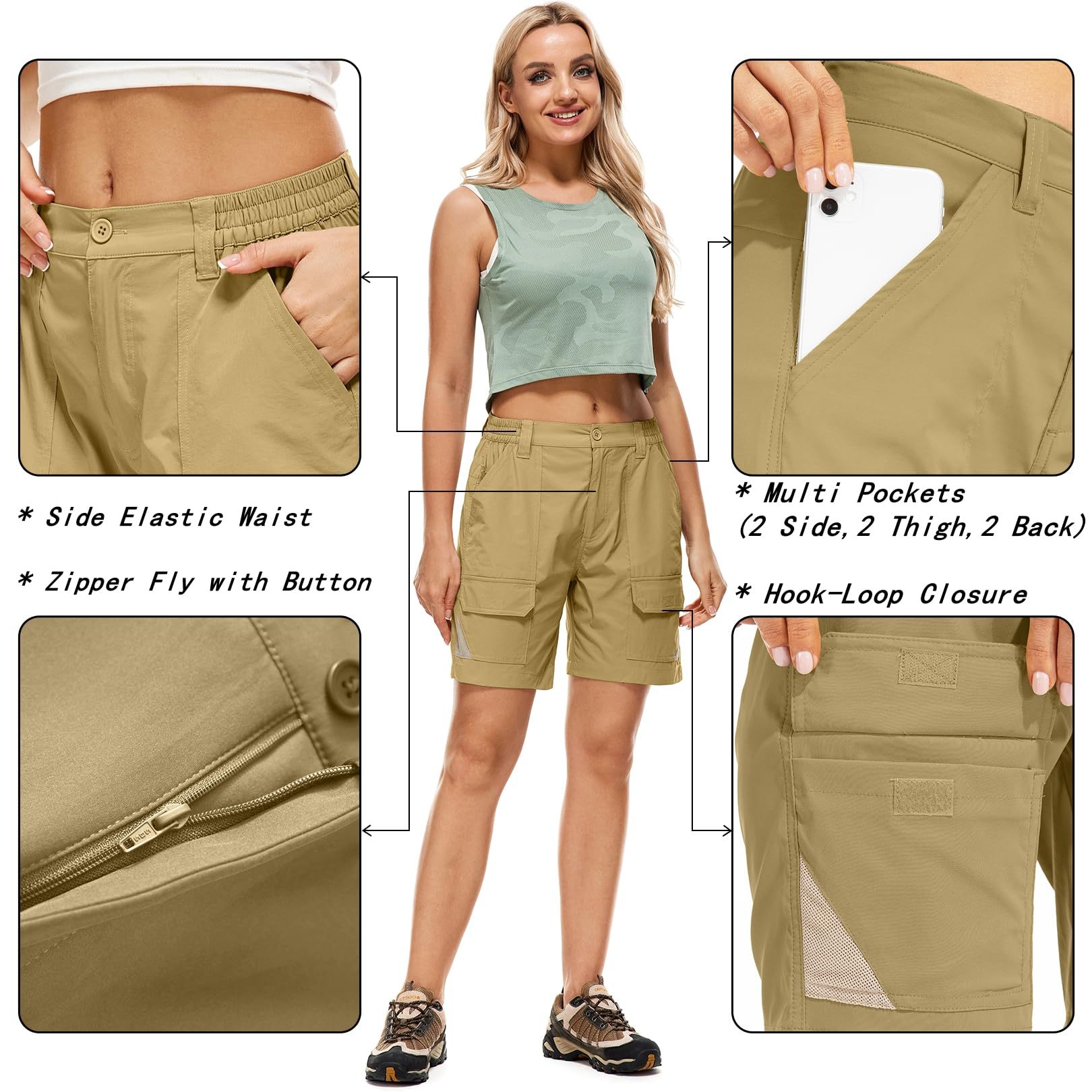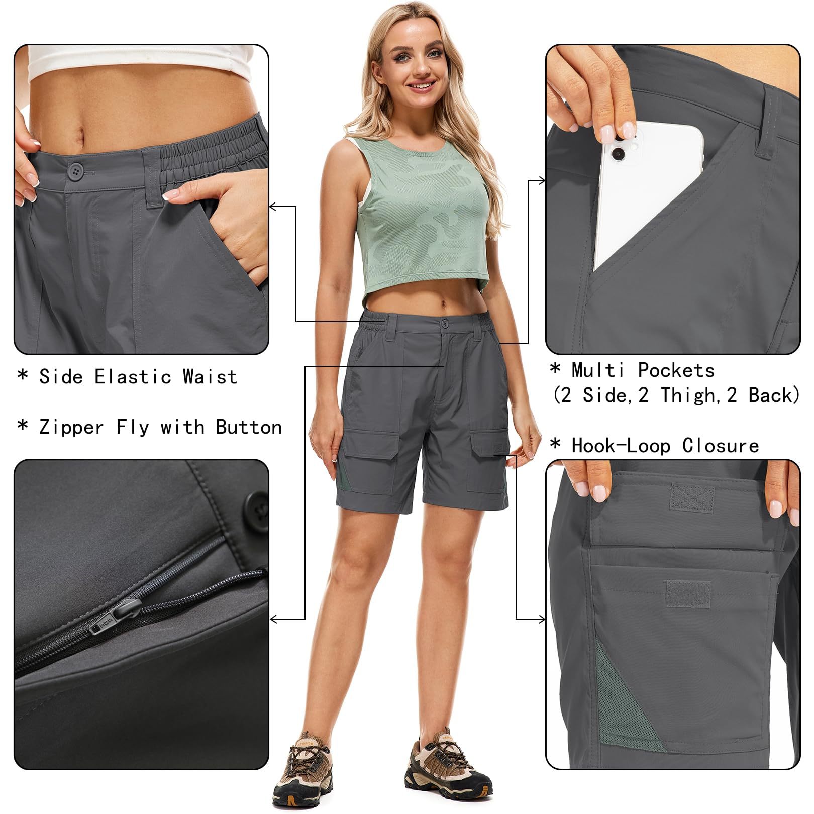 Amazon 2025 새로운 여성용 스트레치 작업복 야외 하이킹 방수 속건 반바지 하이 웨이스트 포켓 캐주얼 바지