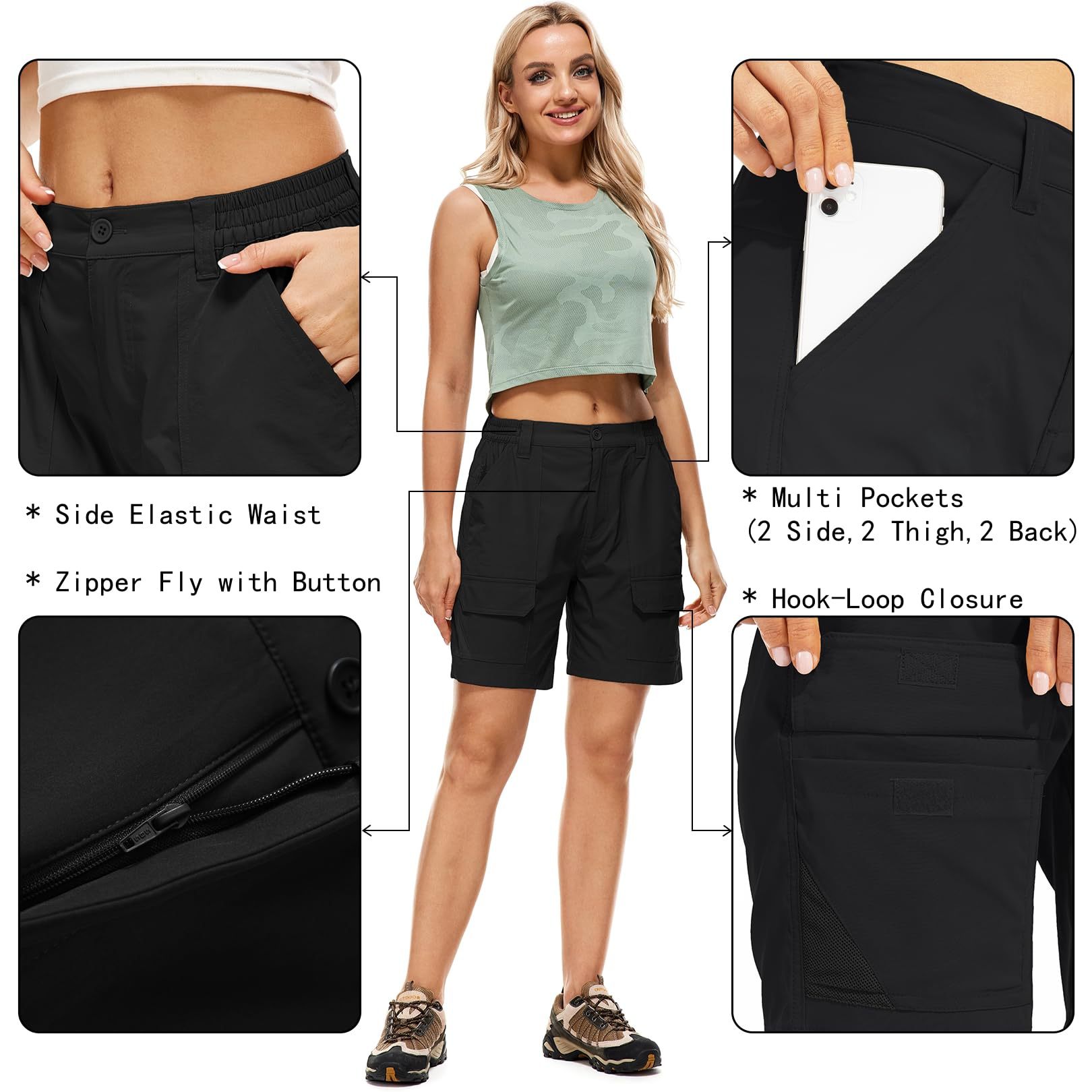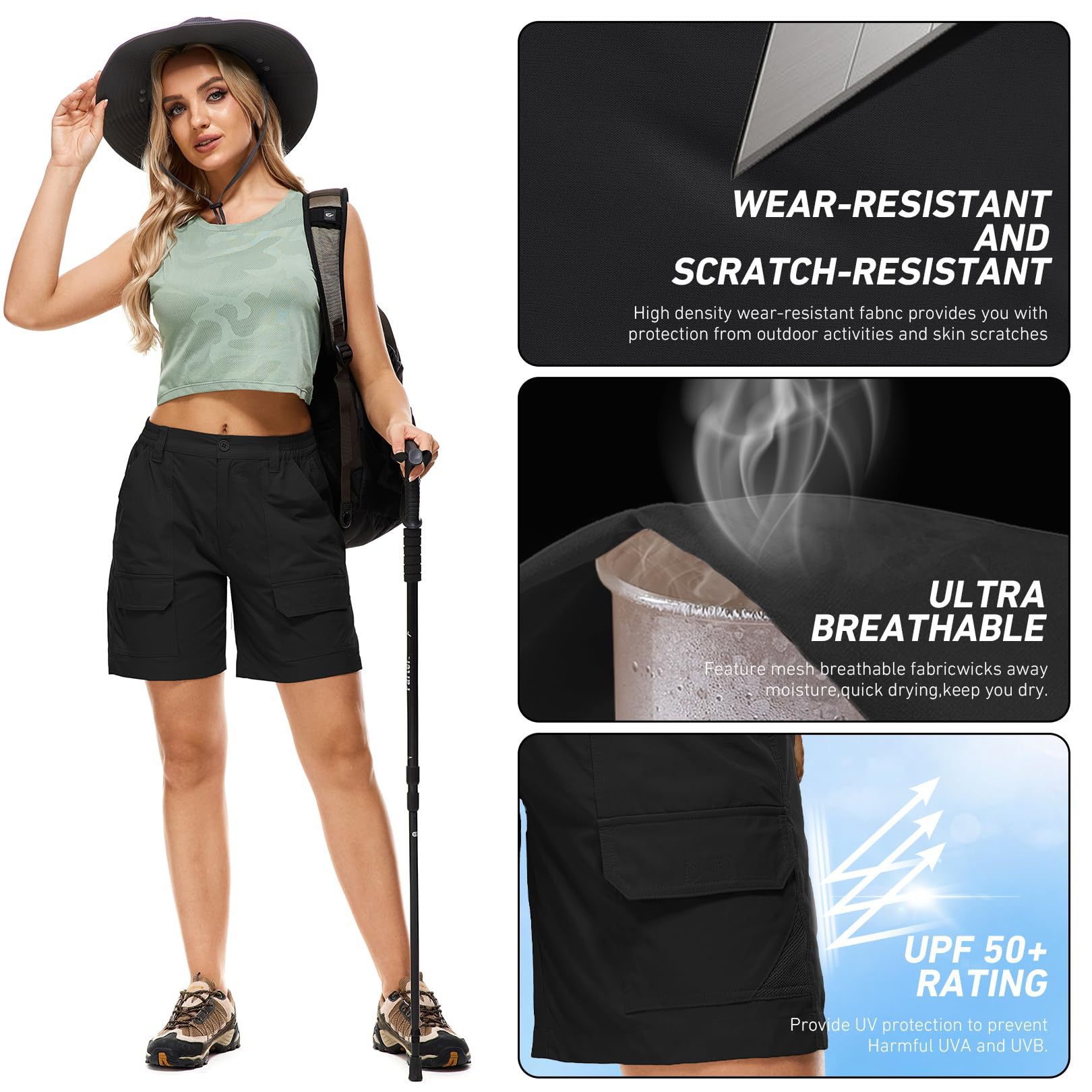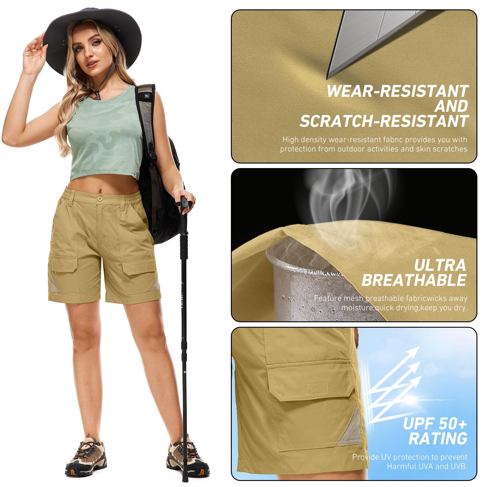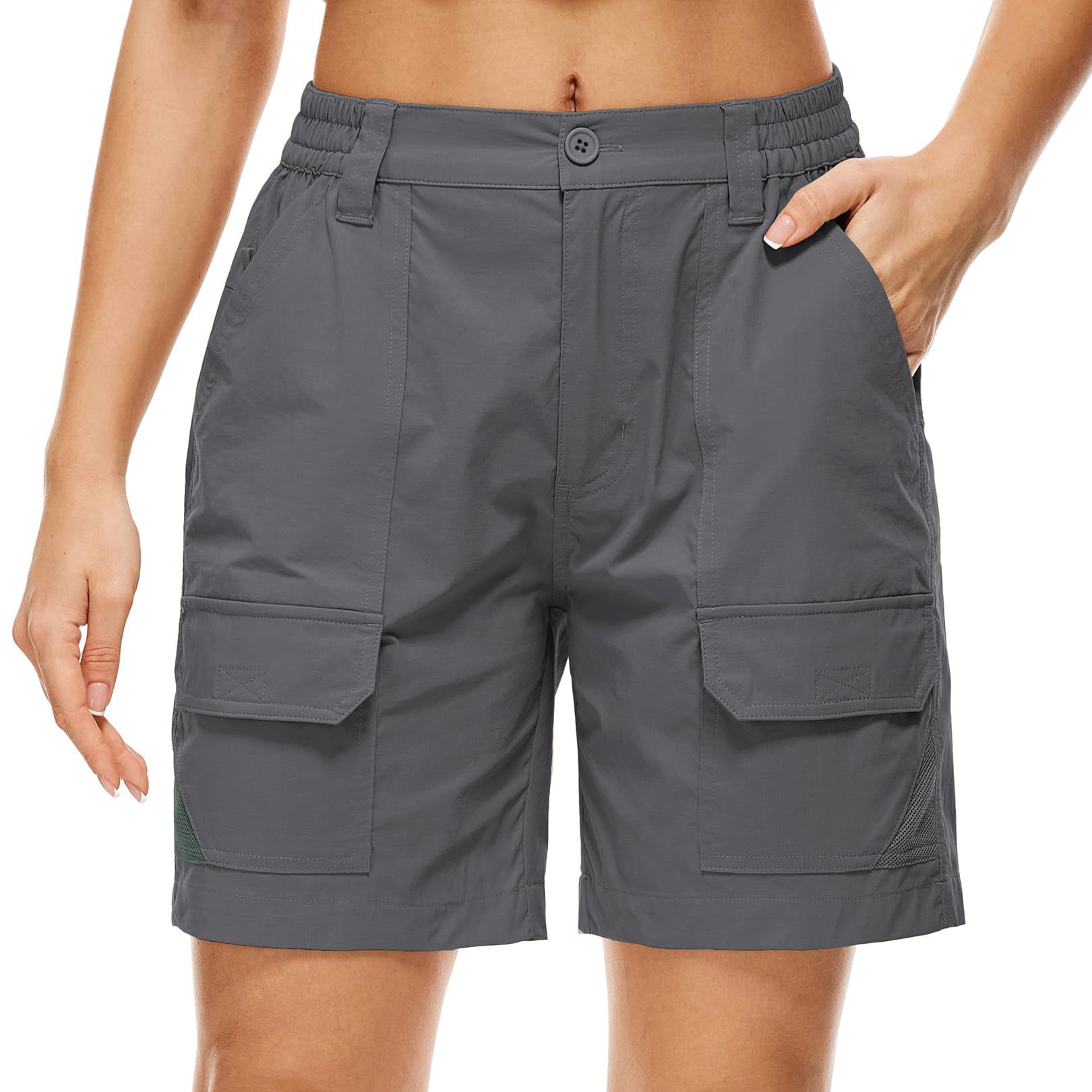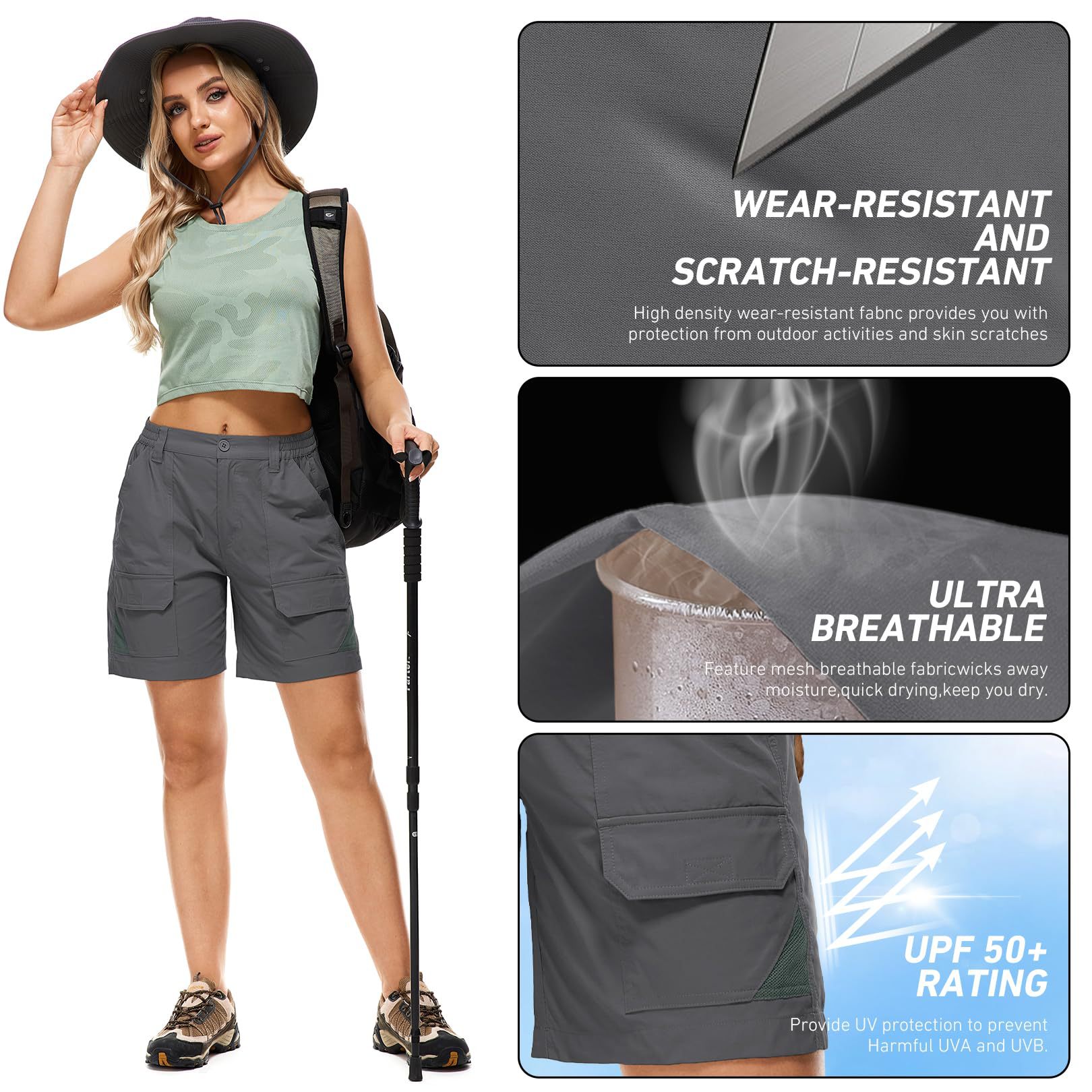 Amazon 2025 새로운 여성용 스트레치 작업복 야외 하이킹 방수 속건 반바지 하이 웨이스트 포켓 캐주얼 바지