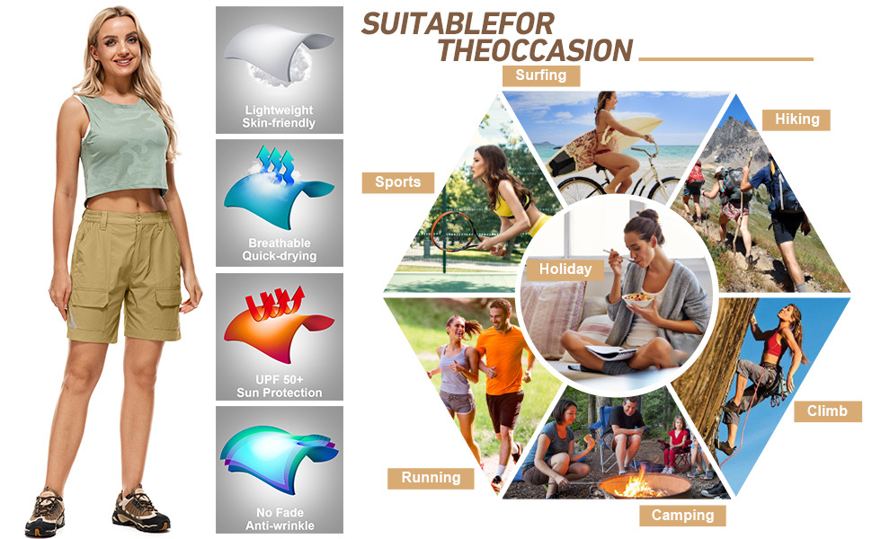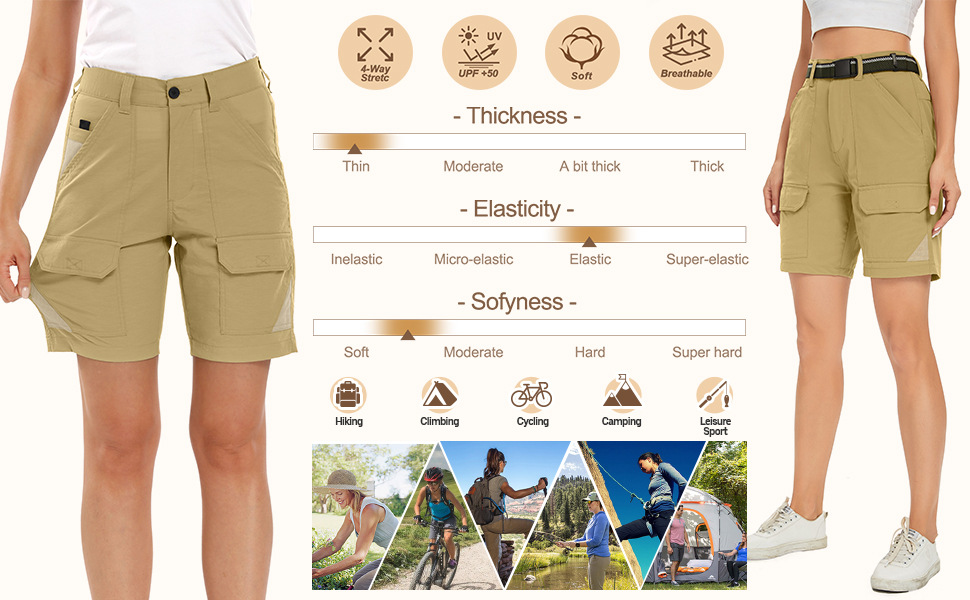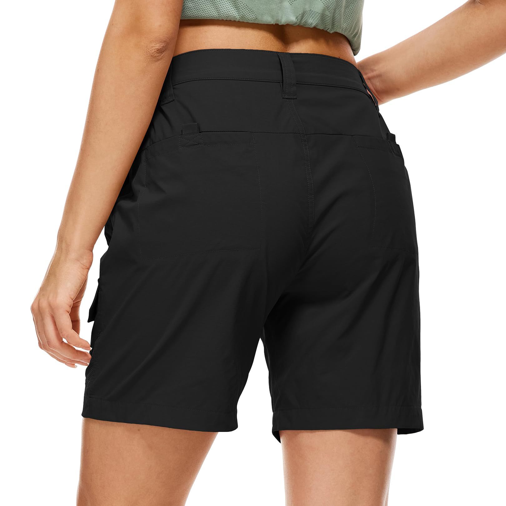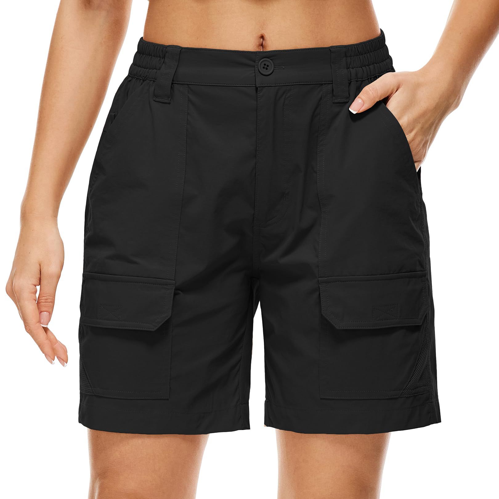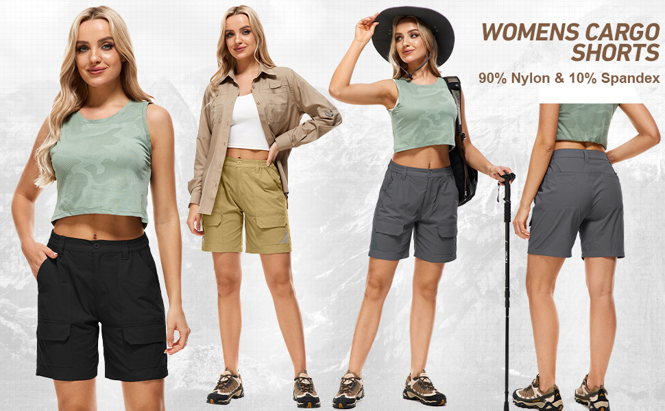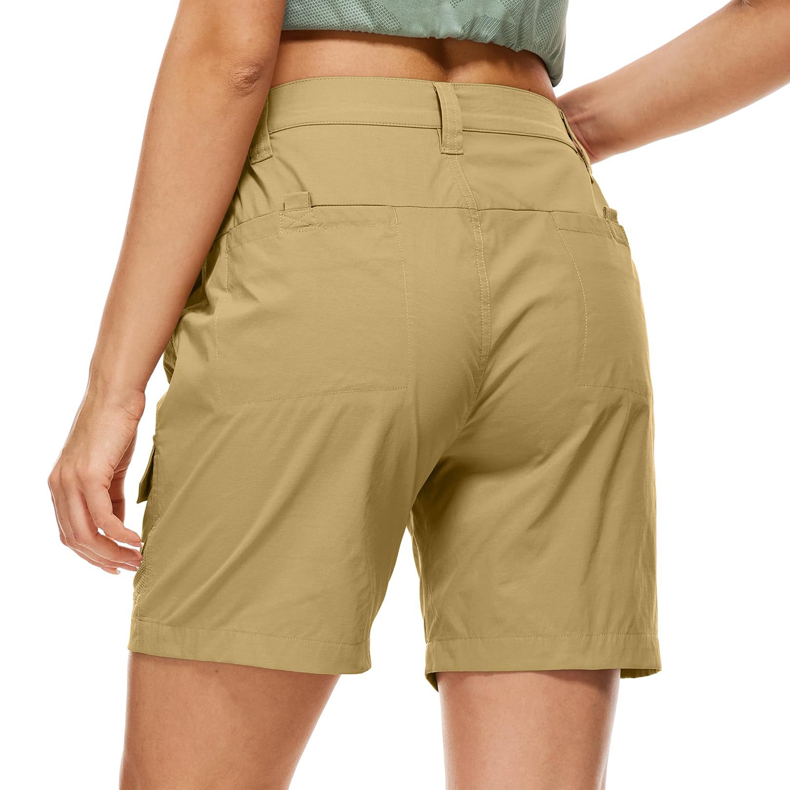 Amazon 2025 새로운 여성용 스트레치 작업복 야외 하이킹 방수 속건 반바지 하이 웨이스트 포켓 캐주얼 바지