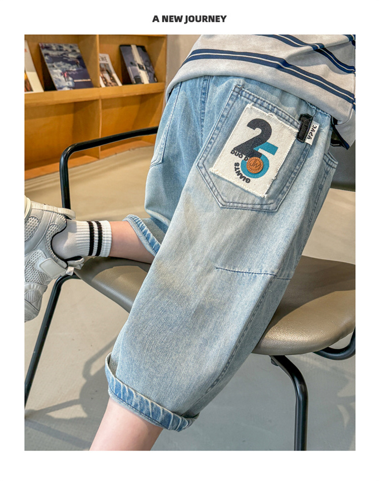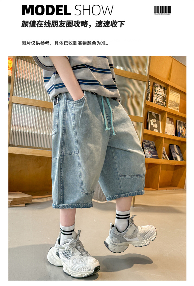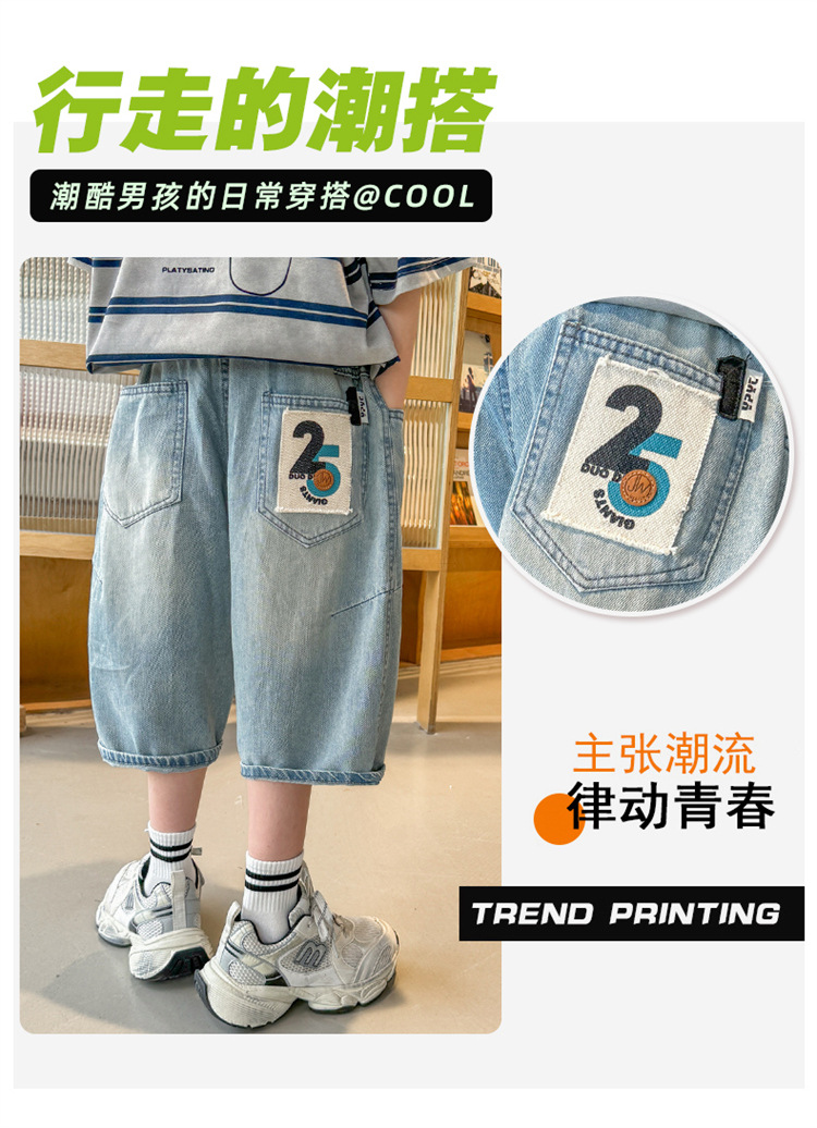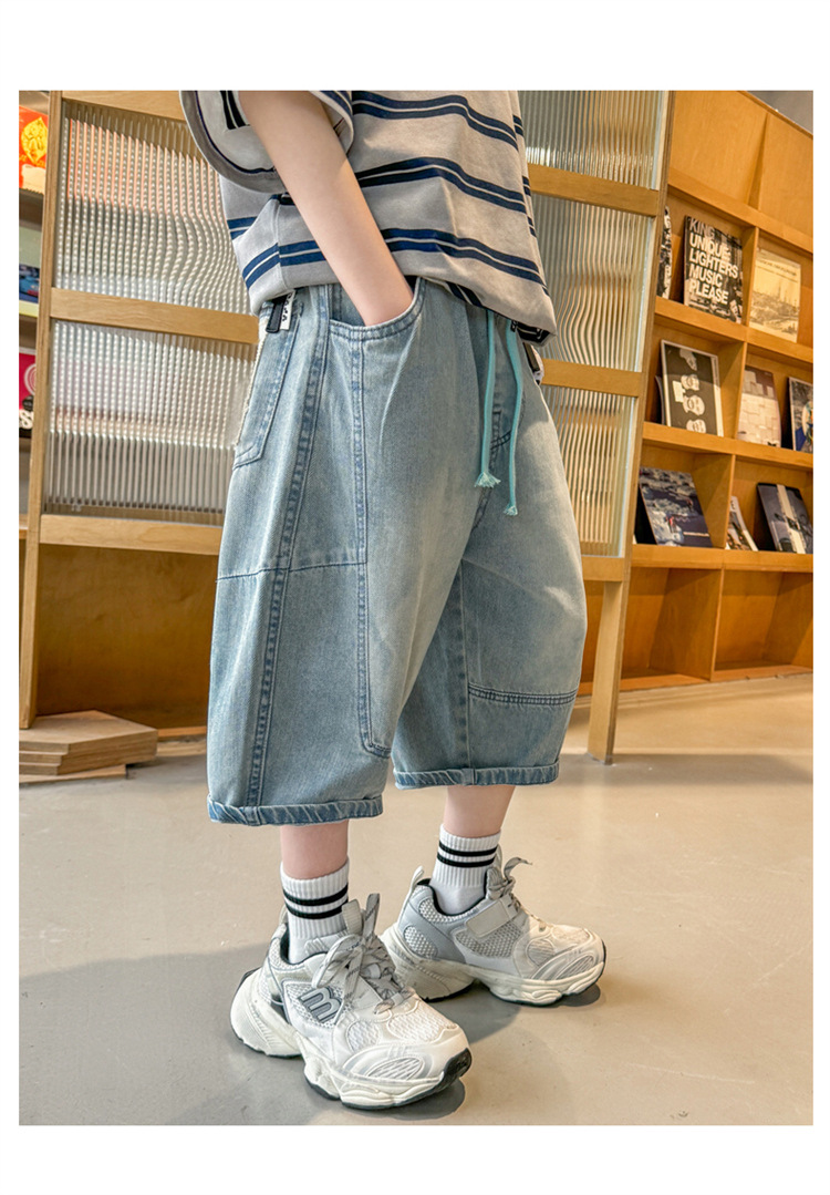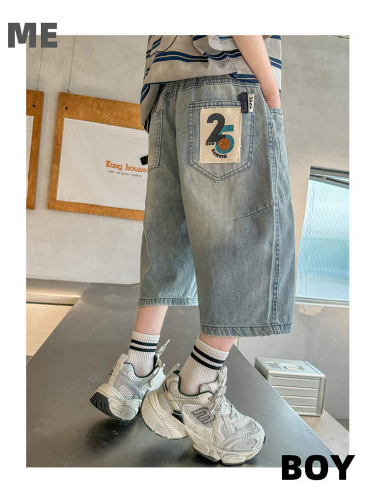 아동복 소년 여름 바지 반바지 2025 새로운 얇은 중대형 아동 청바지 여름 중간 바지 여름 유행스토어 가기