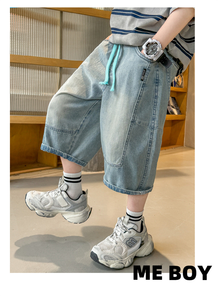 아동복 소년 여름 바지 반바지 2025 새로운 얇은 중대형 아동 청바지 여름 중간 바지 여름 유행