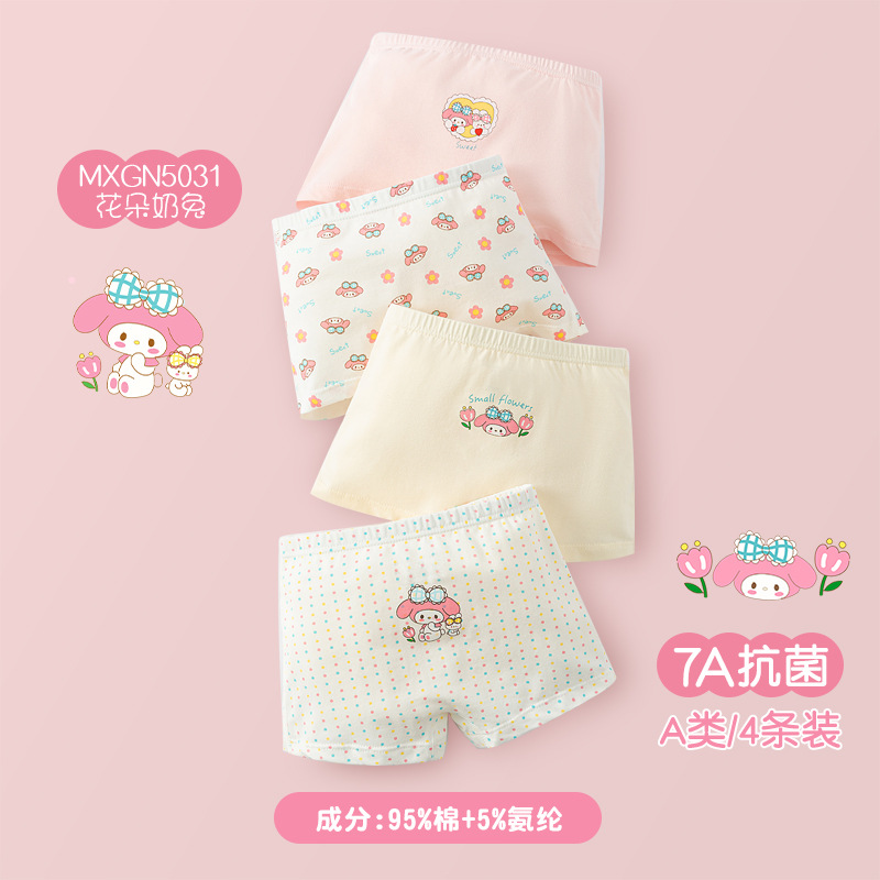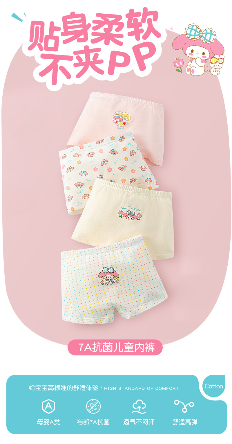 어린이 속옷 도매 2025 소녀 속옷 아기 귀여운 멜로디 복서 팬티 순수 코튼 7A 항균 복서 팬티스토어 가기