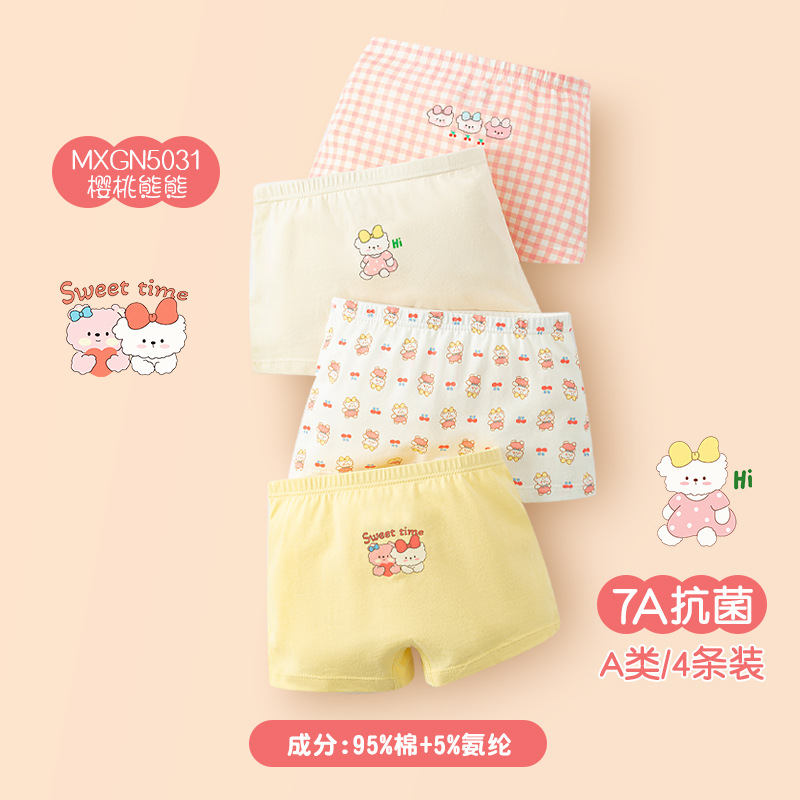 어린이 속옷 도매 2025 소녀 속옷 아기 귀여운 멜로디 복서 팬티 순수 코튼 7A 항균 복서 팬티