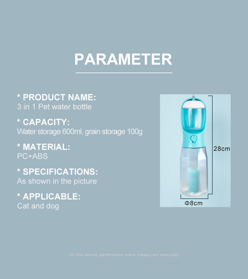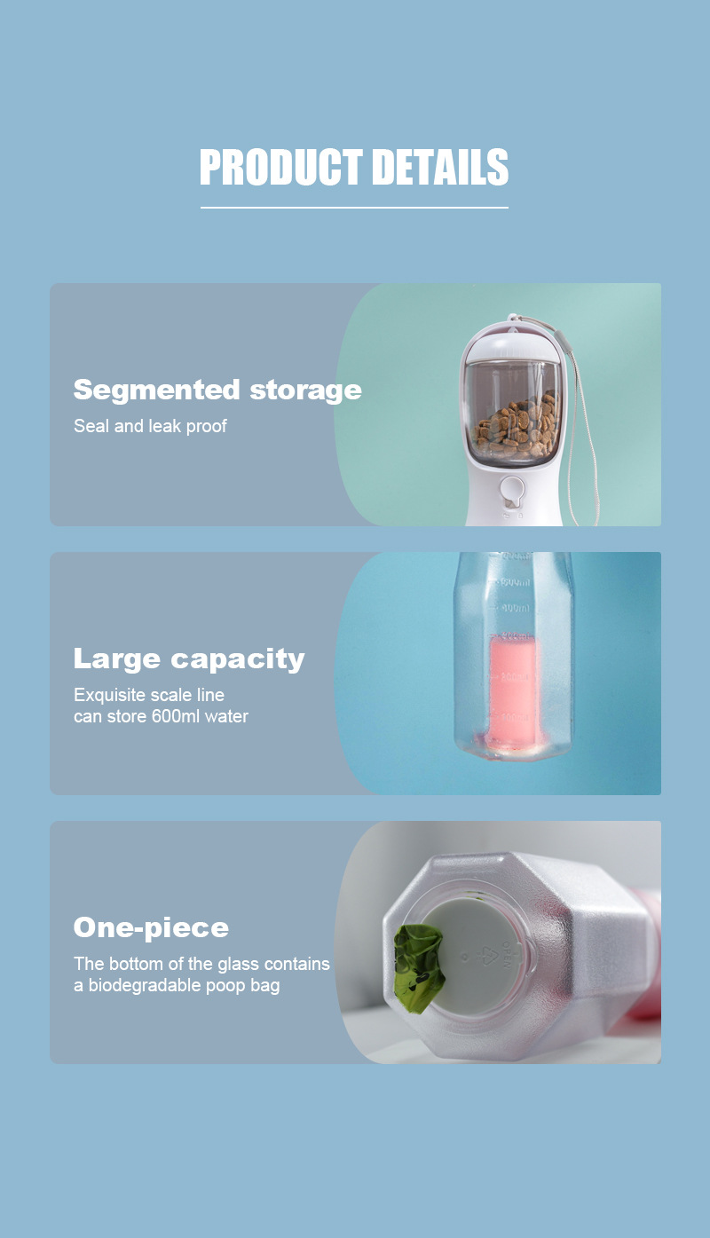 국경을 넘나드는 여행용 휴대용 고양이와 강아지 물통과 사료통, 야외용 3-in-1 물과 사료 분리형 애완동물 급수컵 (고양이용)