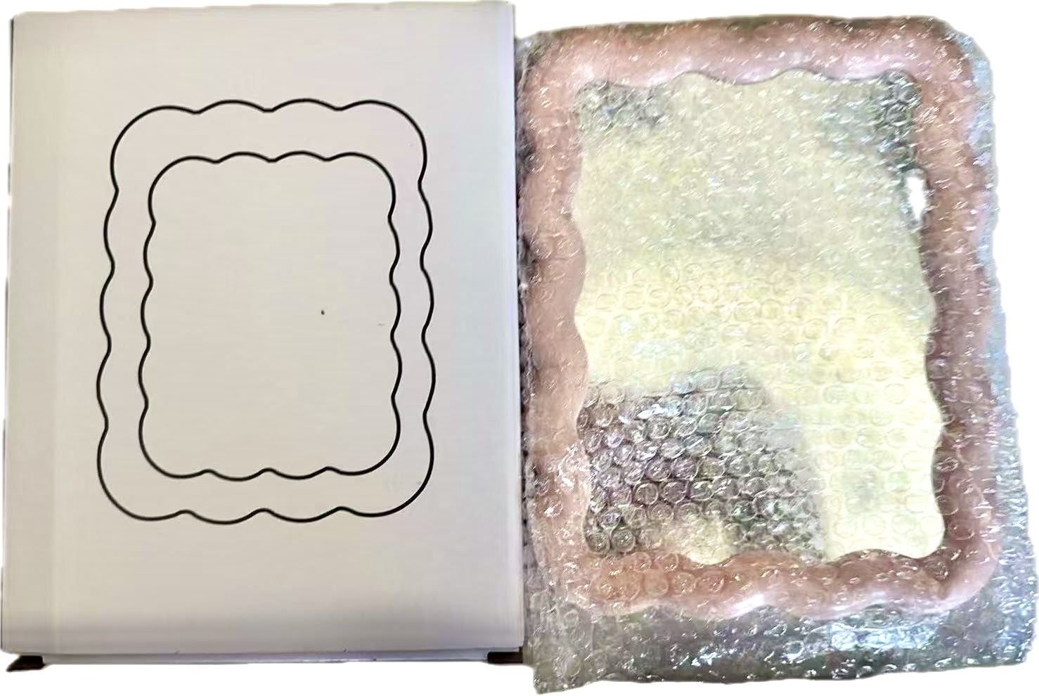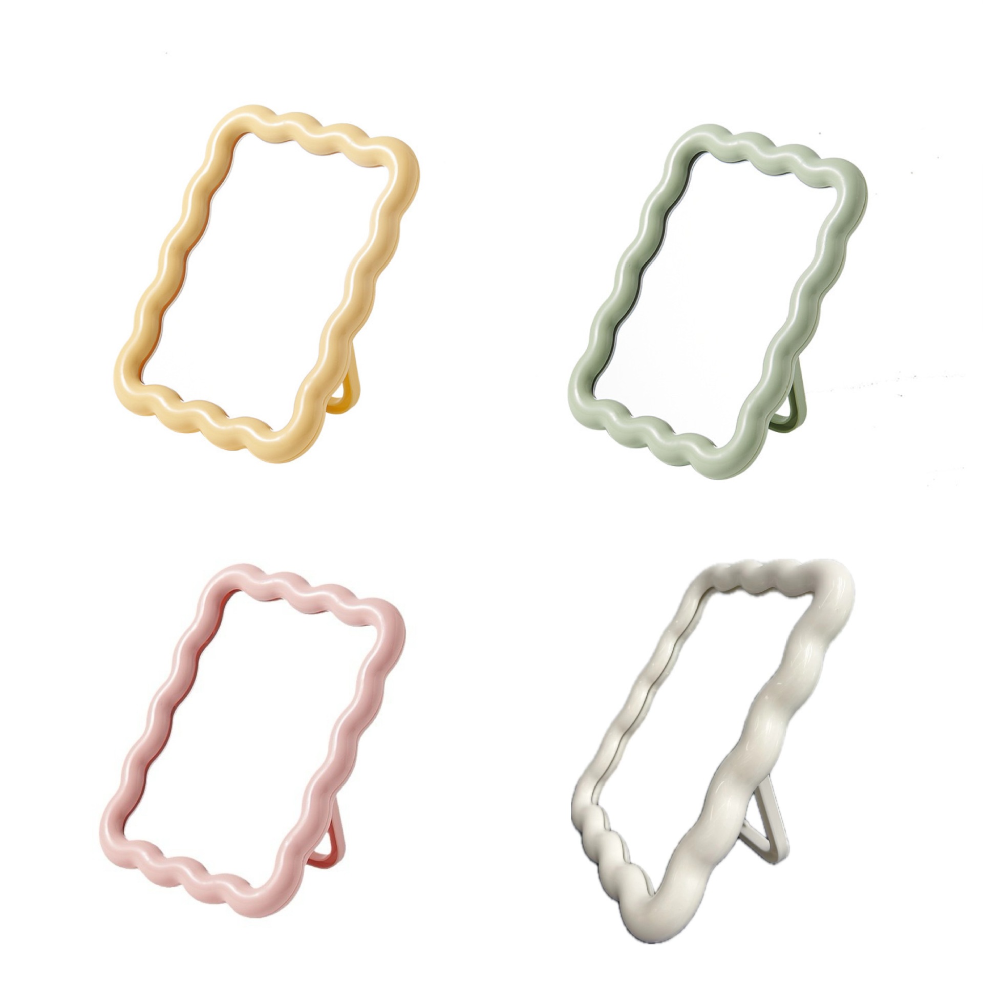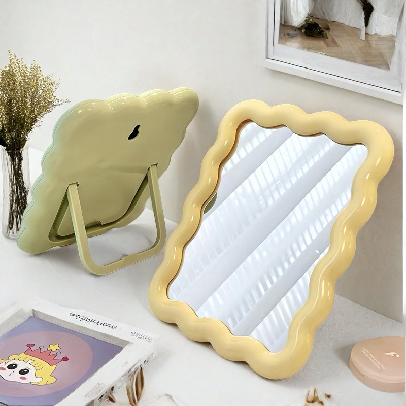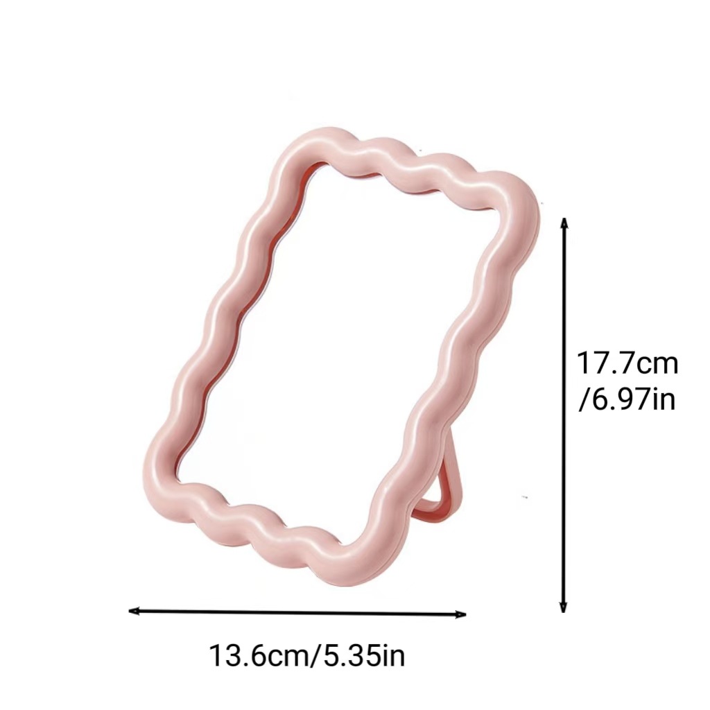 Ins 웨이브 미러 스퀘어 크림 스타일 화장 거울 휴대용 데스크탑 화장 거울 교수형 학생 기숙사 장식품