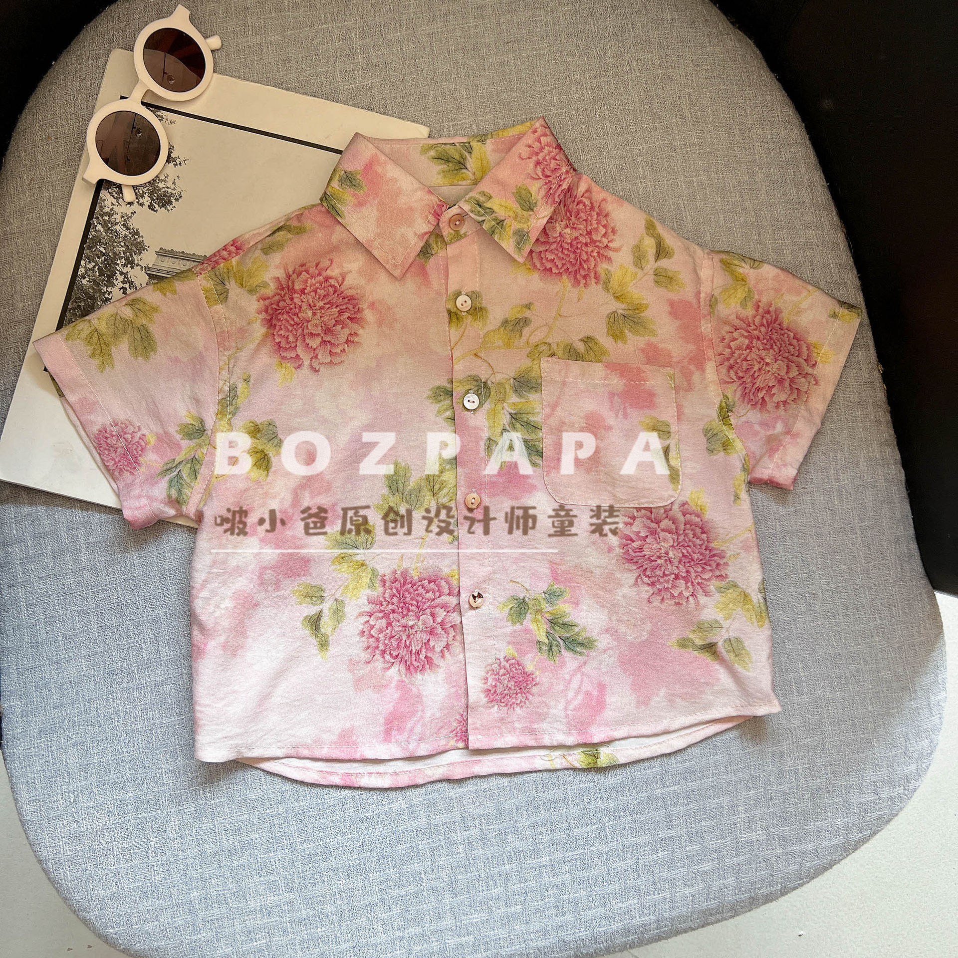 2025 여름 새 소년 한국 스타일 잘 생긴 반팔 셔츠 어린이 아기 캐주얼 패션 꽃 셔츠스토어 가기