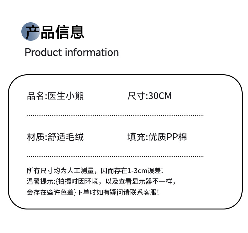 의사 간호사 곰 인형 인형 인형 간호사의 날 활동 작은 선물 졸업 선물 인형 로고