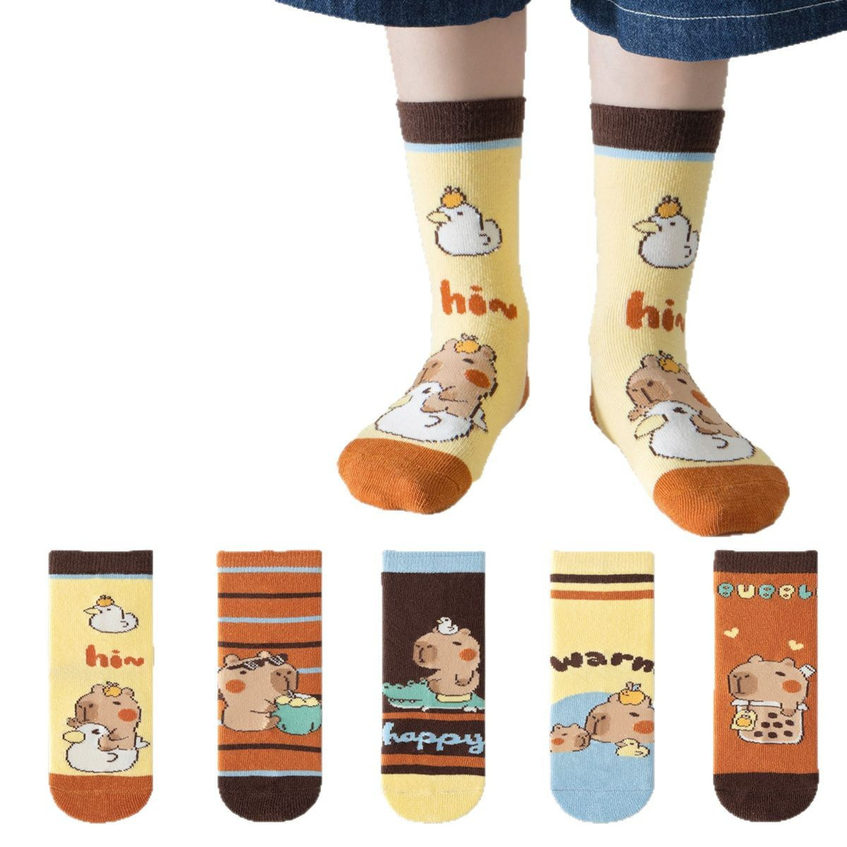 작은 돼지 고기 배너 성인 양말 만화 카피 바라 중간 양말 사계절 학생 아기 땀 면화 양말스토어 가기