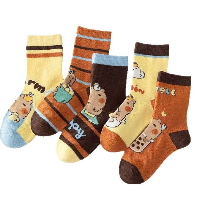 작은 돼지 고기 배너 성인 양말 만화 카피 바라 중간 양말 사계절 학생 아기 땀 면화 양말